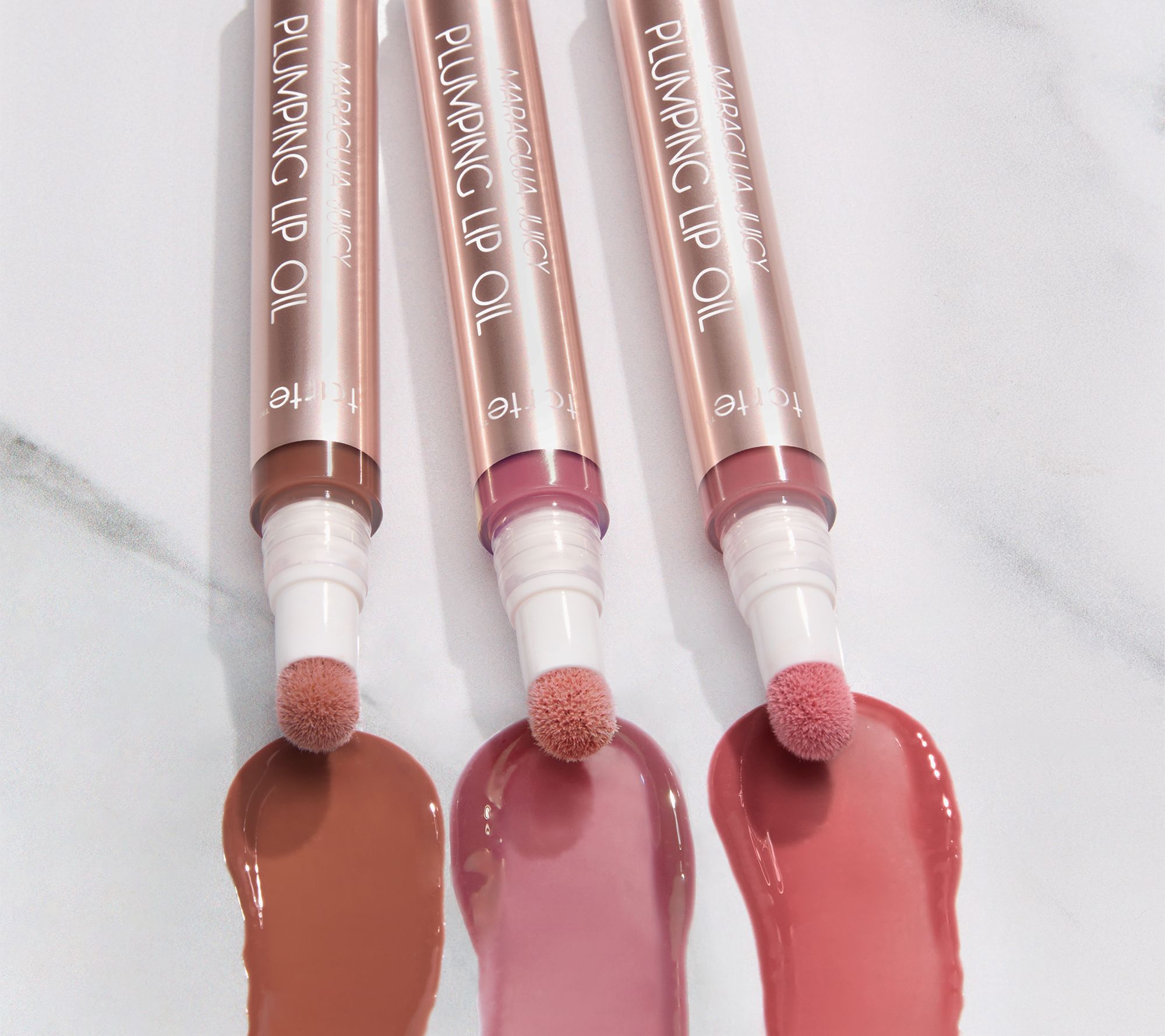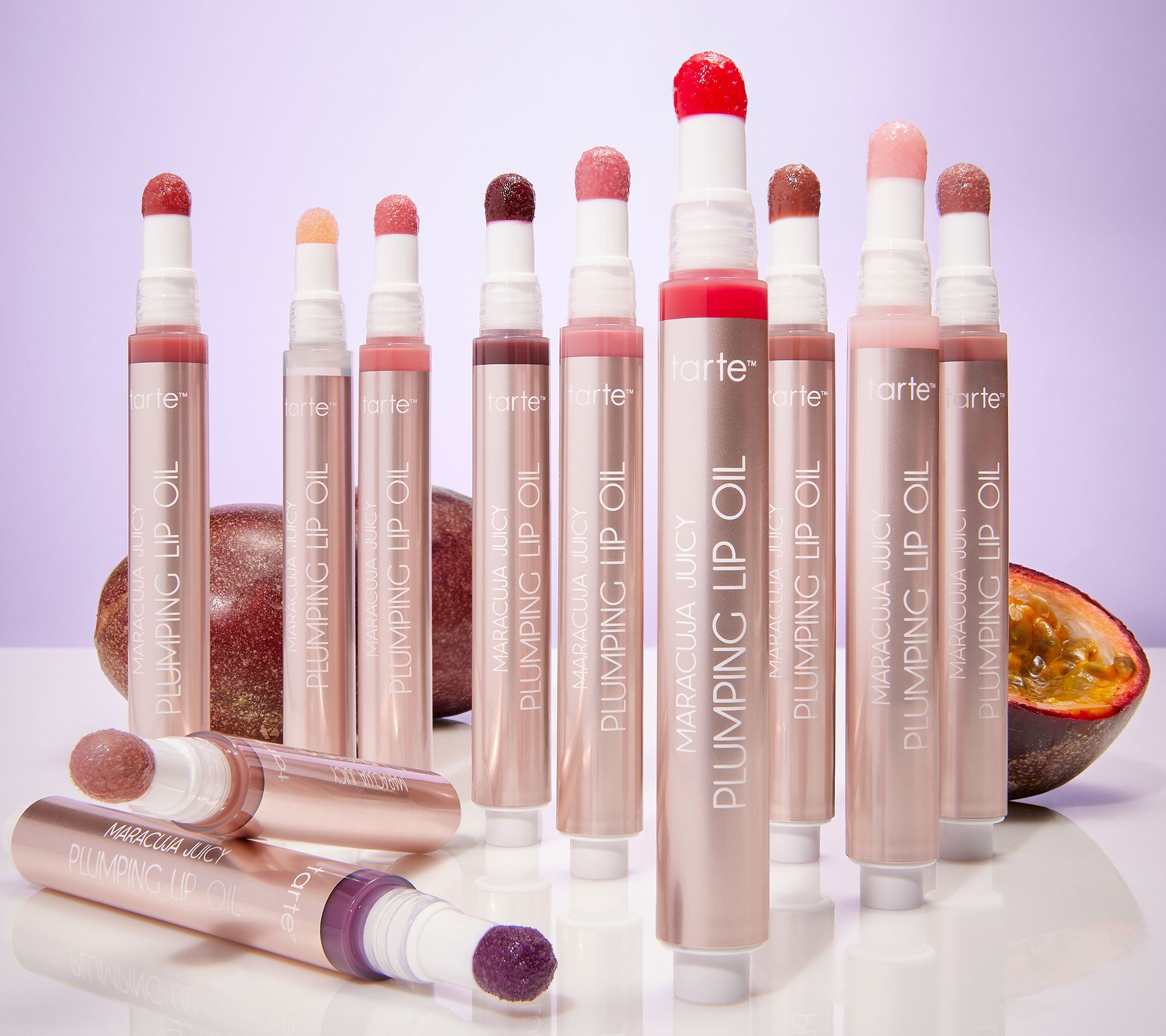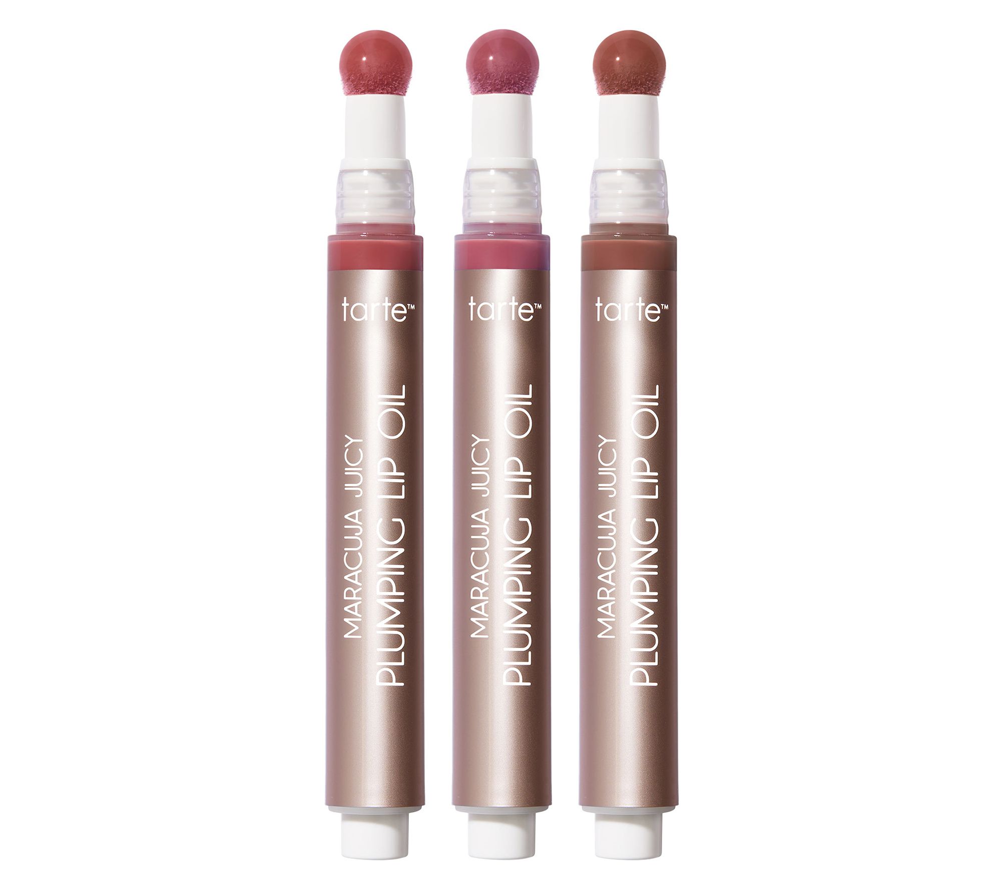 This Maracuja Juicy Plumping Lip Oil set from tarte gives all the moisurizing perks of an oil with the high-shine look of a gloss! The gel-to-oil formula glides on with a cushion tip for seamless application and juicer-looking lips.