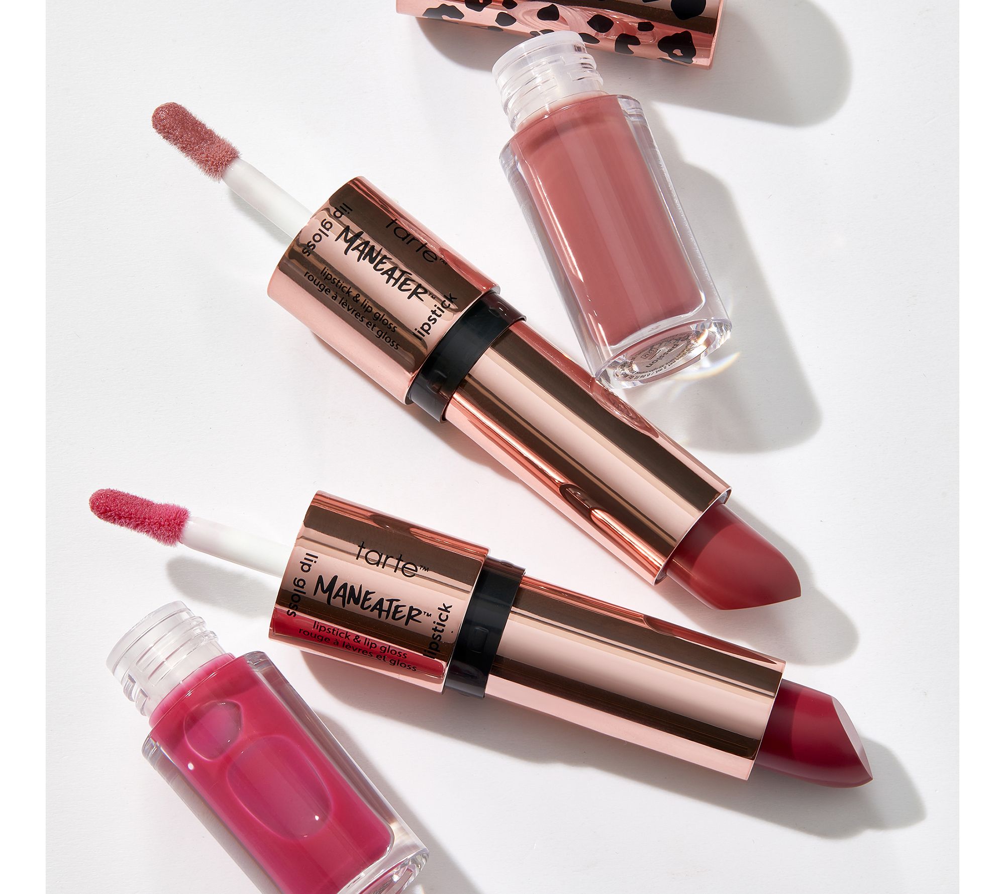 You've updated your closet for the season -- now it's time to refresh your lips! This maneater lipstick and plumping lip gloss quad is the perfect new edition to revamp your lip wardrobe. Not only are you getting four products in the set, but they are each double-ended: a two-in-one! This combination of mauves and berries is perfect for a day or night look and has the potential for mixing and matching so you have as many options for your lips as you do clothes in your closet. Infused with moisturizing ingredients like maracuja oil and plumping ingredients like hyaluronic acid, they make your lips ready to be the hottest accessory to any outfit!
