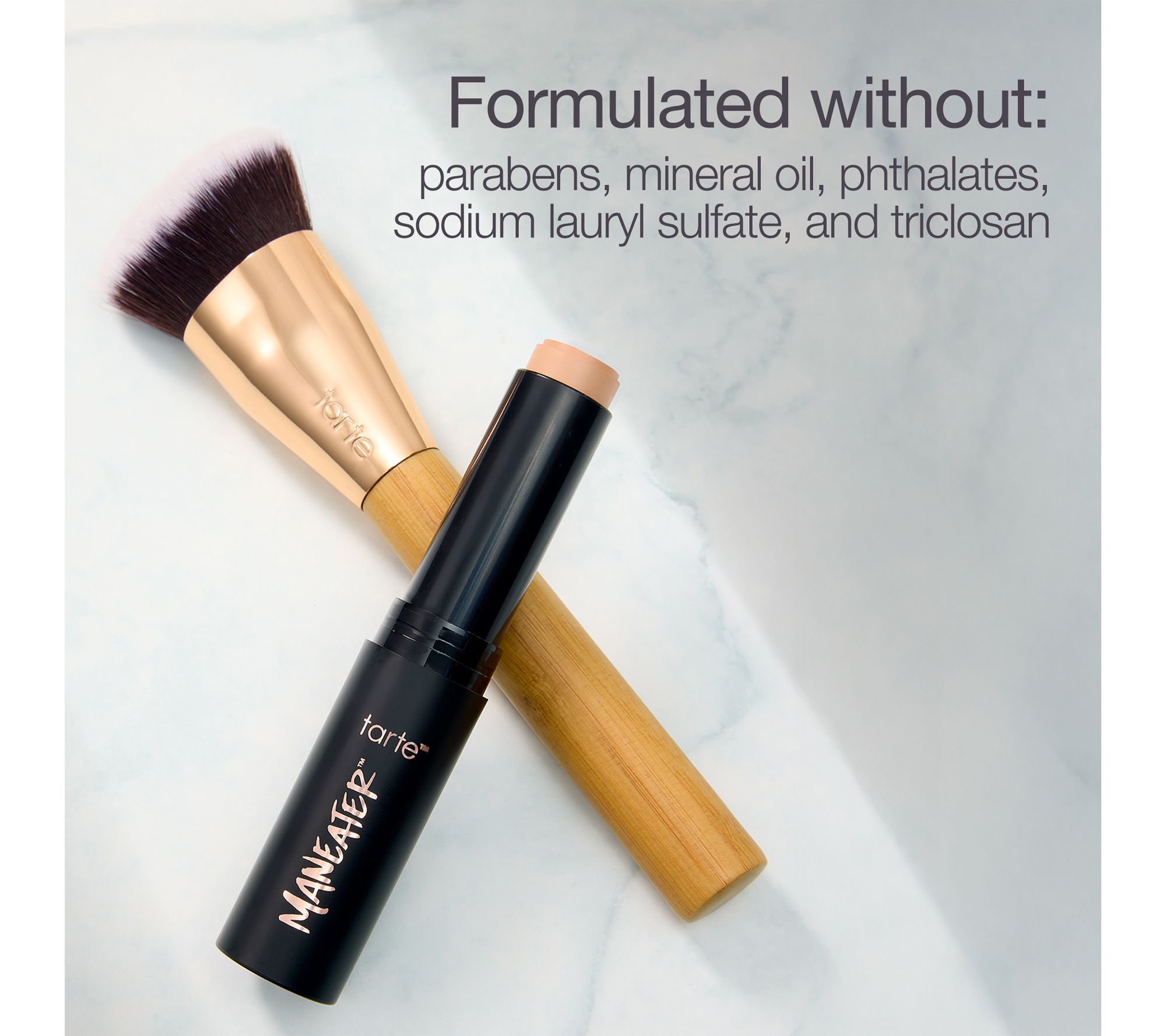 Meet the ultimate duo for an effortlessly flawless looking complexion: tarte's maneaterTM poreless foundation stick and maneater foundation brush. The creamy foundation glides on easily and wears for up to 12 hours with the appearance of a natural-looking matte finish. It's formulated with vitamin E, a form of vitamin C (ascorbyl palmitate), and diamond powder. Paired with the brush for seamless blending, it's the perfect combo to help you ace your base.