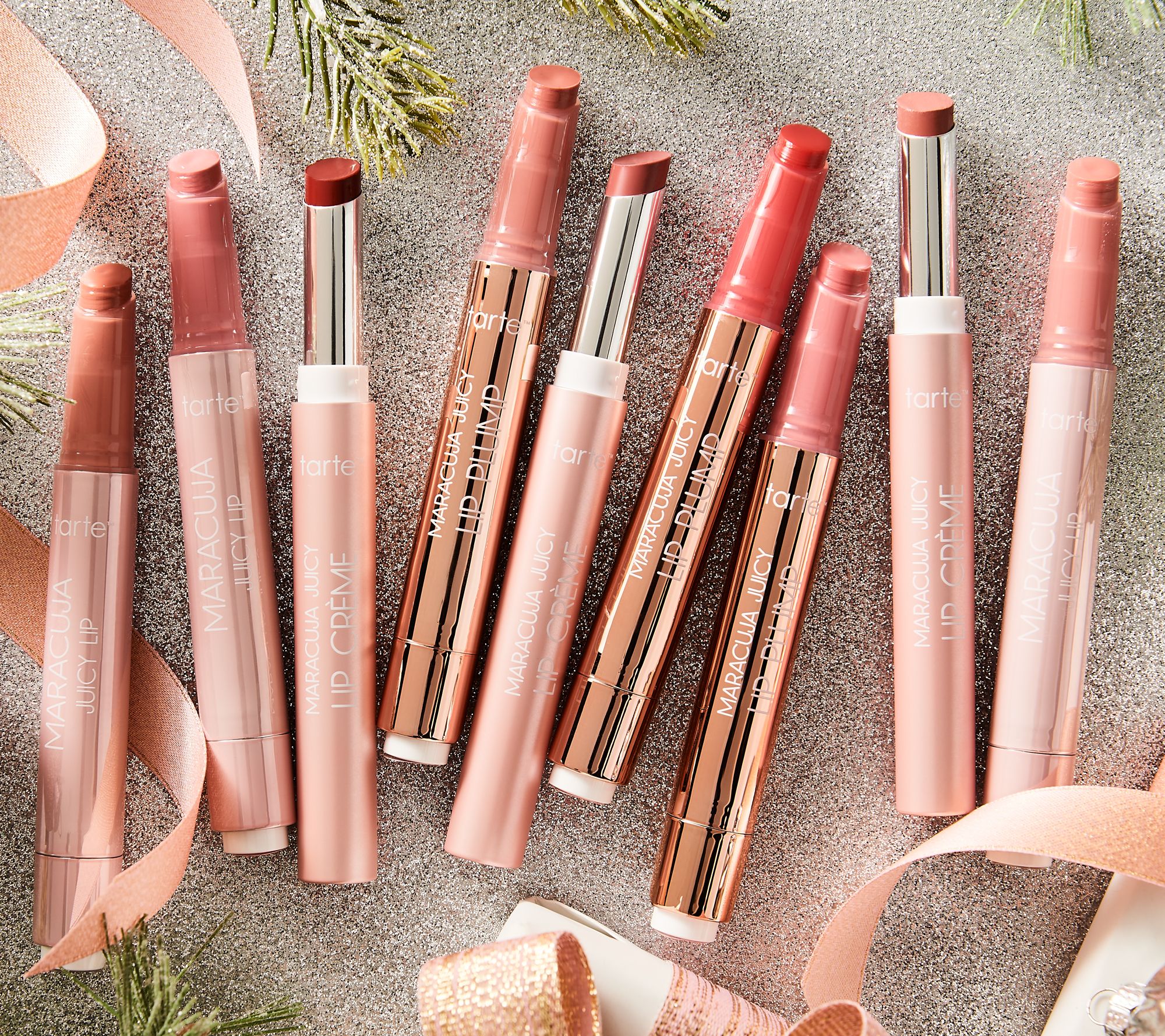 Get mistletoe-ready with this holiday hack: a nine-piece tarte Maracuja Juicy Lip library plus three bags for easy gifting!