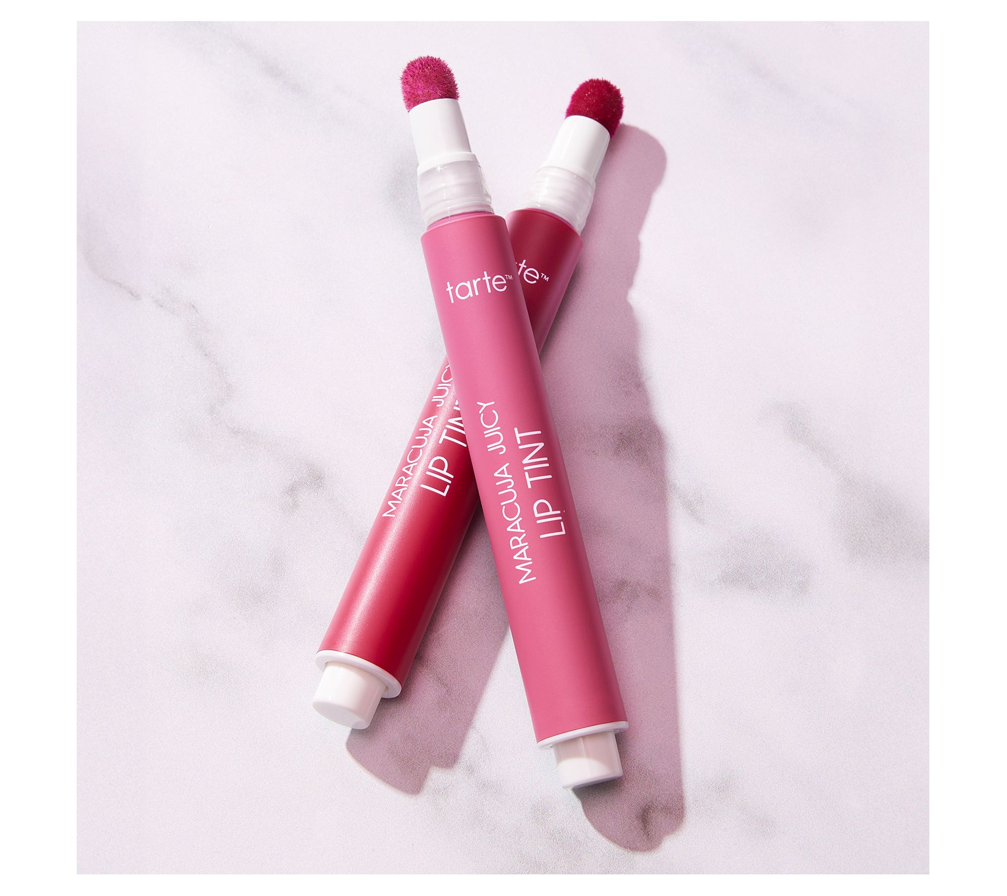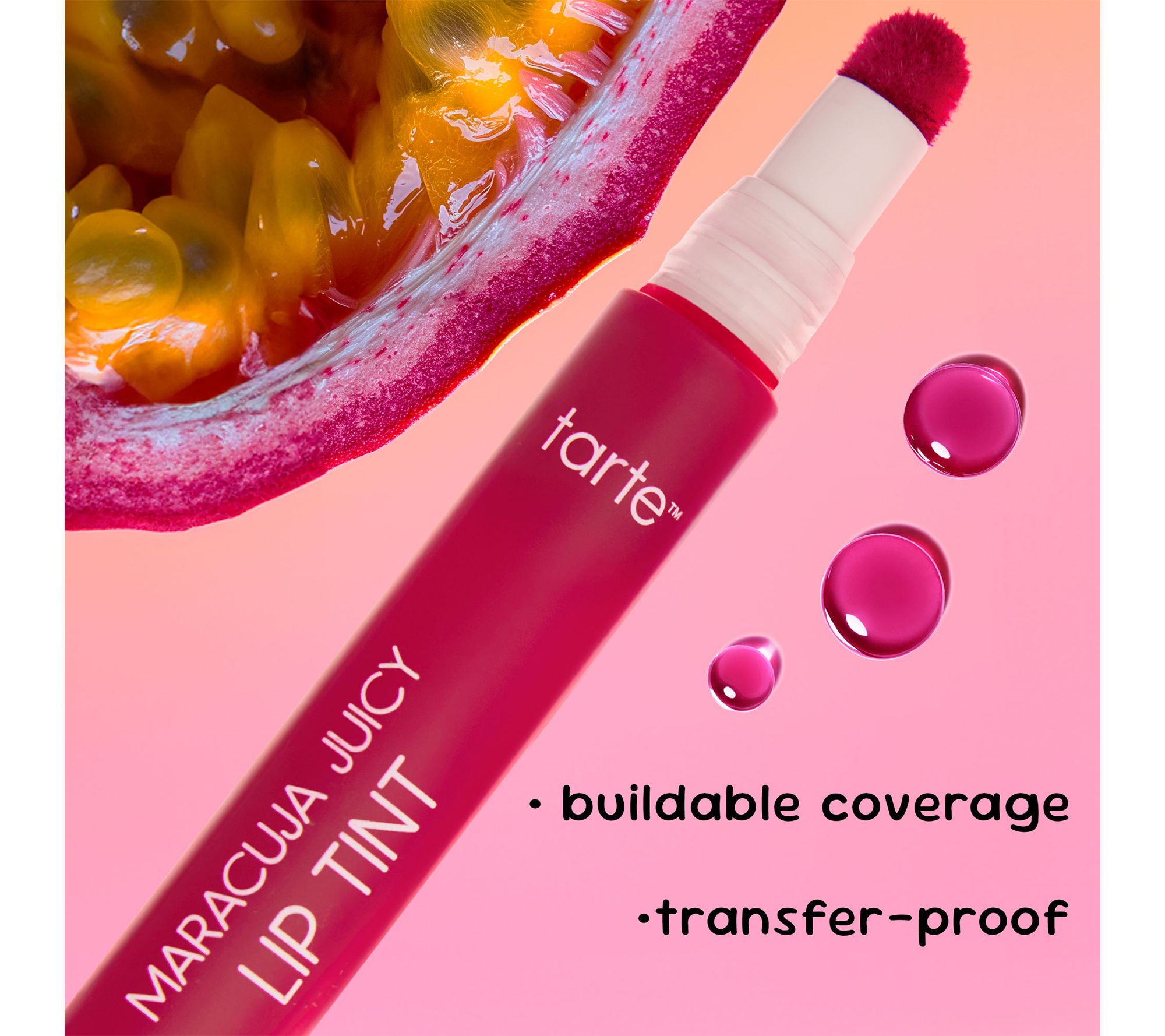 Meet your new favorite lip tint that doesn't transfer onto your morning coffee mug. These maracuja juicy lip tints pack a powerful punch by giving you transfer-proof color that stays juicy. Just dab, blend, and you're done. A foolproof pompom tip allows for mess-free, mistake-proof application. This formula was made to be lightweight and move with your lips throughout the day! Plus, these tints are packed with maracuja, grapeseed oil, goji berry, acai, acerola, pomegranate, passion flower, watermelon, strawberry, lemon, blueberry, peach, cranberry, rosemary, sage, chamomile flower, marigold, freesia, British yellowhead, evening primrose, vitamin E, and hyaluronic acid for plump, hydrated lips.