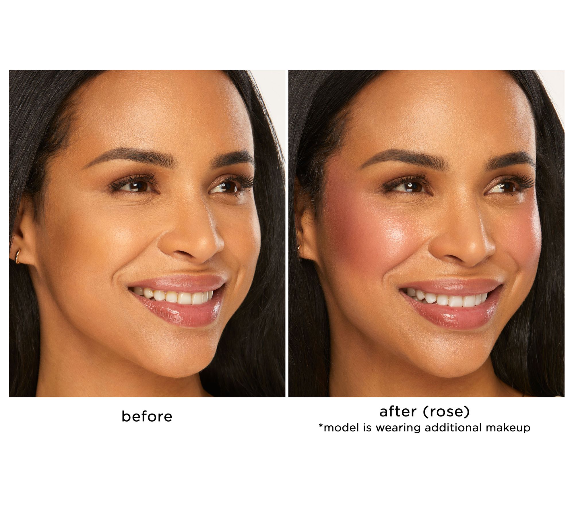 How do I use it: Using your fave blush brush, just smile, check, and blend! Smile to find the apples of your cheeks, sweep the blush on in a check motion, and blend into skin for the perfect glow.