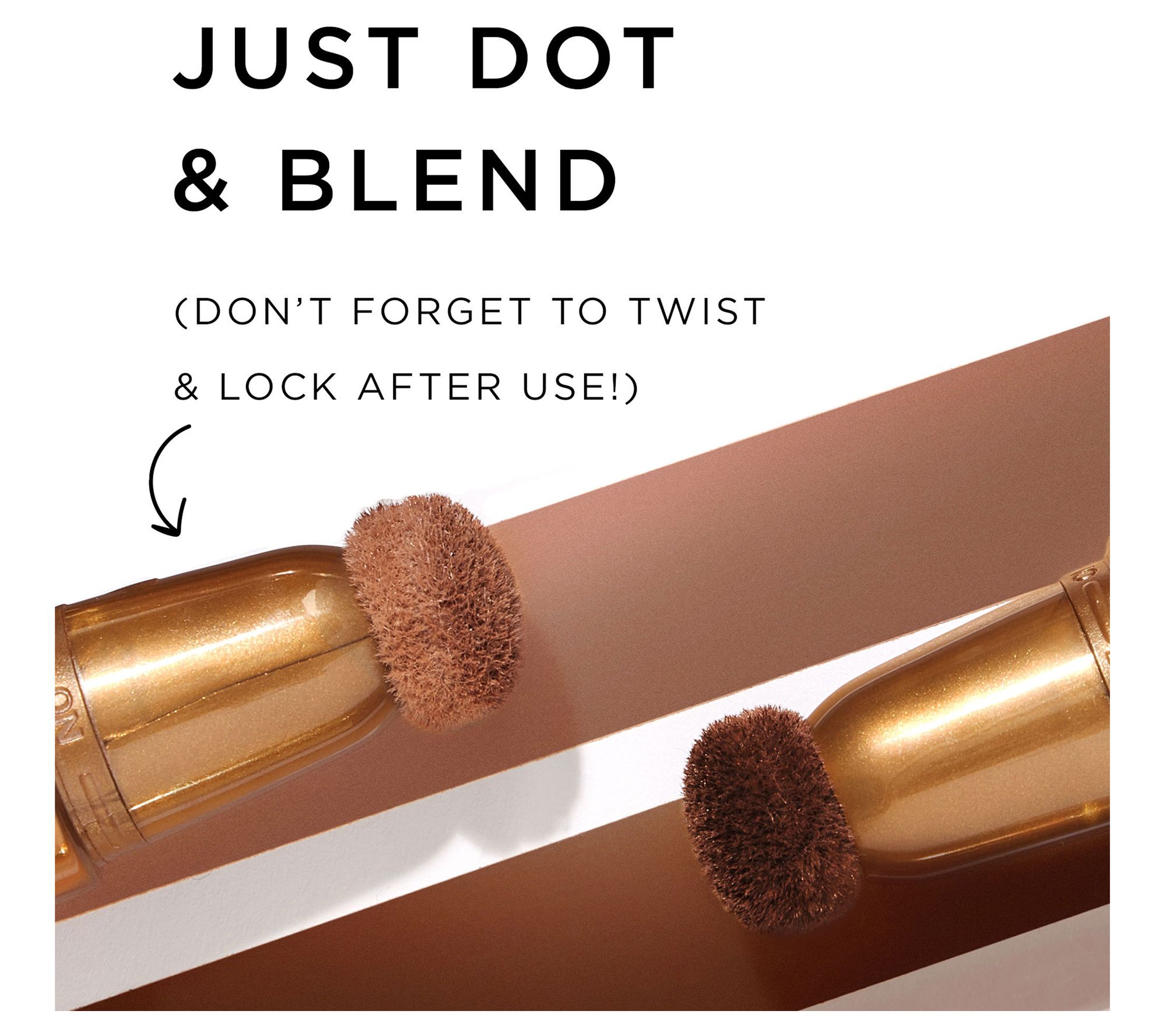 How do I use it: Twist the sculpt tape contour on and place three dots along the areas you want to contour like hollows of cheeks, sides of forehead, jawline, and nose. Blend upward in circular motions with the brush. Apply 2 to 3 dots of the glow tape highlighter along the high points of the cheeks or any spots that catch the light: temples, down bridge of nose, under brows, inner corners of eyes, and above the cupid's bow and blend outward. Don’t forget to twist and lock after each use!