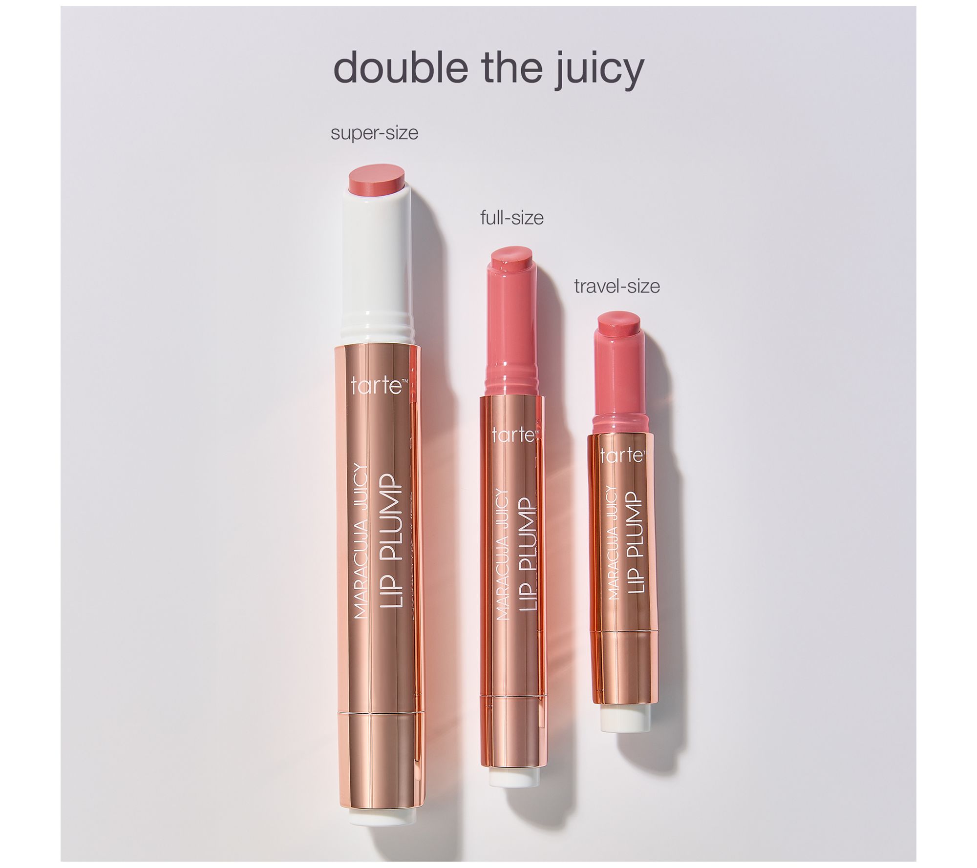 Celebrate two decades of tarte's lip legacy with this iconic trio in a jumbo size. The kit features the universally flattering Maracuja Juicy Lip Balm in Clear and Maracuja Juicy Lip Plump in two endlessly wearable shades: Sheer Primrose and Sheer White Peach.