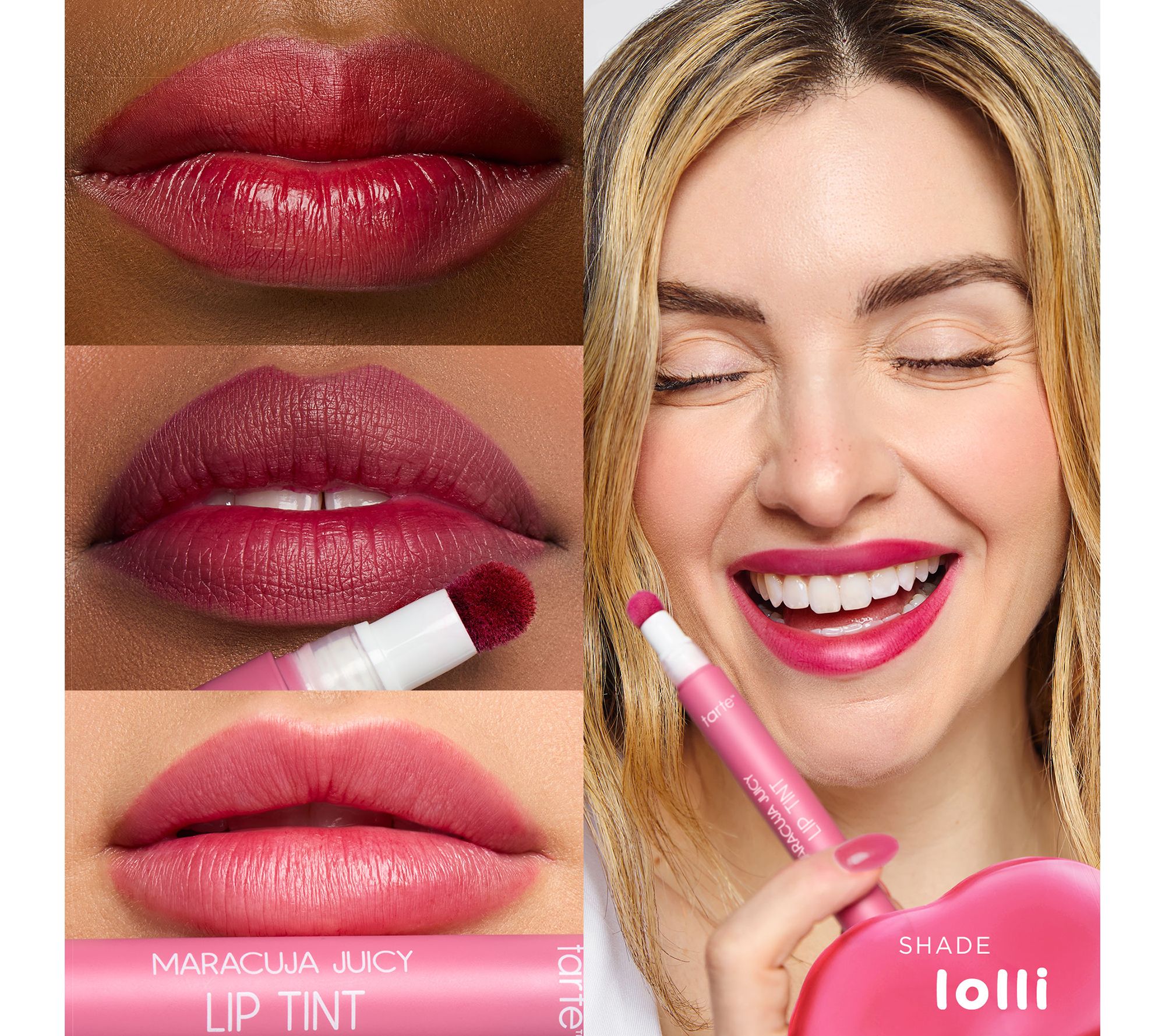 Stay bold from your first sip to last drop of coffee thanks to tarte's maracuja juicy lip tints! This dynamic duo packs a powerful punch by giving you transfer-proof color that stays juicy. Just dab, blend, and you're done. Use the foolproof pompom tip for application. This formula was made to be lightweight and move with your lips. Plus, these tints are formulated with hyaluronic acid. They help to temporarily plump, hydrate the appearance of lips. You deserve a lip color that sticks with you, not your latte.