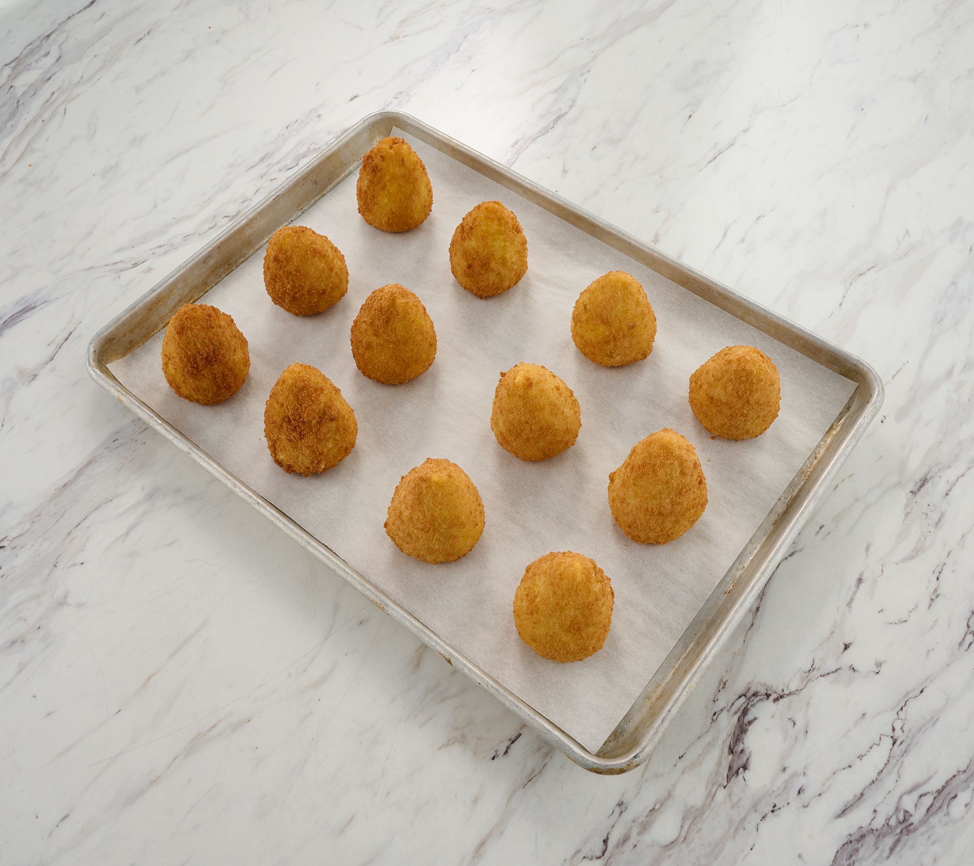 Includes twelve 4-oz cone-shaped arancini; arrives frozen in two bags with six cones per bag