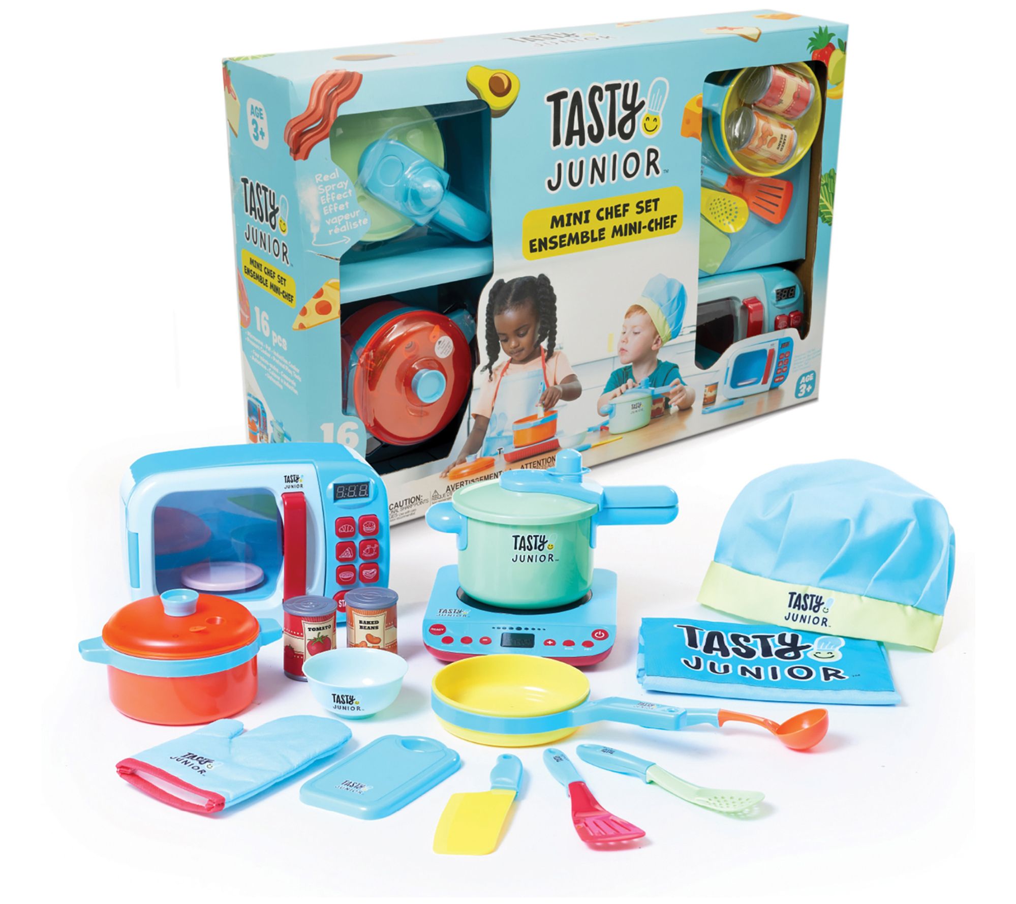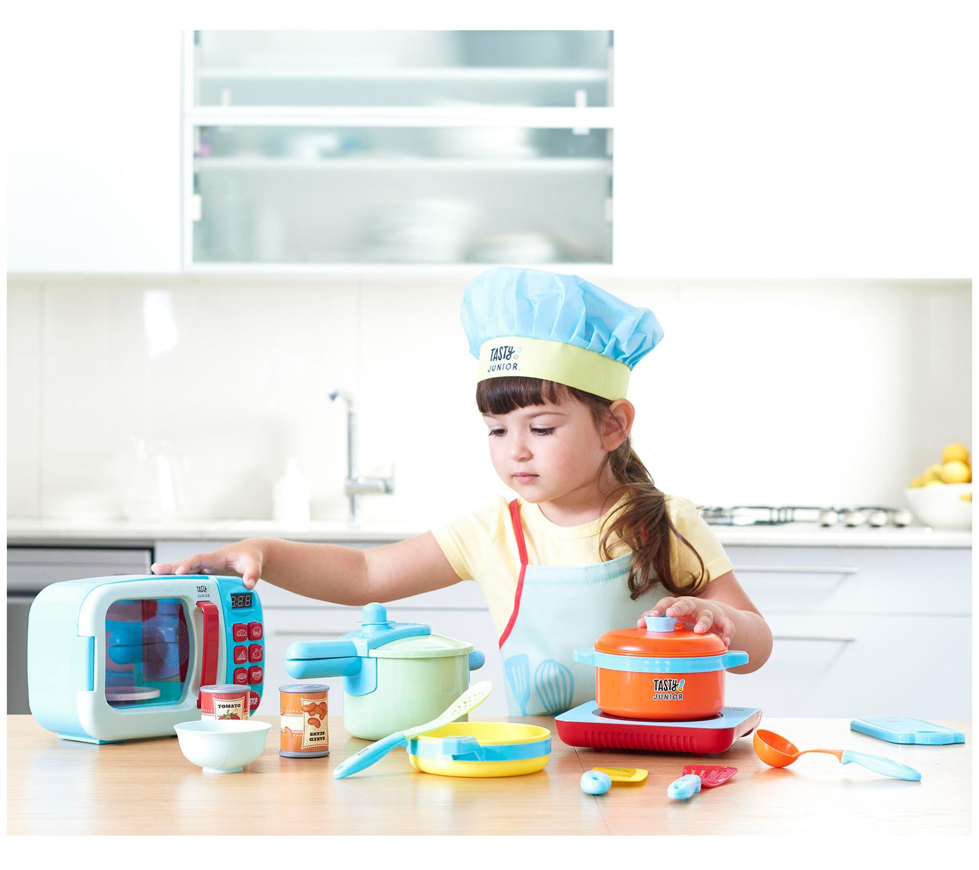 Add a splash of fun and a dash of excitement to playtime with this pretend cooking set, featuring appliances, kitchen tools, and accessories that let little chefs whip up make-believe culinary masterpieces. From Tasty Jr.