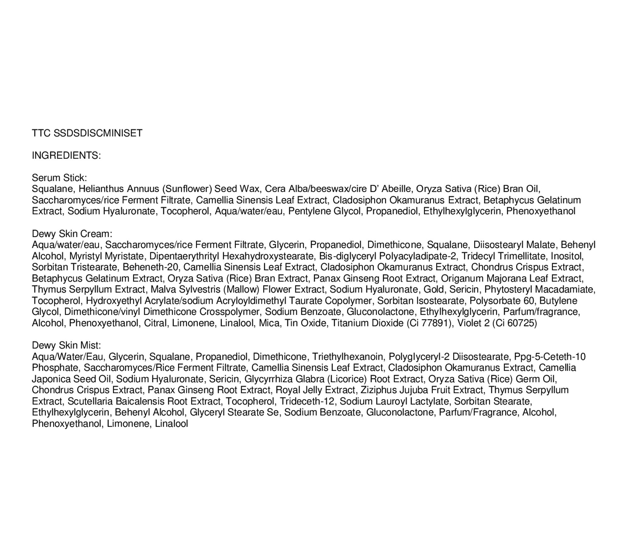 How do I use it: After cleansing, take a pearl-sized amount of the Dewy Skin Cream, and massage onto face, neck, and decollete. Glide the Serum Stick on anytime, anywhere you desire to help add moisture. Press with fingers to set. Can be used over makeup to refresh and create the look of a subtle glow. Shake the Dewy Skin Mist gently and spritz two to three times, from 6" away. Use this facial spray before makeup to help hydrate, or incorporate it into your ritual as a finishing spray after applying your makeup.