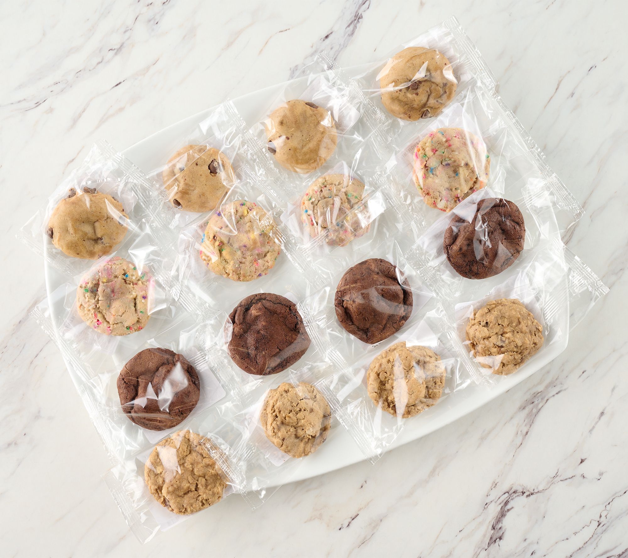 • Combo: four each of peanut butter fudge, chocolate chip biscuit, oatmeal chocolate chip, and birthday cake