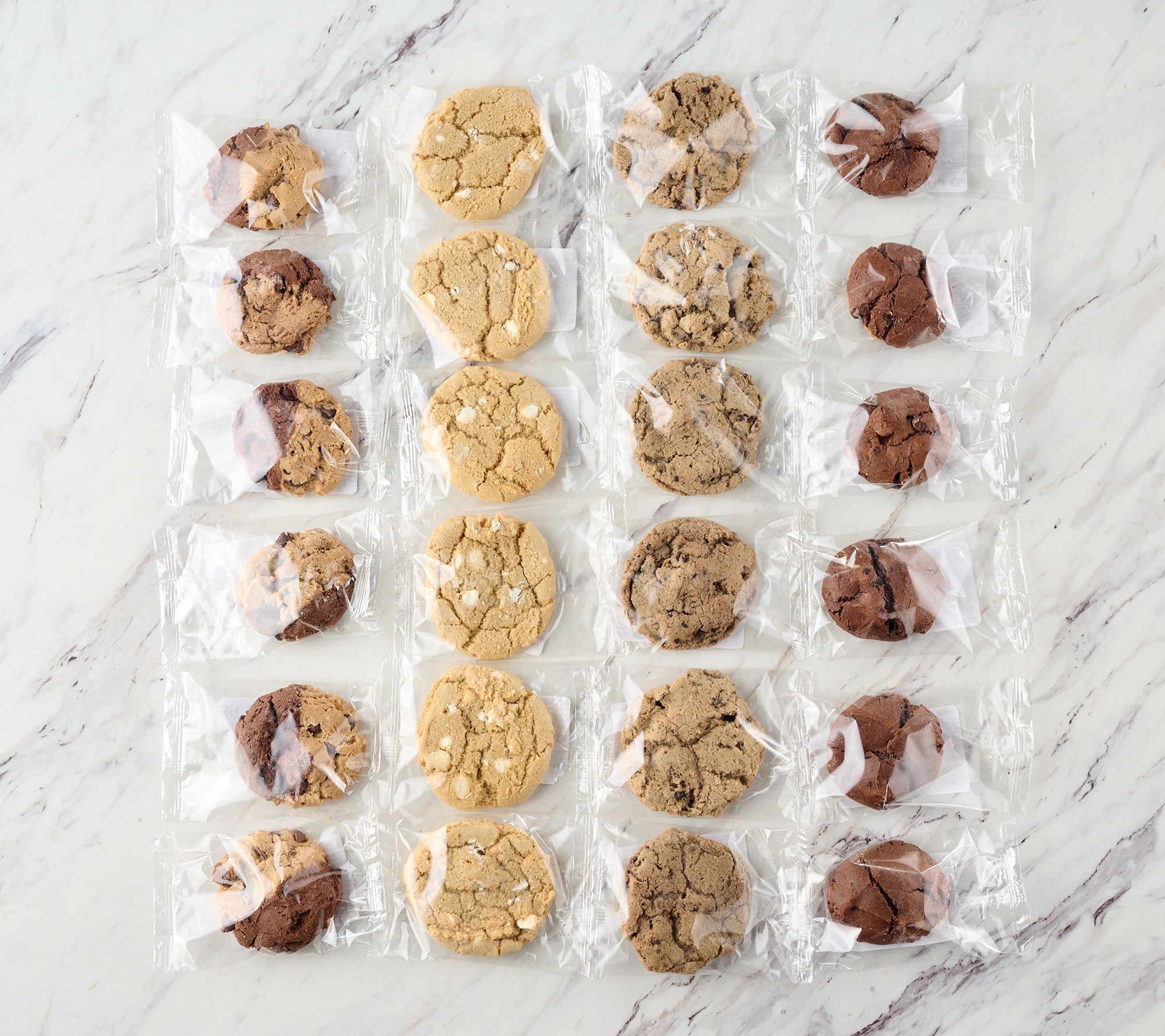 • Includes 24 mini cookies: six each of white chocolate macadamia, peanut butter fudge, brookie, and cookies and cream