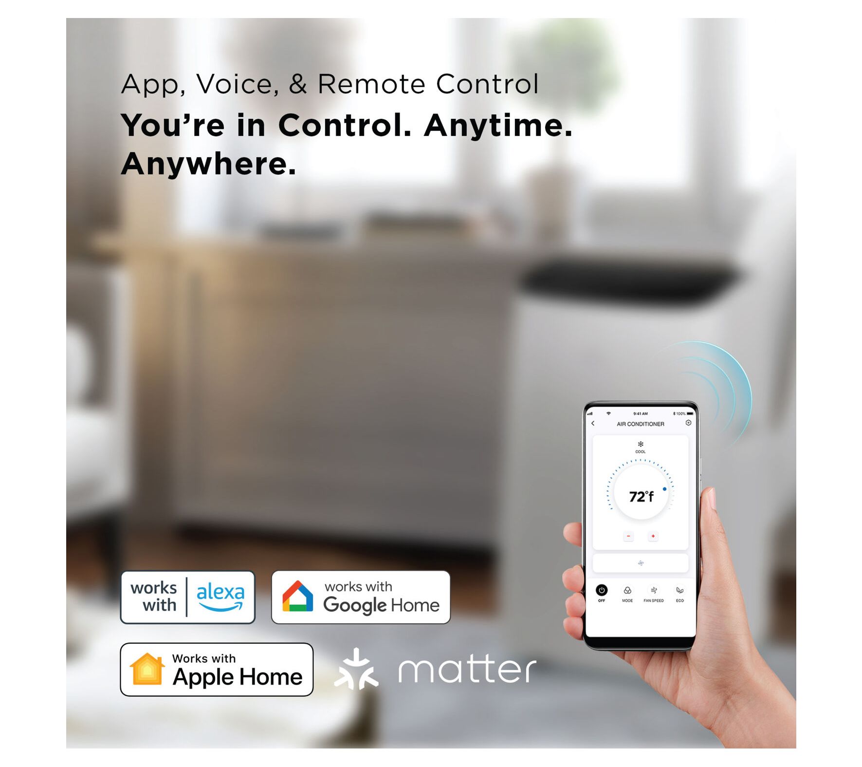 • Includes portable air conditioner, remote control with batteries, flexible exhaust hose, window venting kit, and manual