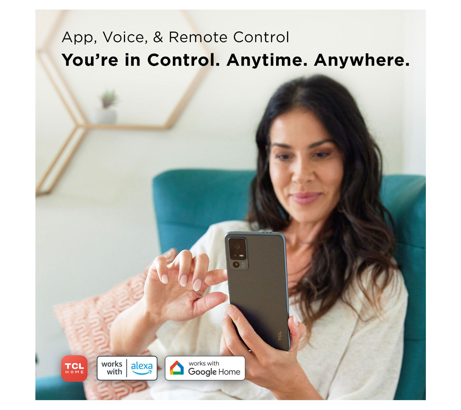 • Smart controls compatible with TCL Home App, Alexa, and Google Assistant