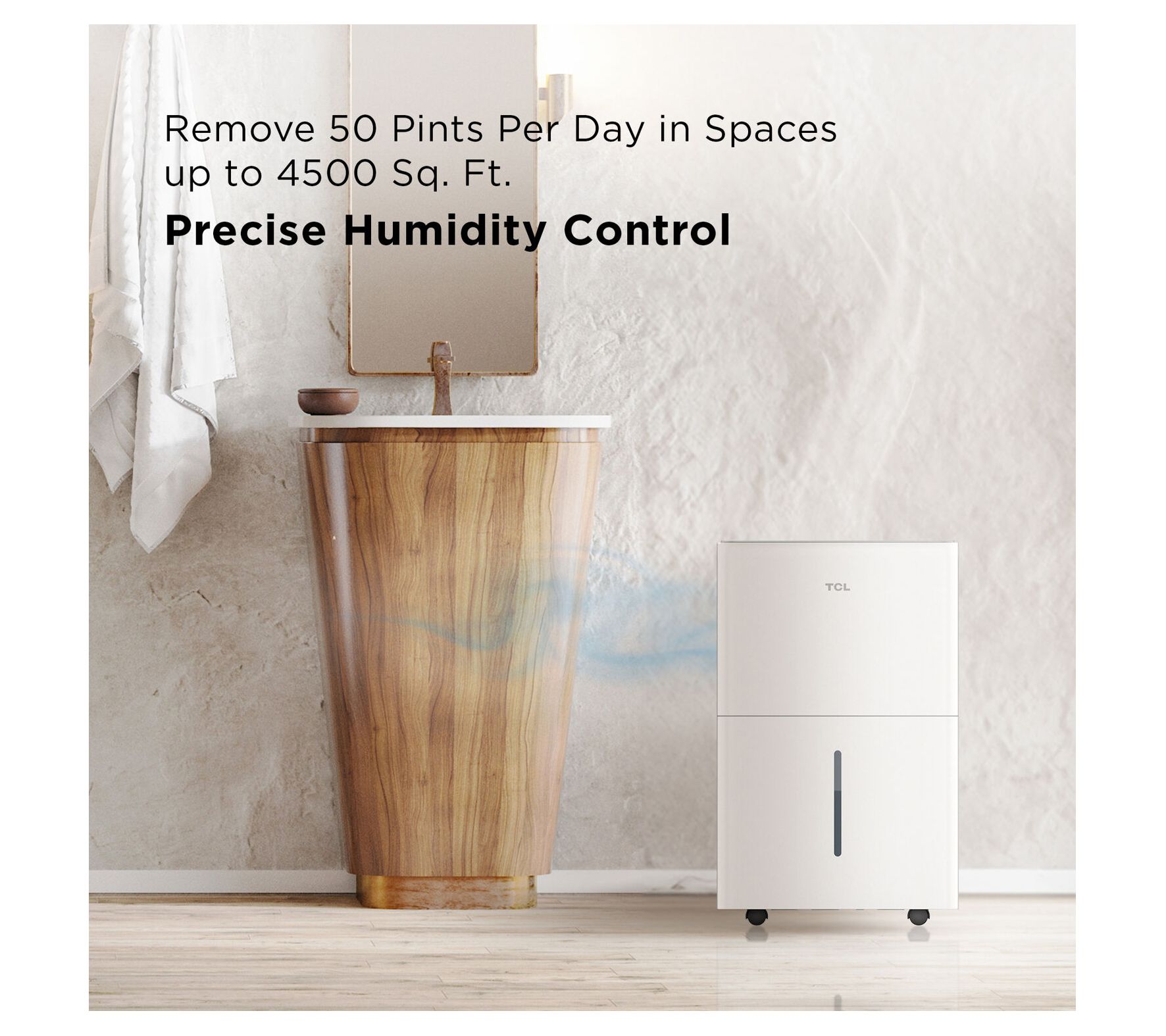 Tackle dampness and help create a healthier environment in larger rooms with the TCL 4,500 sq ft 50-pint dehumidifier. Designed for convenience, you can monitor and set your home's humidity from anywhere using your smartphone or control with just your voice -- ideal for busy days or restful nights. Rest easy knowing excess moisture is under control. From TCL.