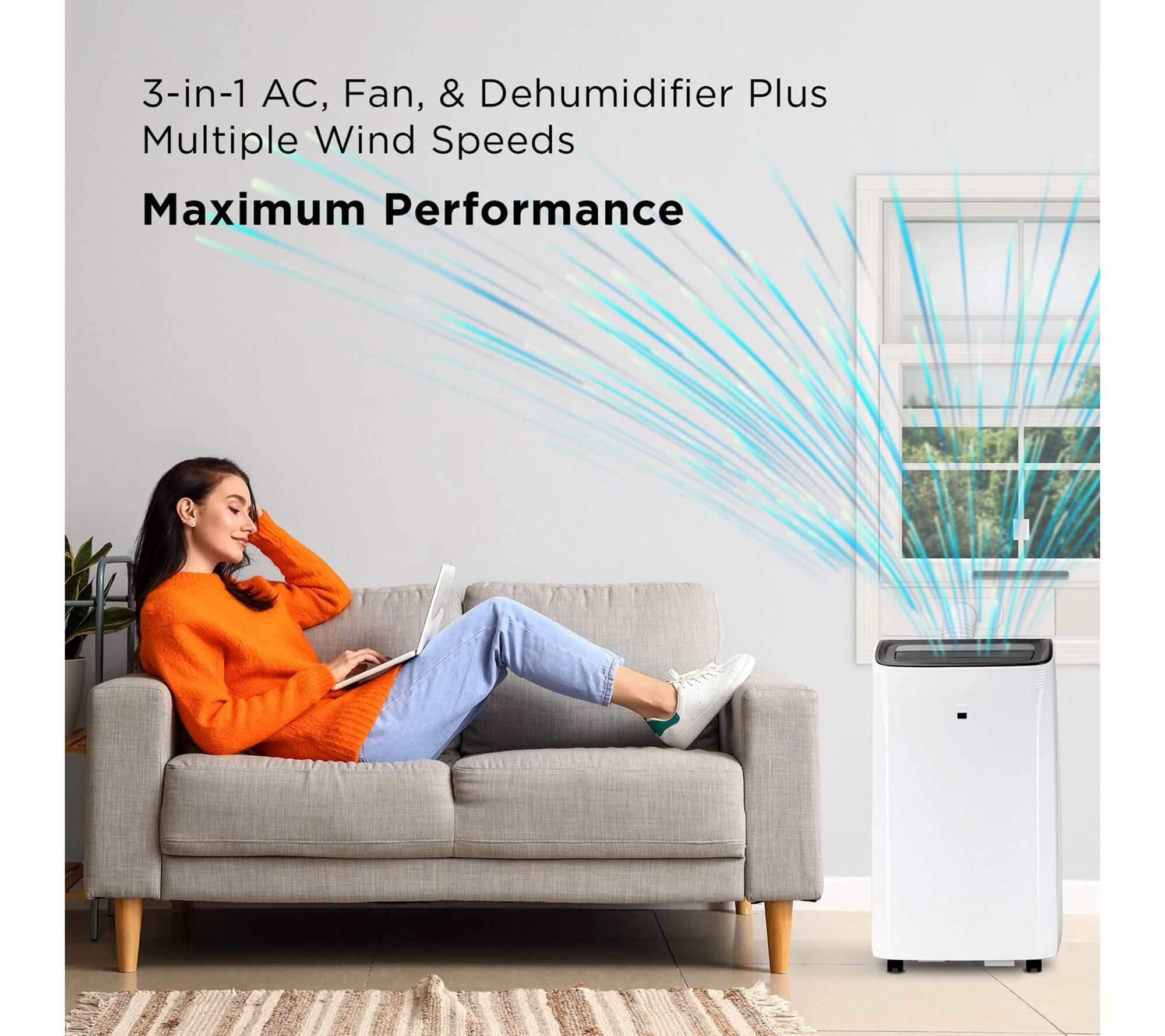 • Includes portable air conditioner, remote control with batteries, flexible exhaust hose, window venting kit, and manual