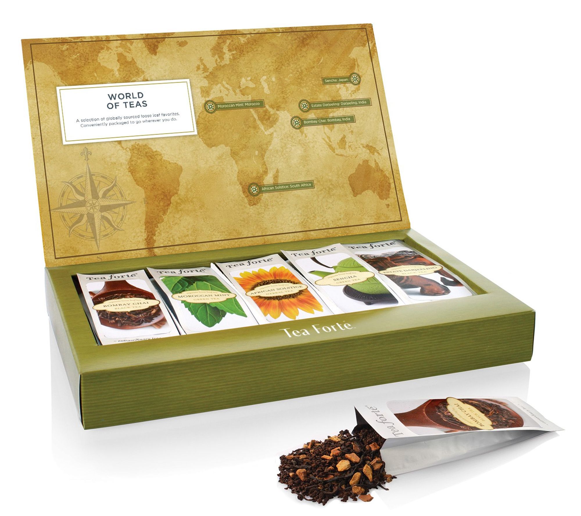 Whether you're curled up with a book or catching up with friends, brewing a mug of tea becomes effortless with this Tea Forte set. Pre-portioned Single Steeps take the guesswork out of measuring, while the ceramic Kati steeping mug, with a stainless infuser, makes enjoying loose leaf tea at home or at the office a relaxing ritual. From Tea Forte.