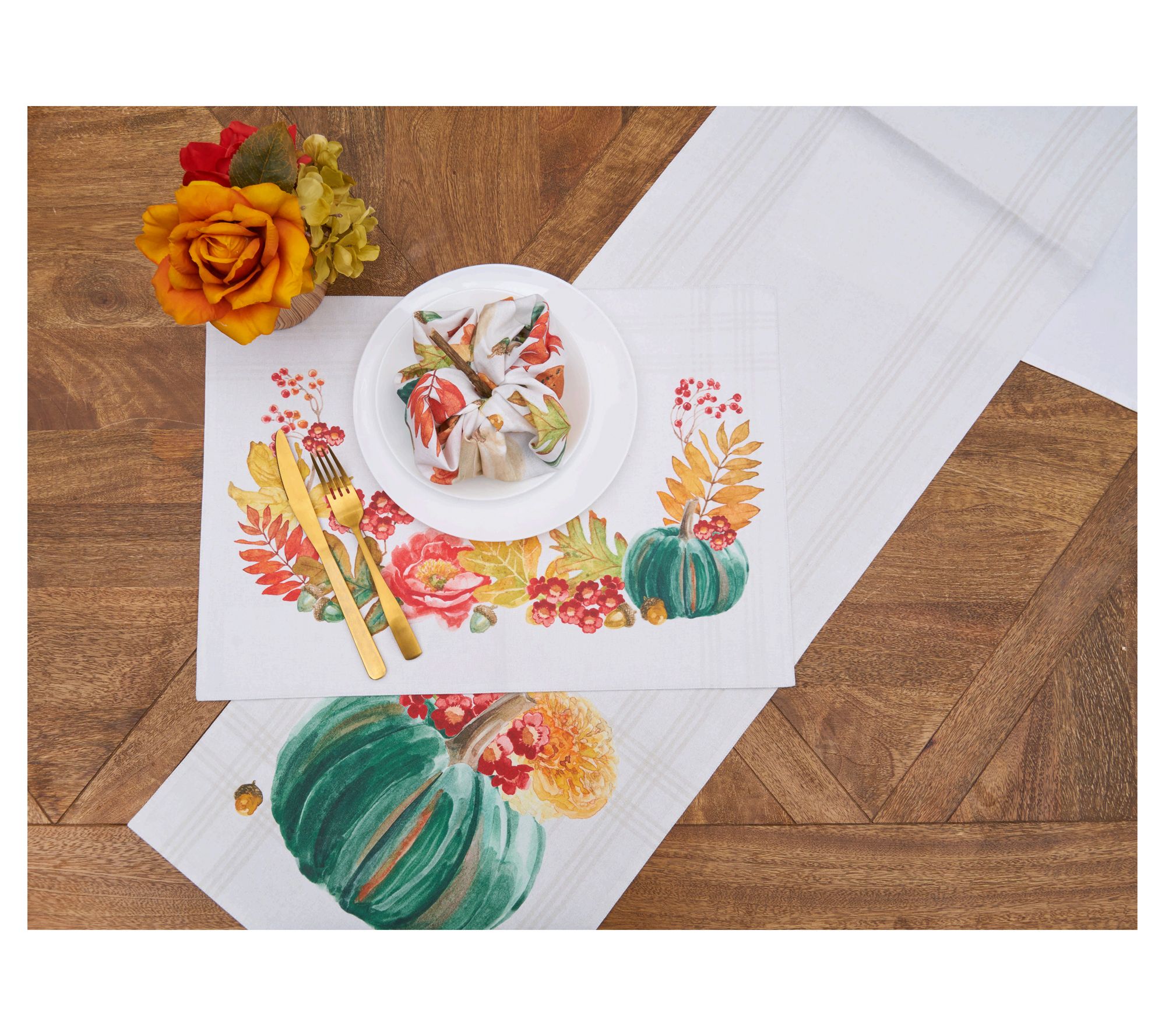 Setting the stage for warm, inviting meals, this teal pumpkin harvest runner by Valerie hints at the charm of autumn gatherings. Imagine it gracing your dining table, adding splashes of seasonal joy while complementing your favorite dinnerware. Perfect for memorable feasts with family and friends, it transitions seamlessly from casual brunches to festive holiday spreads, enhancing every shared moment. From the Valerie Parr Hill Collection.