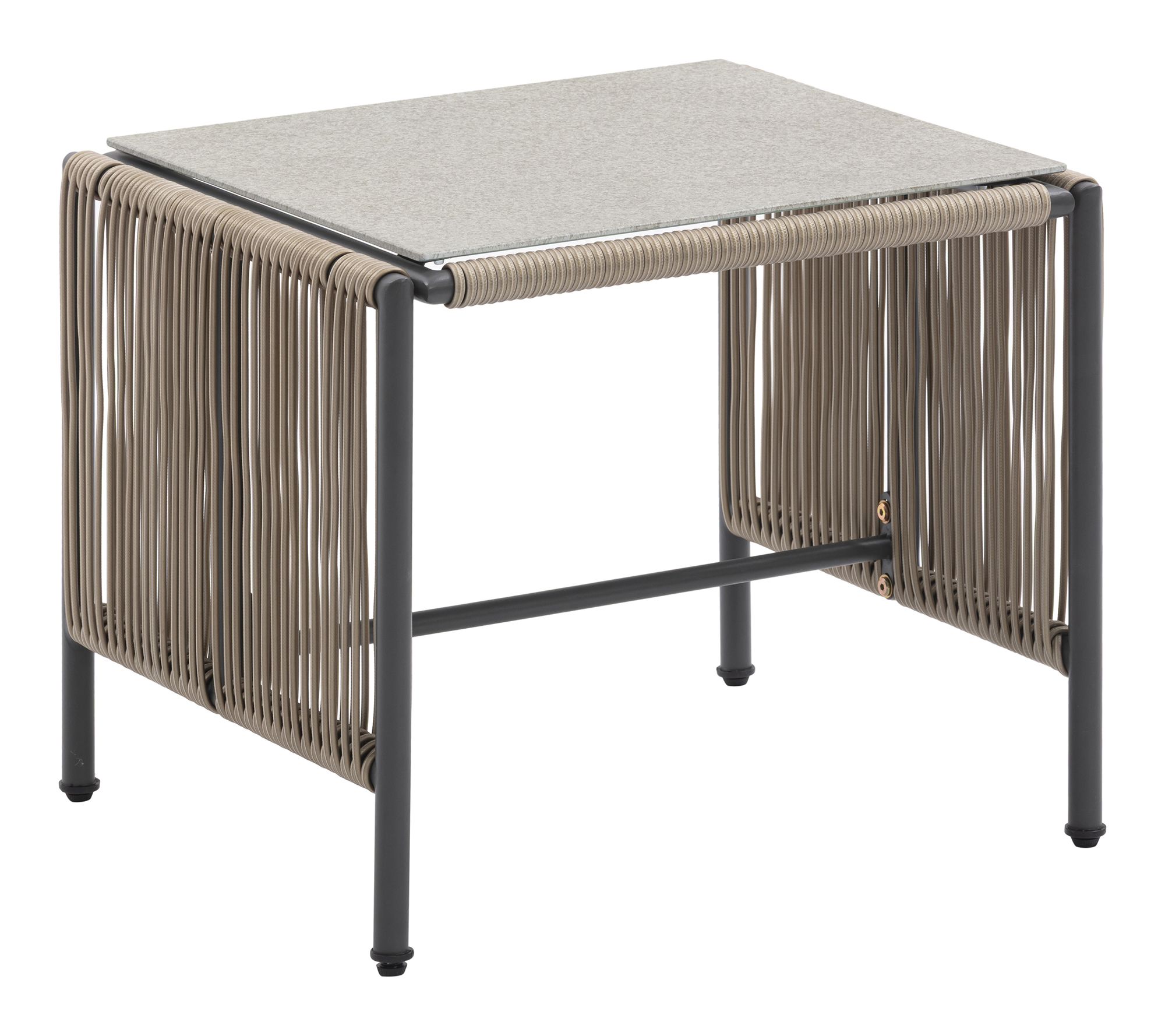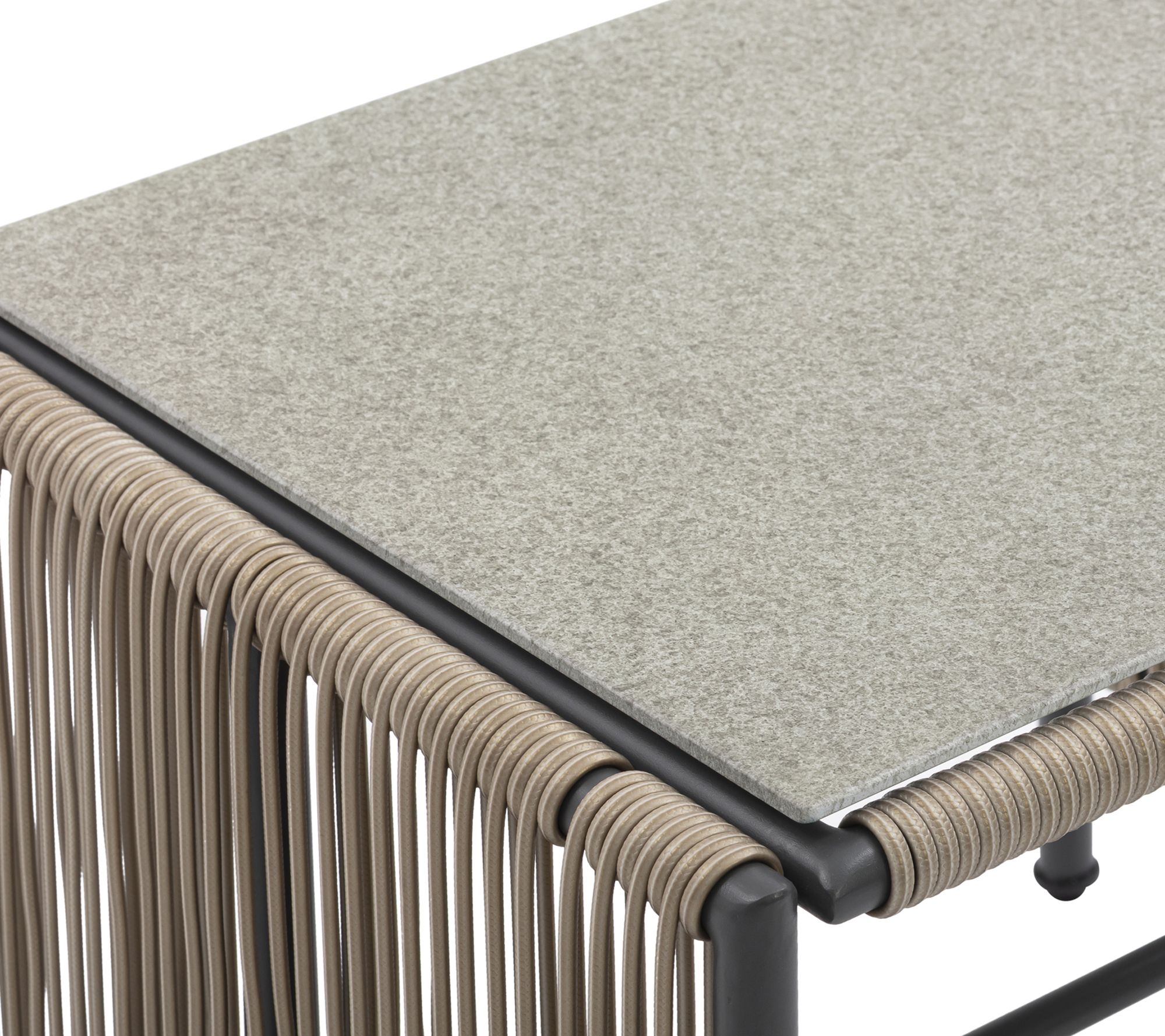 • Powder-coated steel frame with woven polyethylene rope accents