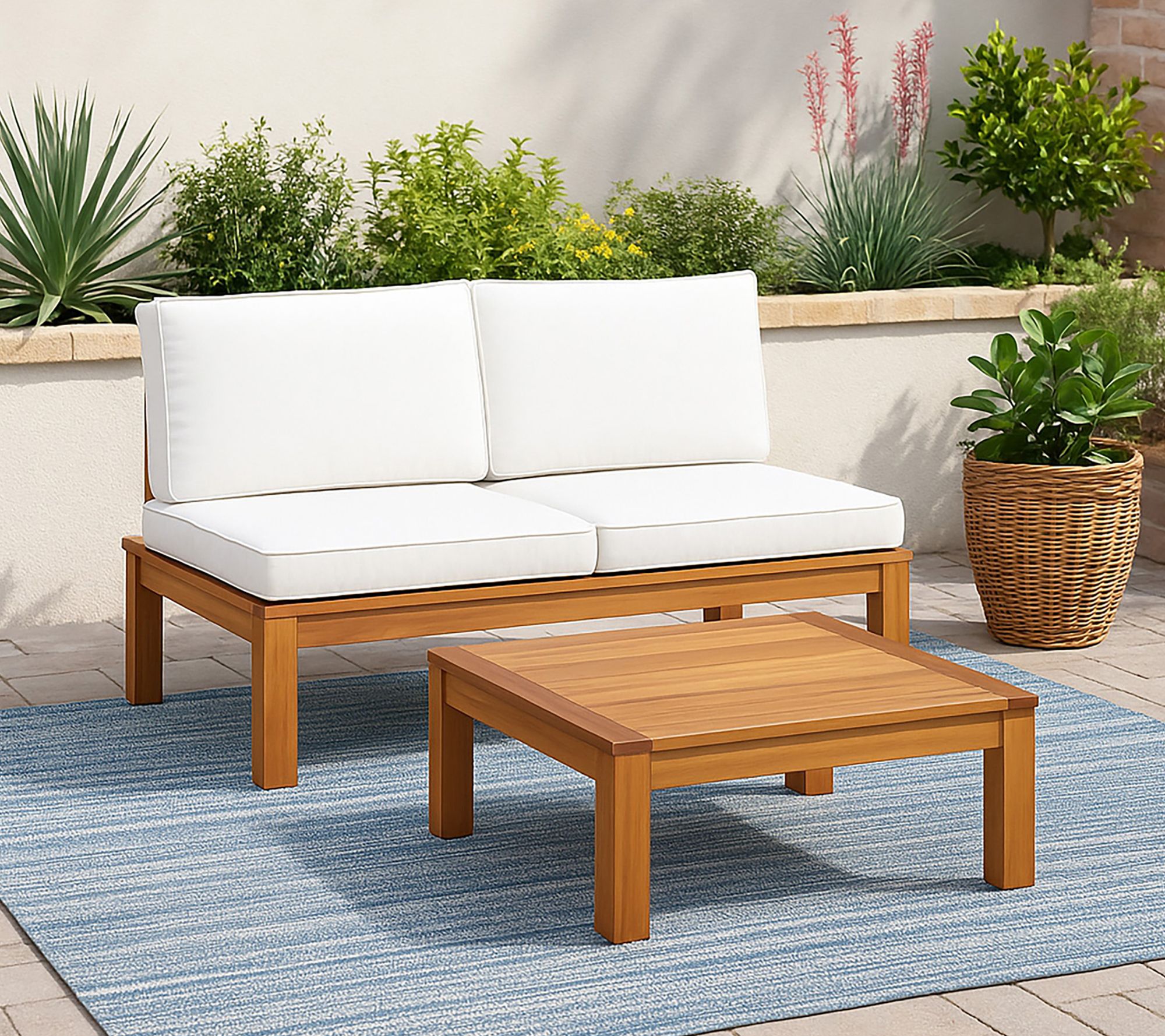 Gather the crew for sunny brunches or twilight chats with this modular outdoor sofa set, perfect for relaxing or entertaining. With a versatile acacia wood design, plush weather-resistant cushions, and space-saving proportions, you can transform any patio into a cozy haven -- shape the set as a loveseat, lounger, or daybed to suit every moment. From Teamson Home.
