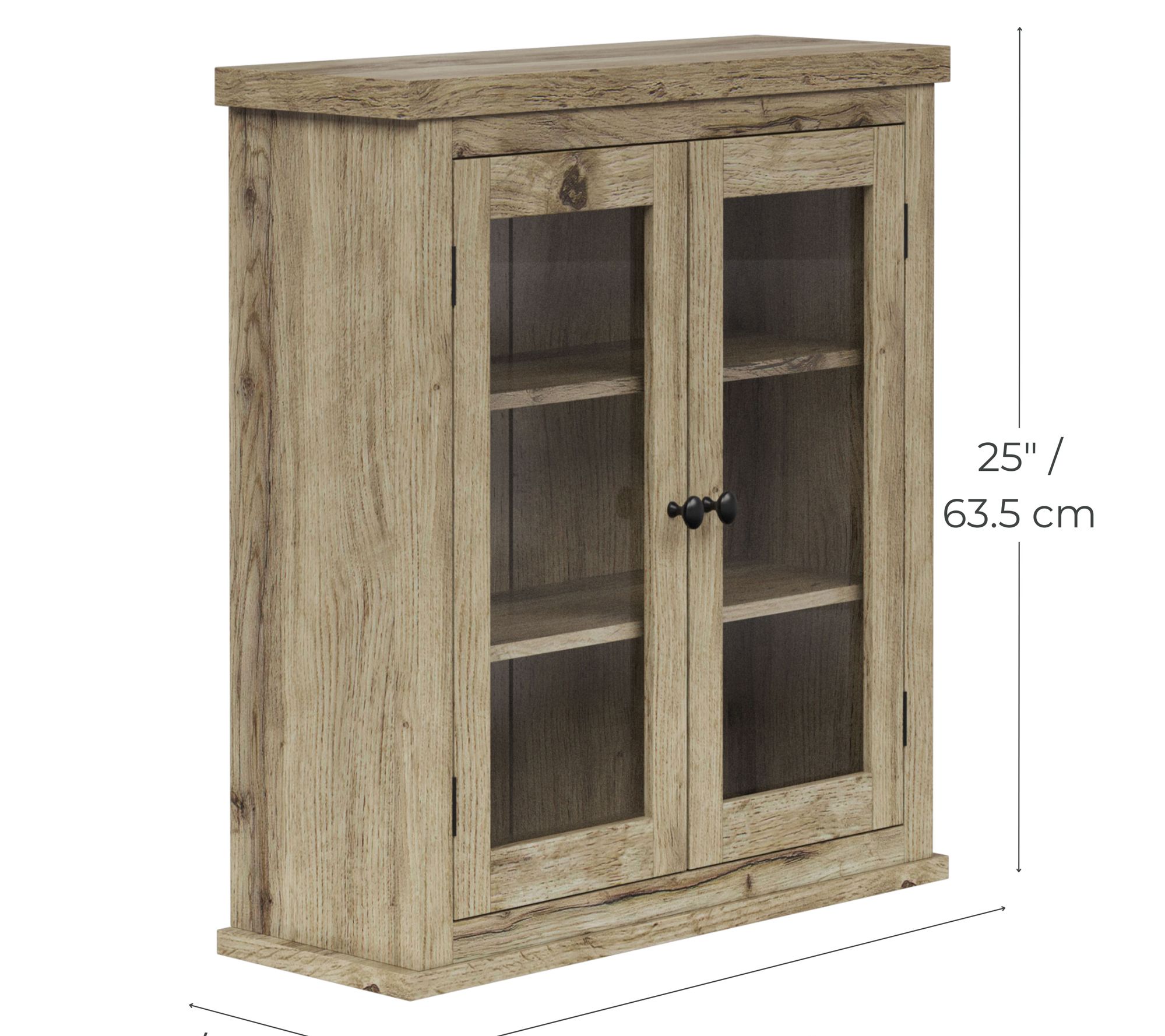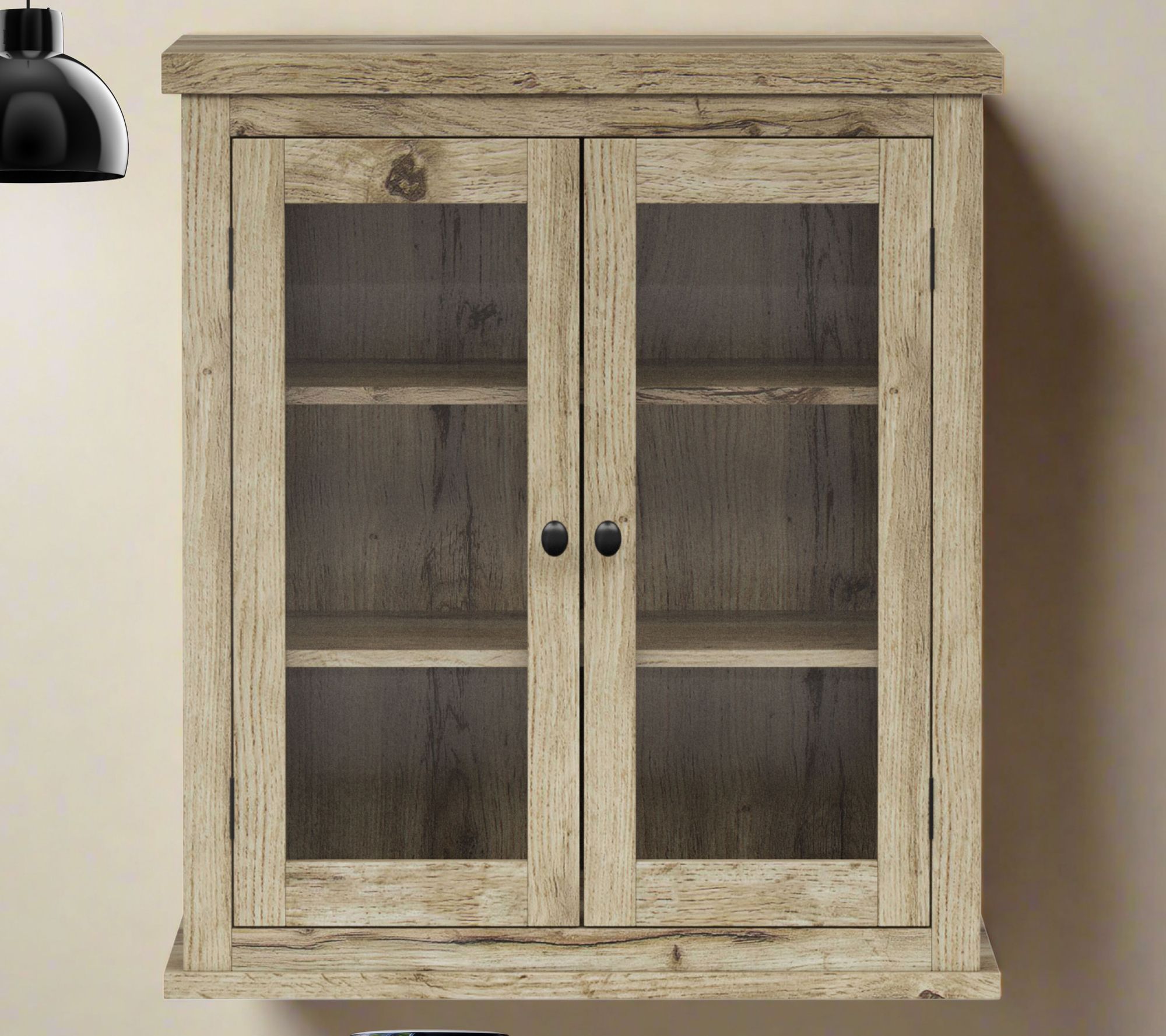 Add a touch of classic charm to your home with the Teamson Home Donovan removable two-door wall cabinet. This stylish cabinet, featuring glass-paneled doors and matte black hardware, brings a rustic vibe to bathrooms, kitchens, or dining rooms. The neutral finish and adjustable shelves offer customized storage while maintaining a light and airy feel. From Teamson Home.