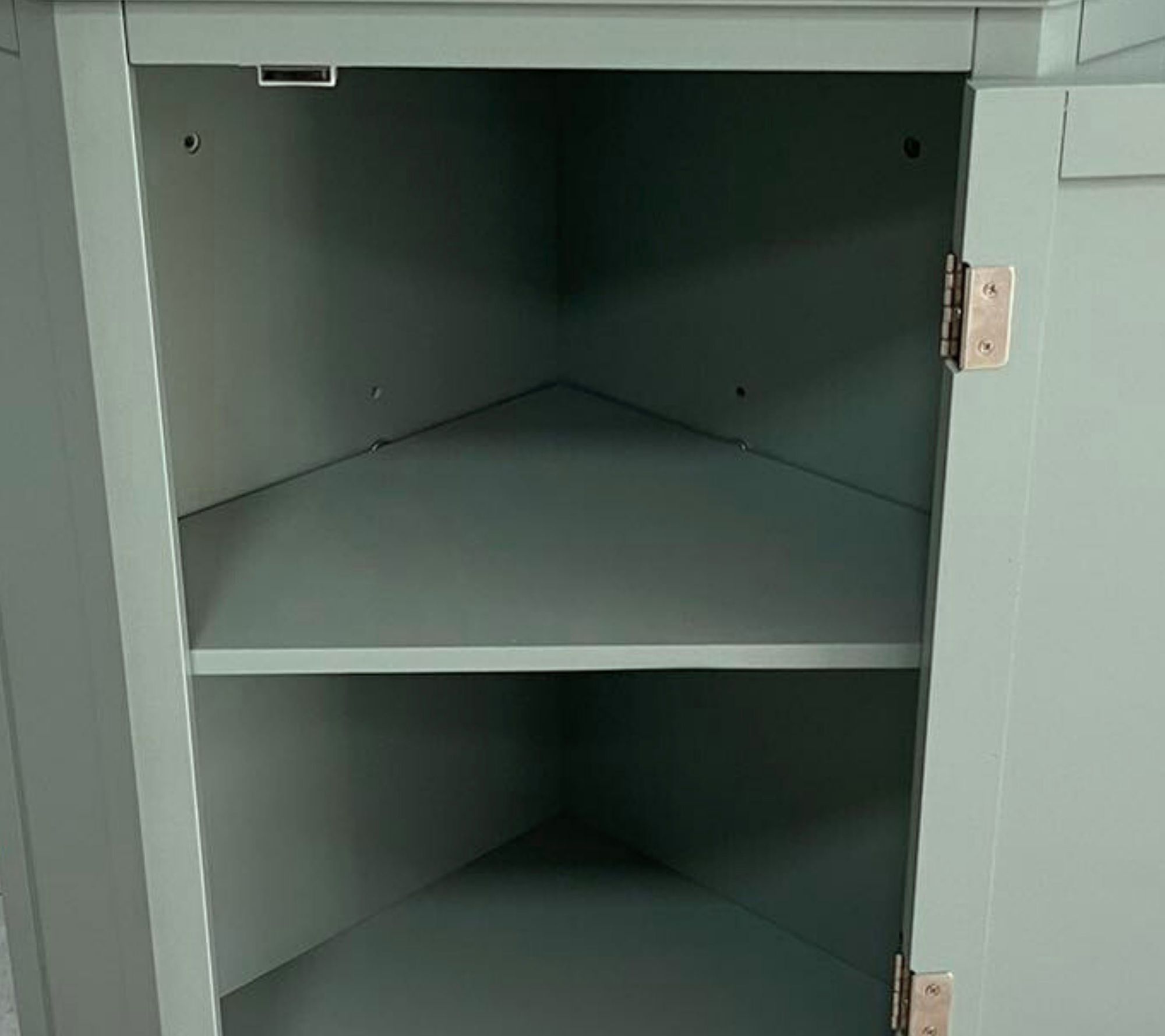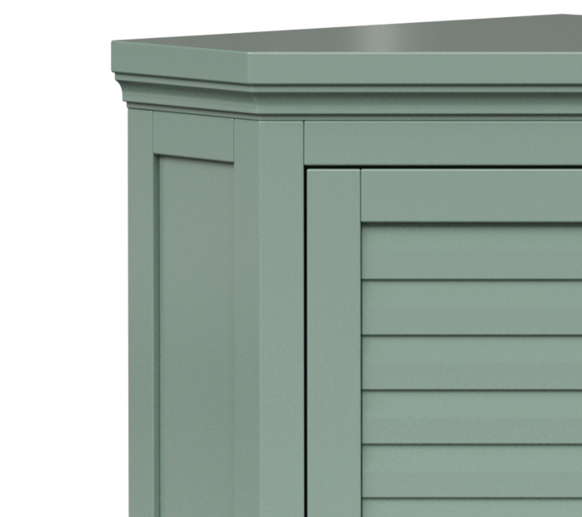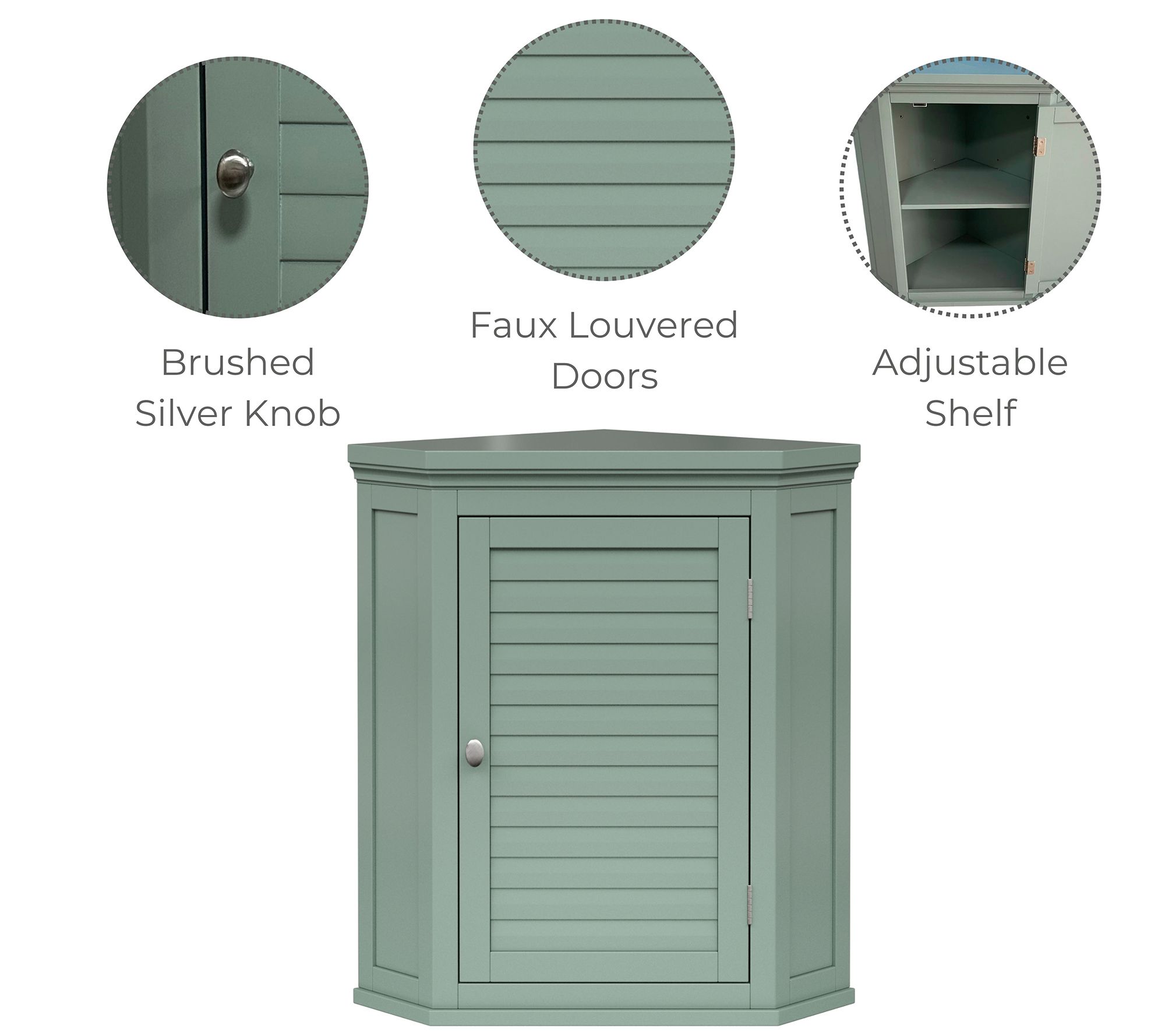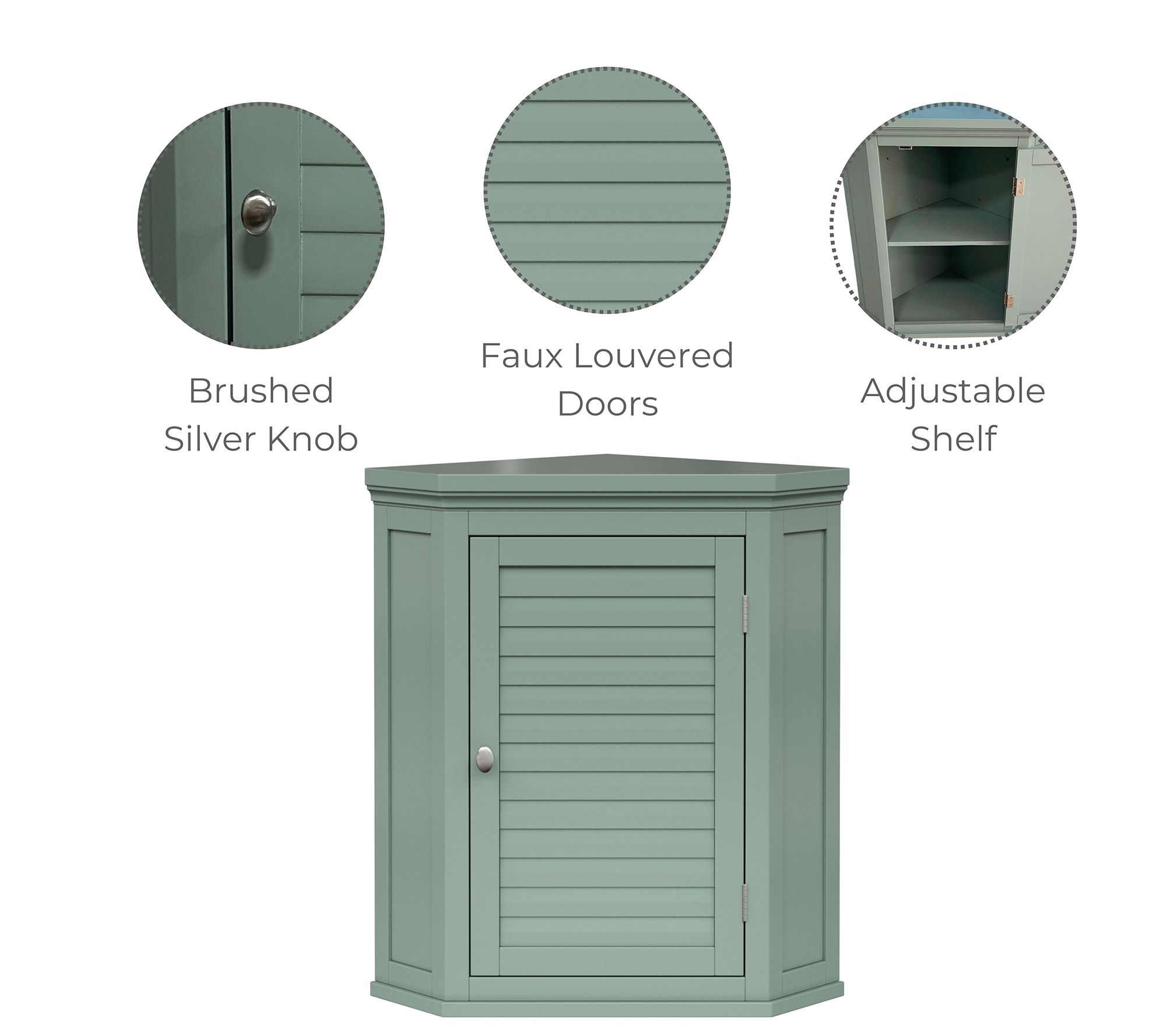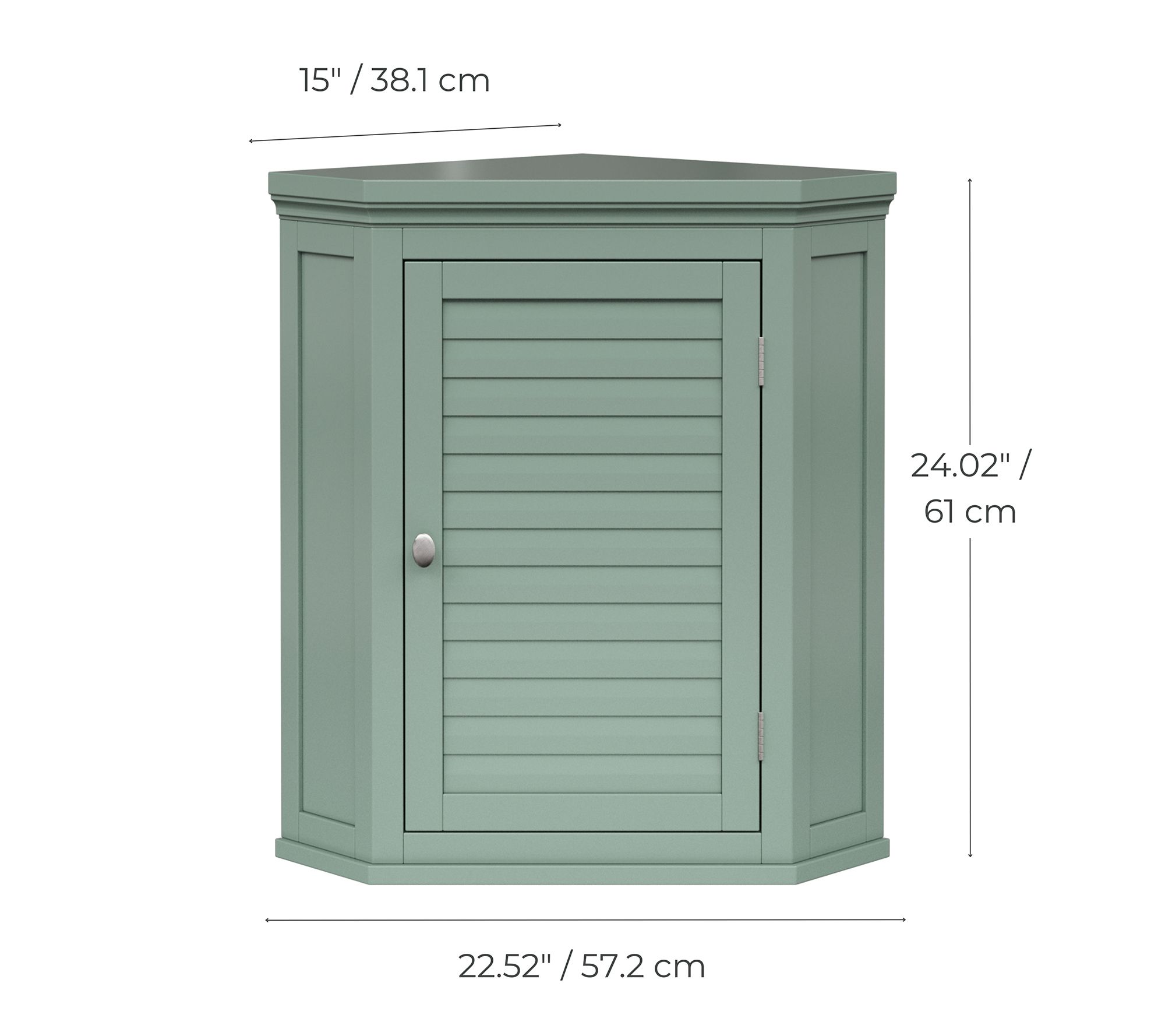 Effortlessly organize and enhance your living space with the Teamson Home Glancy Corner Wall Cabinet. Perfect for bathrooms, kitchens, laundry rooms, or home offices, this cabinet optimizes unused corner spaces, providing practical storage without compromising style. Its classic finish, crown molded top, and faux louvered door add a touch of elegance to any room. From Teamson Home.