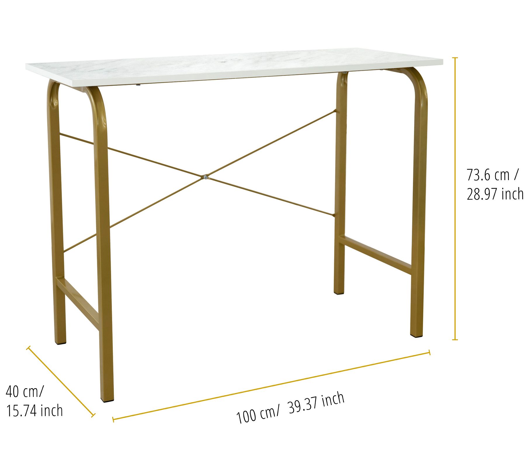 Teamson Home Office Computer Desk Metal Base, Marble/Brass