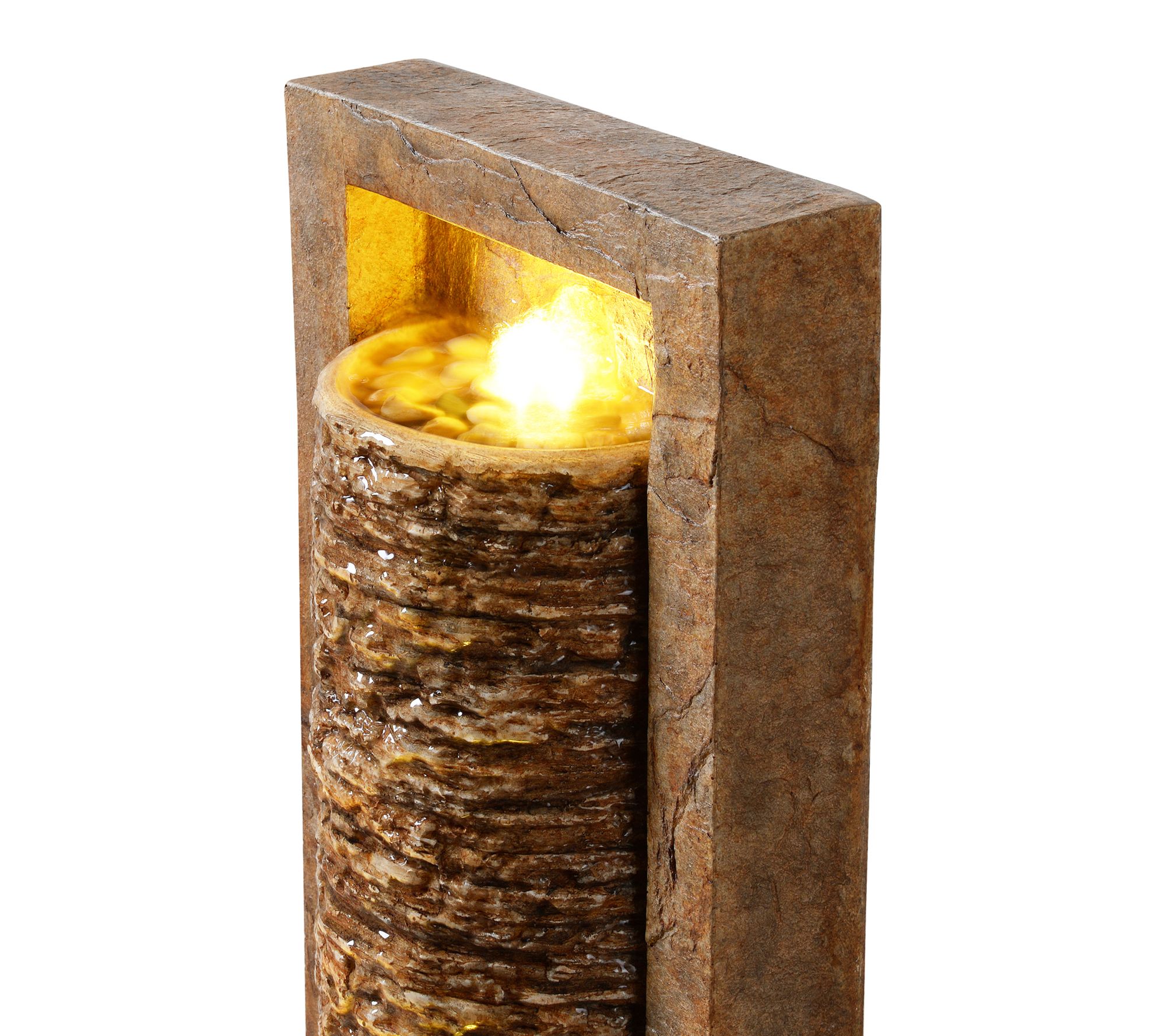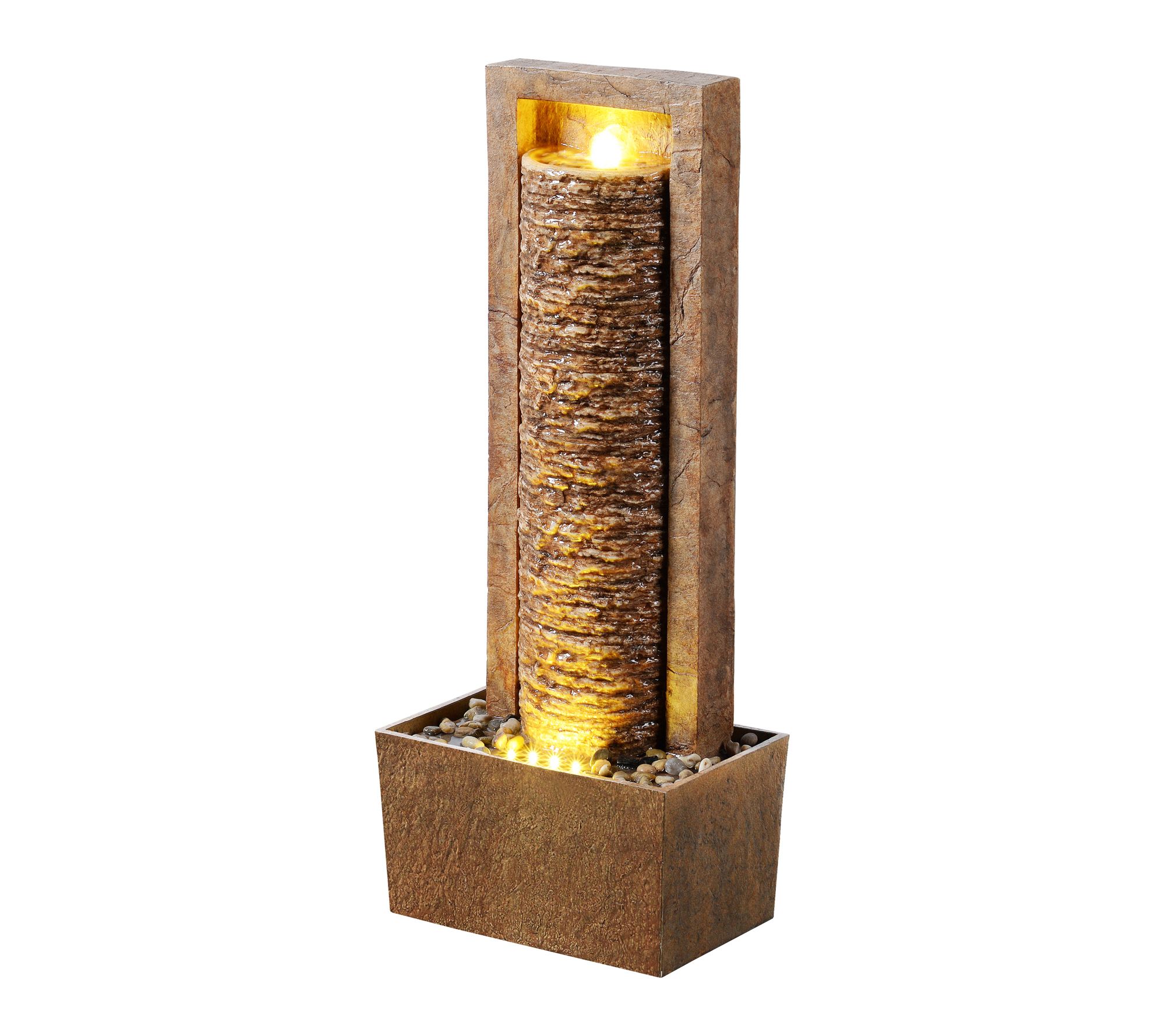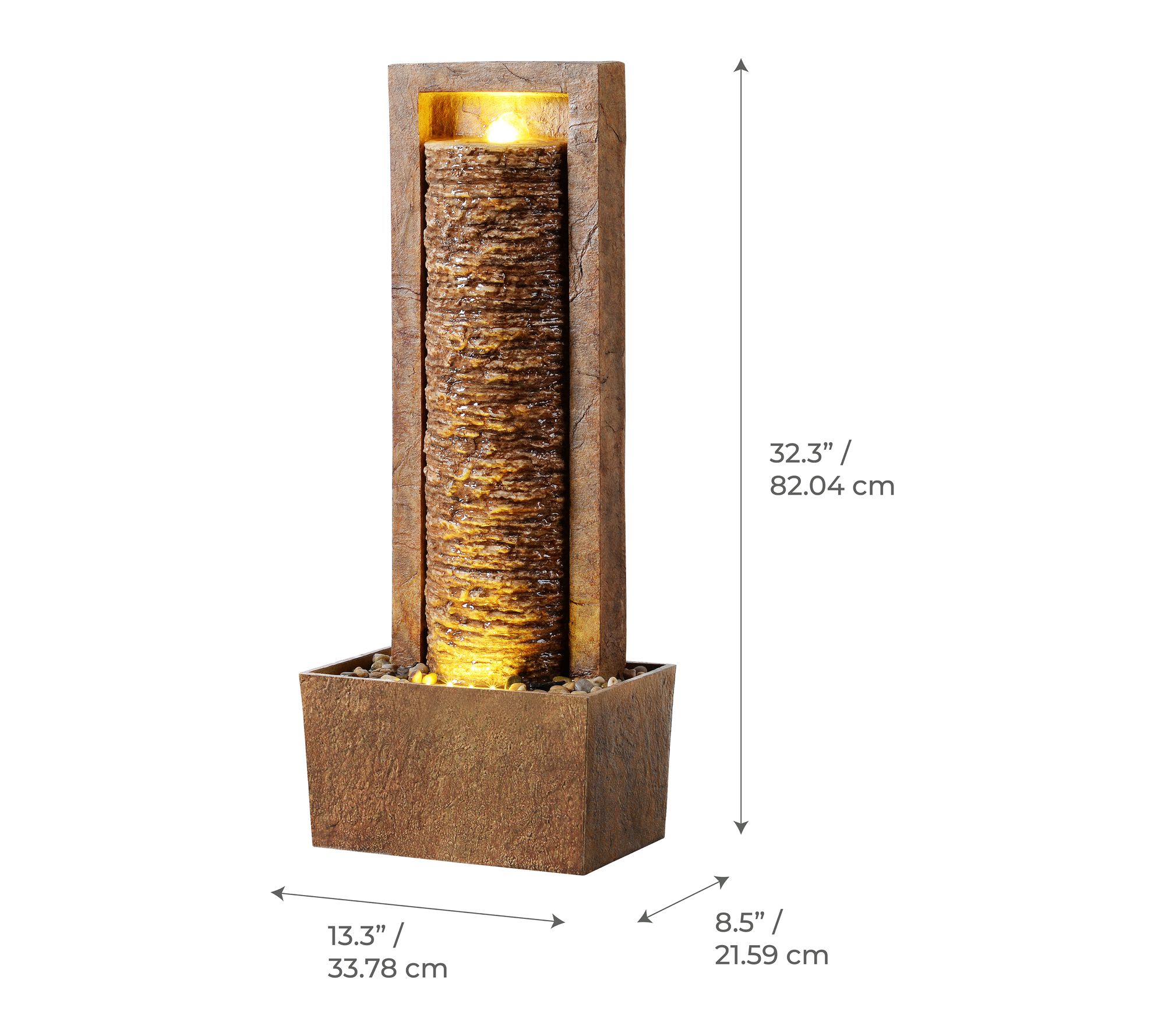 Let the soothing sound of cascading water transform your patio, balcony, or garden with this framed column fountain. Its contemporary textured brown finish and built-in LED lighting cast a soft golden glow, creating a serene atmosphere for unwinding, entertaining, or simply enjoying your outdoor oasis. From Teamson Home.