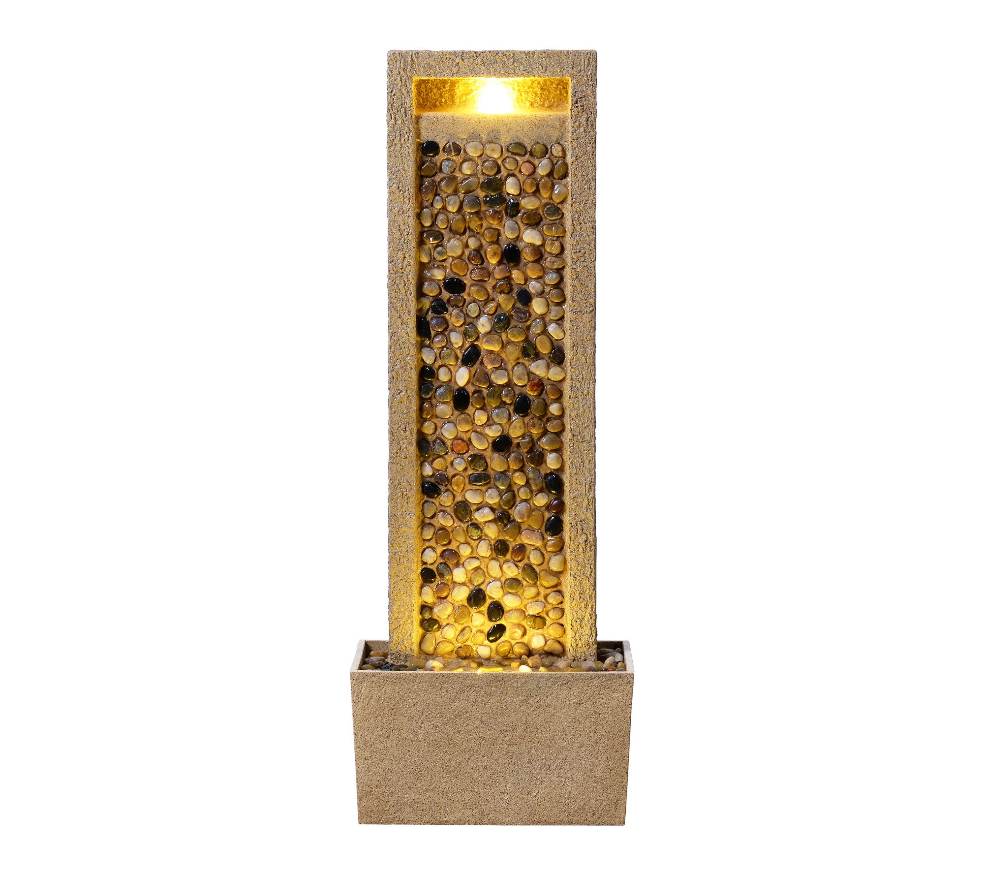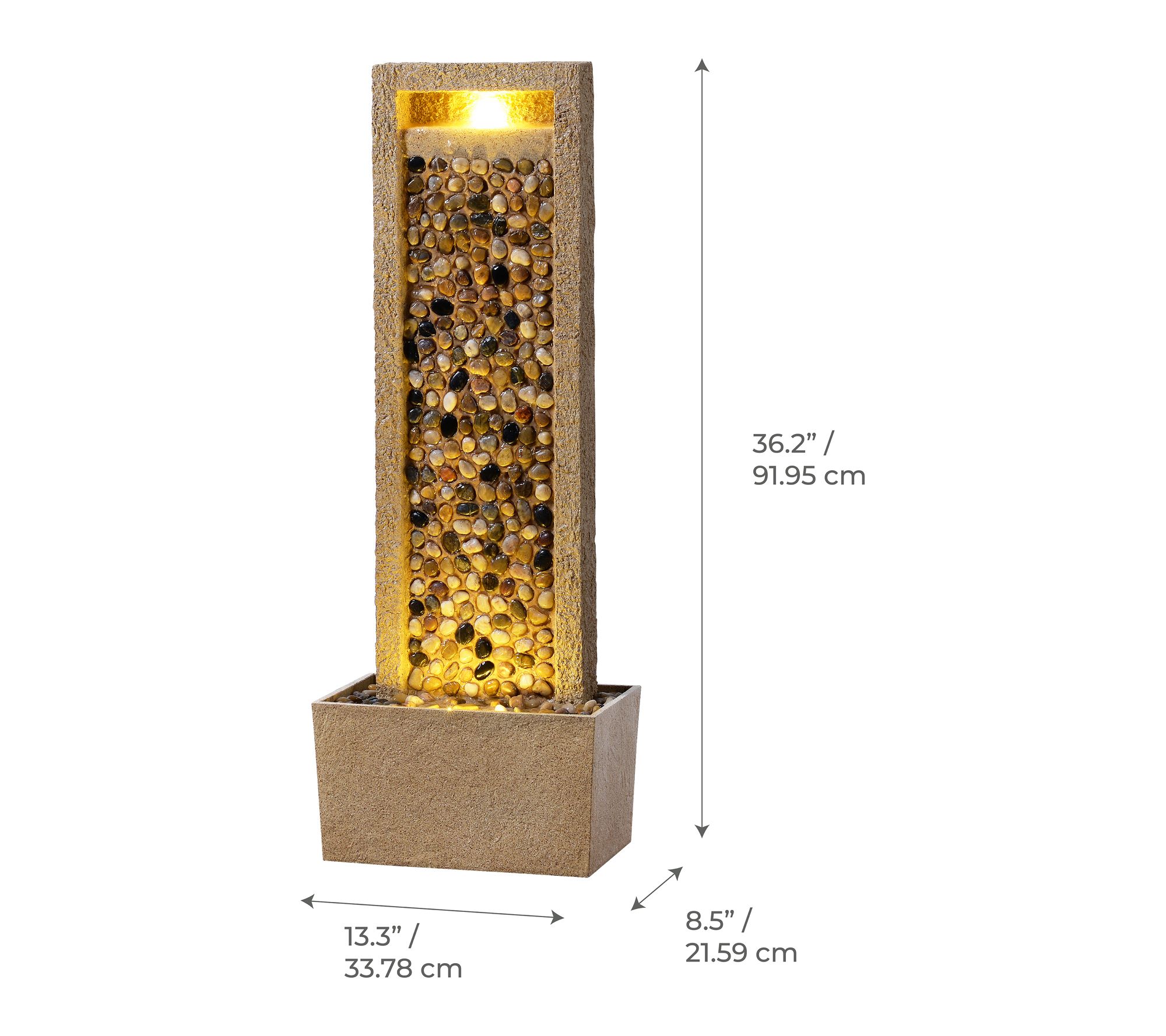 • Textured column features natural-look stone design and integrated LED lights for a soothing ambiance