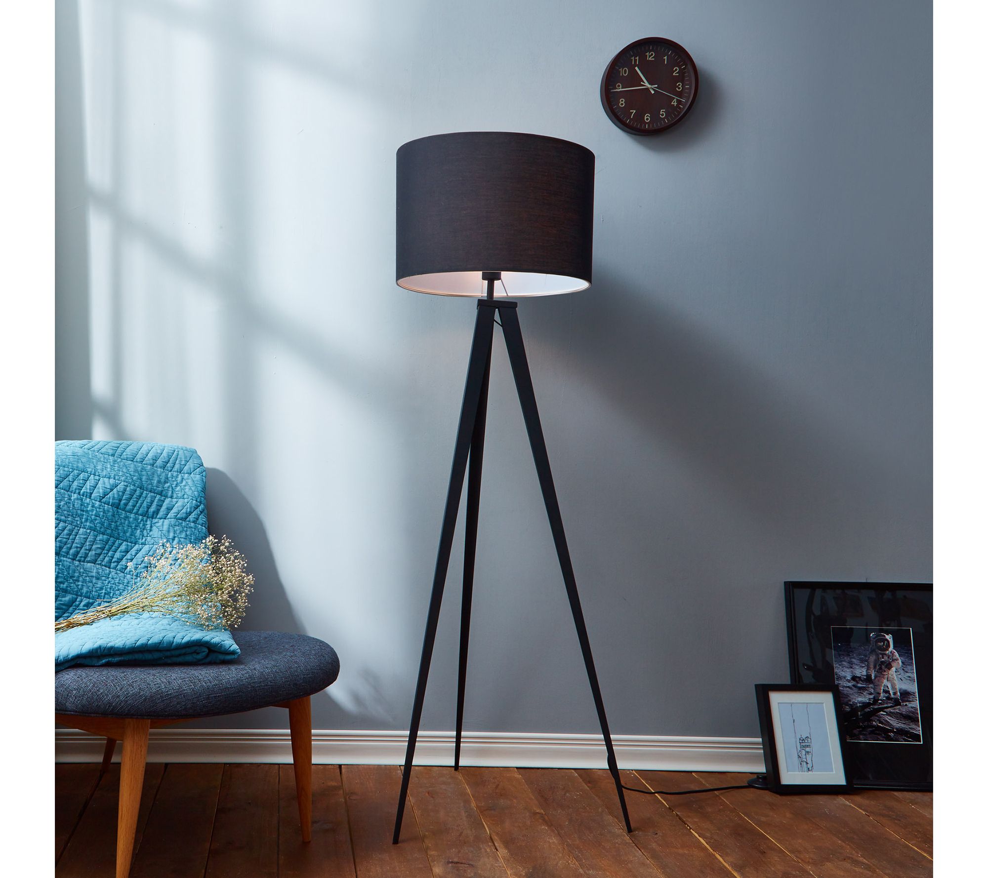 This tripod floor lamp has mid-century modern style with touches of industrial elements -- while its shade gives an edgy look without leaving the sense of minimalist. From Teamson Home.