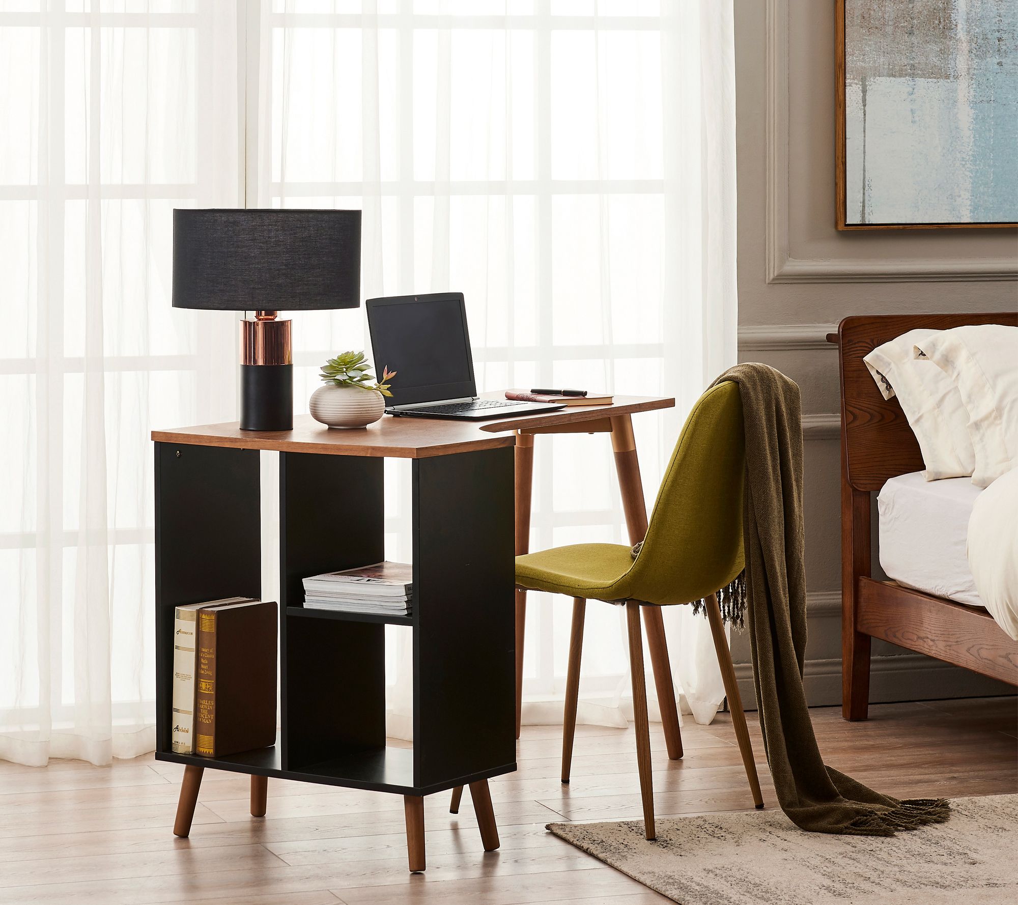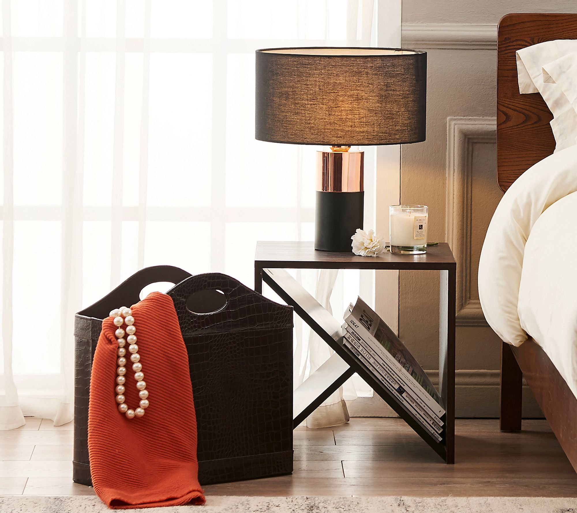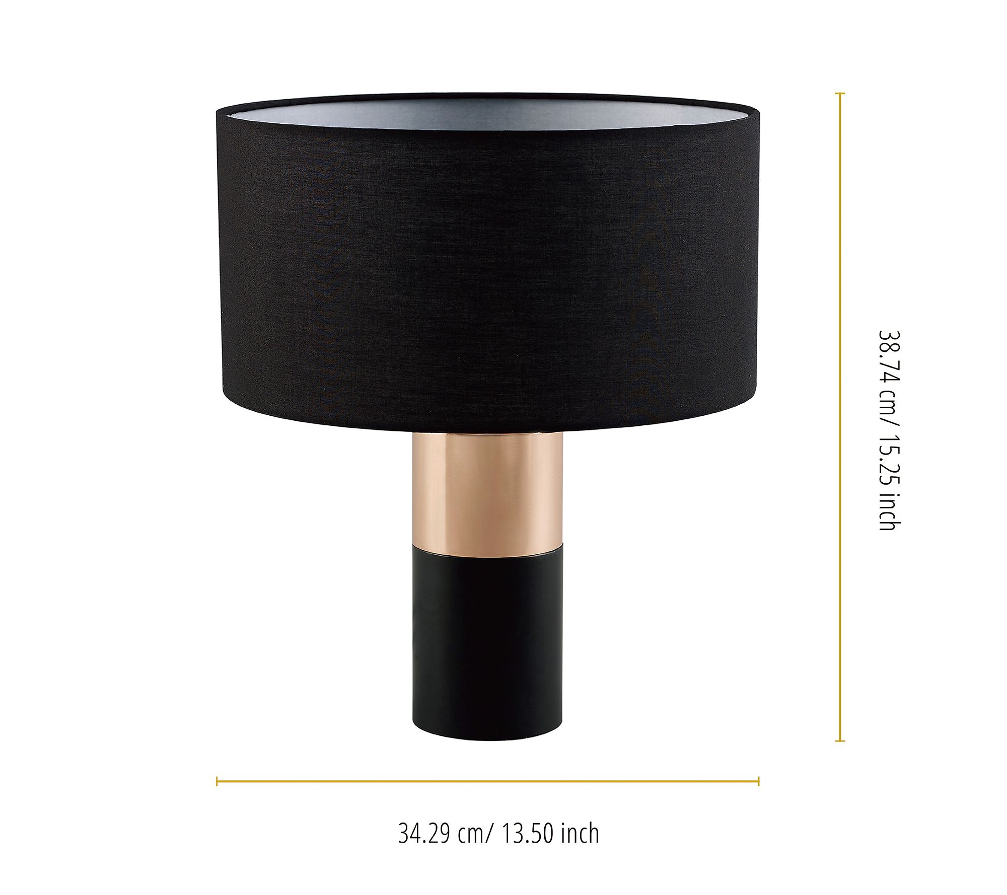 Illuminate your space while adding a timeless decor element with this accent table lamp. Featuring a modern black and brass design for a contemporary, elegant update, this lamp's wide, black shade warms and casts light for a soft glow in your bedroom, den, or living space. From Teamson Home.
