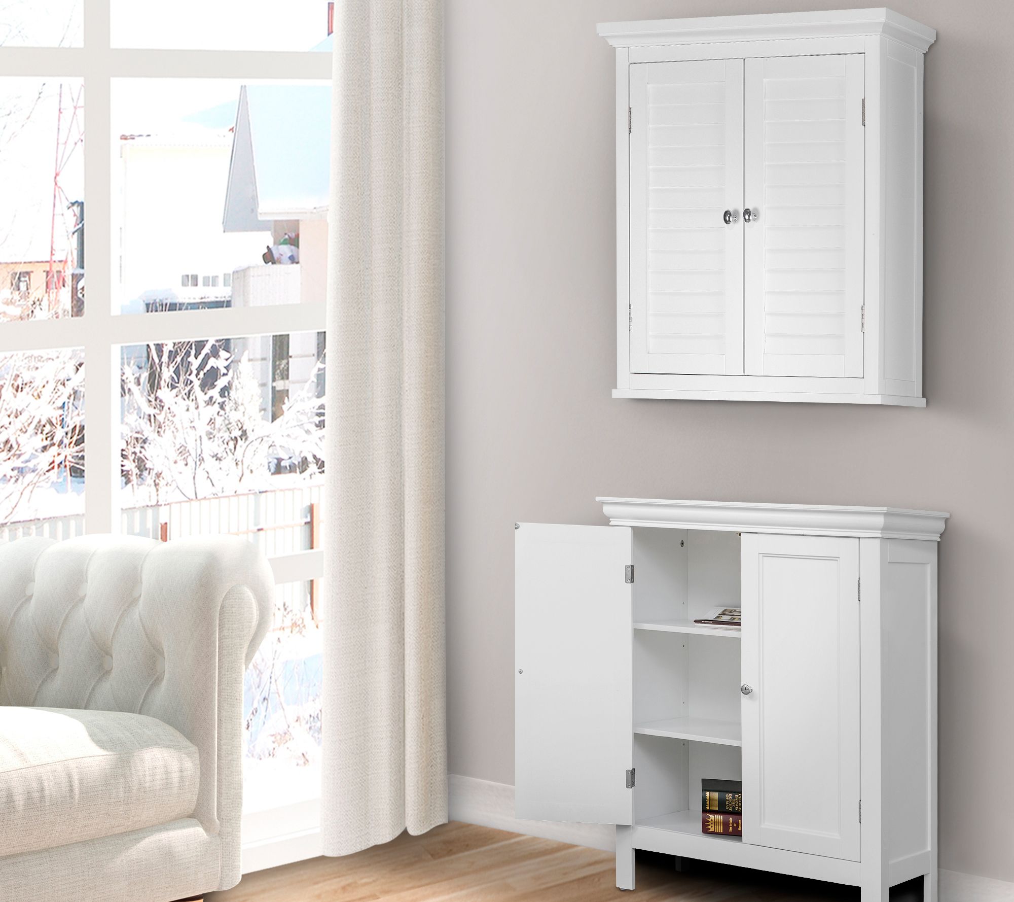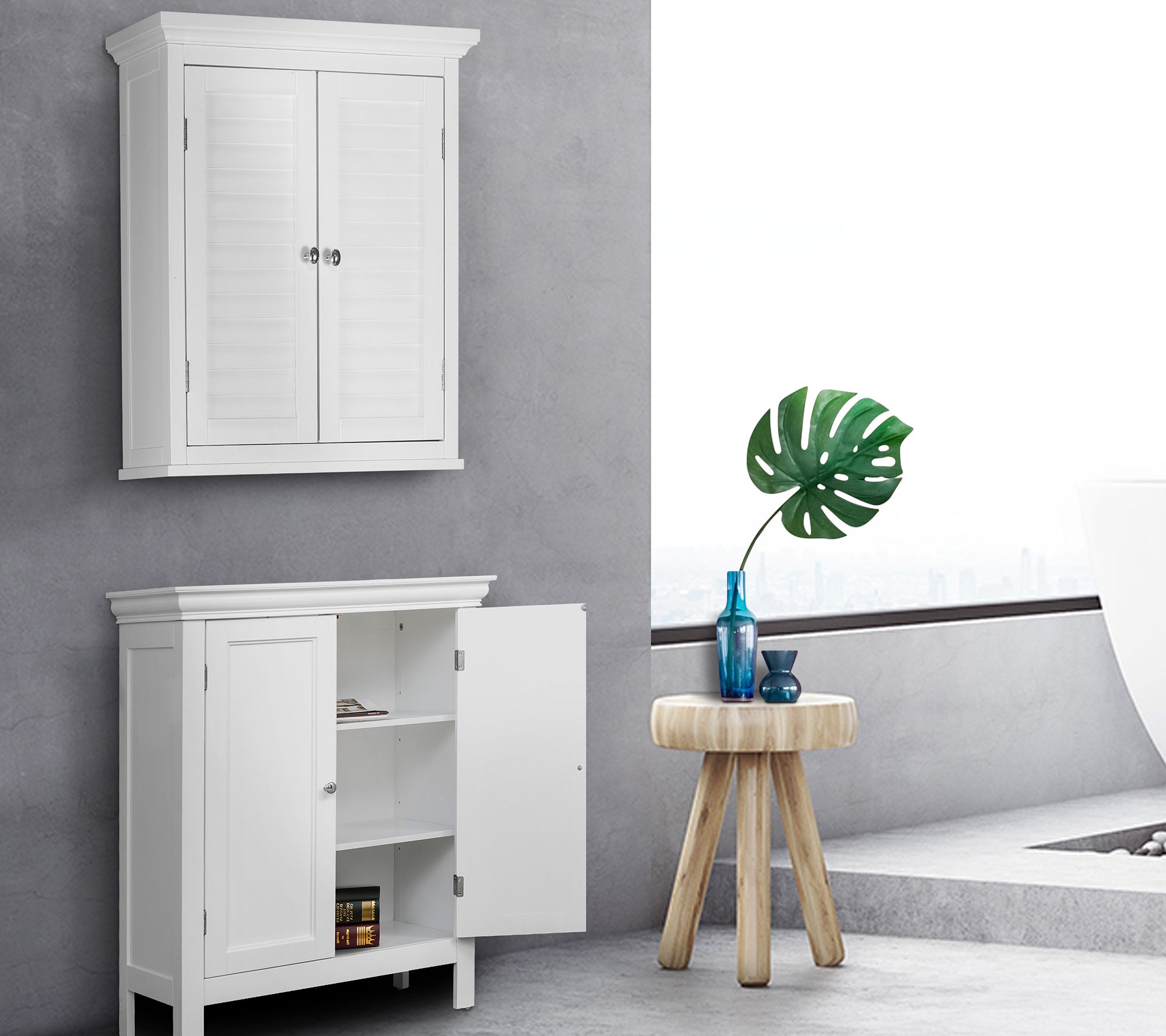 Timeless and elegant, this wooden wall cabinet adds the finishing touch to any bathroom. Equipped with louvered doors and an interior shelf, it offers plenty of room to store your toiletries, beauty supplies, and other essential items. From Teamson Home.