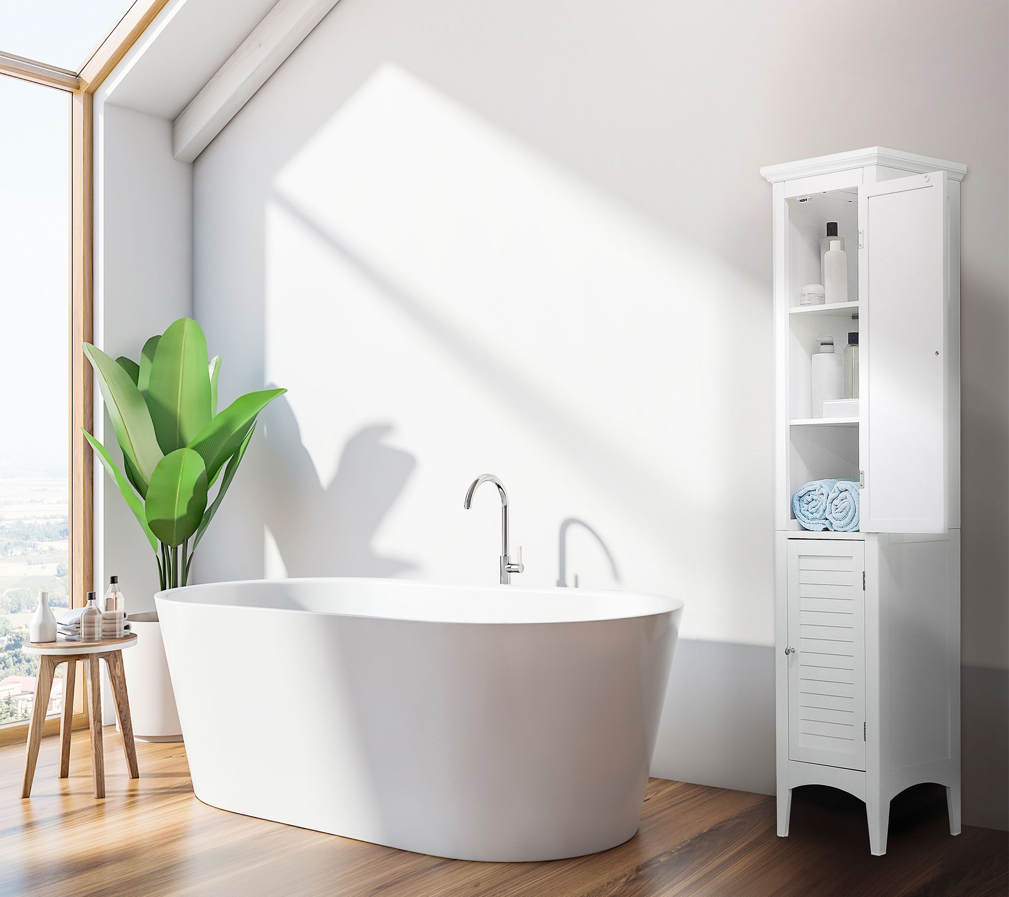 Fill your space with practical charm when you add this tower storage cabinet. Thoughtfully designed with shelves and doors, it's a versatile accent piece that's as beautiful as it is functional. From Teamson Home.