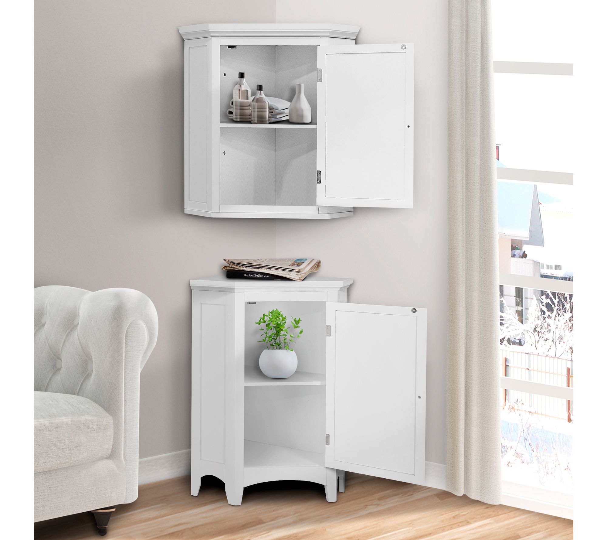 Maximize your space with the help of this wooden corner stand floor cabinet. Thoughtfully designed with a shelf and drawer, it's a versatile accent piece that's as beautiful as it is functional. From Teamson Home.