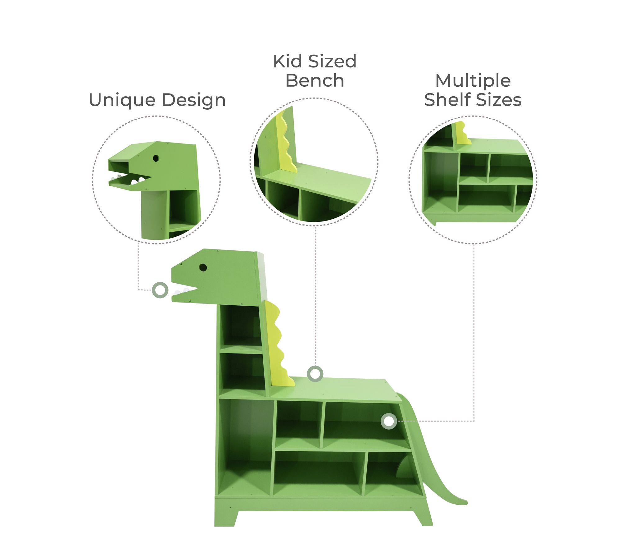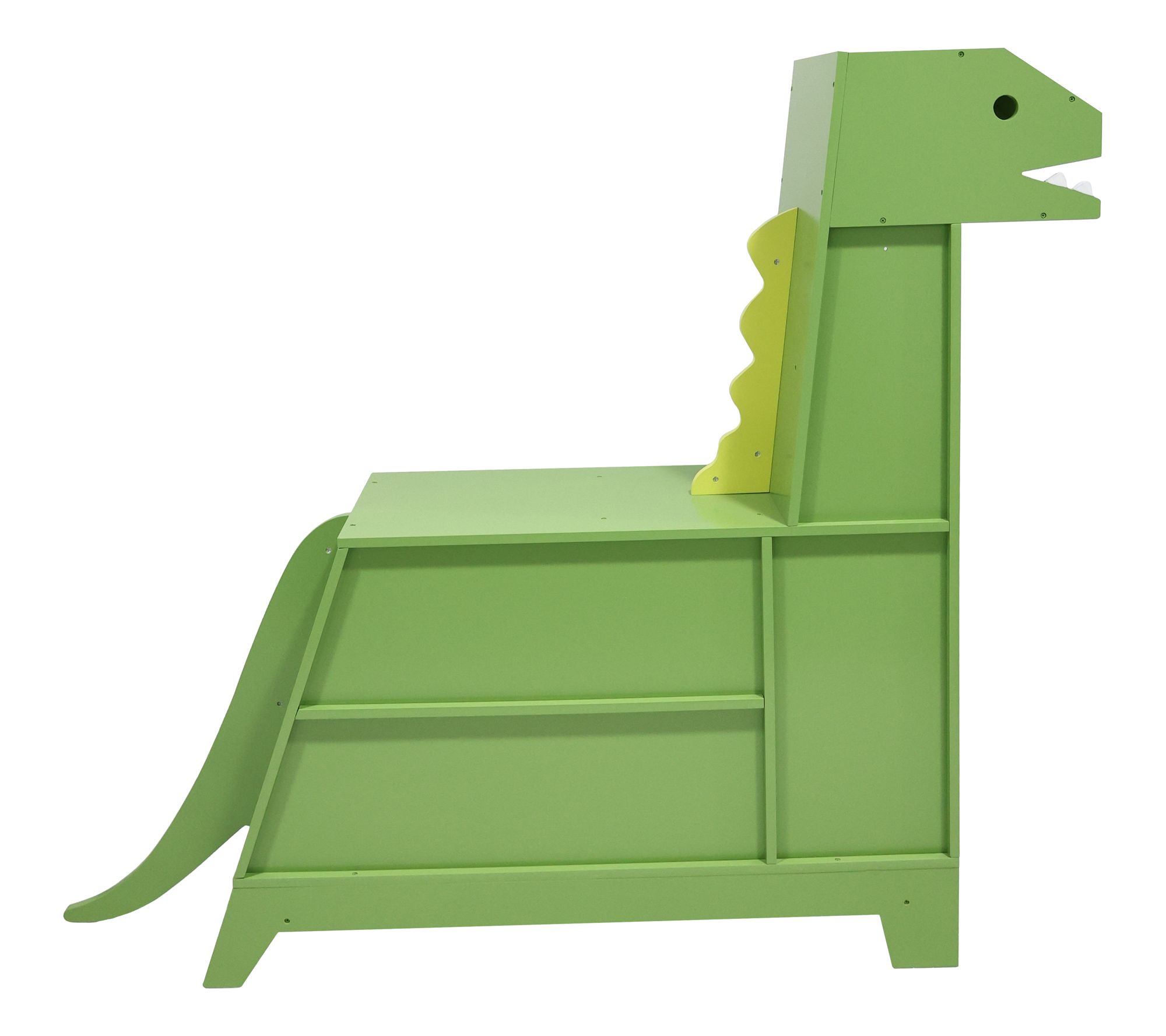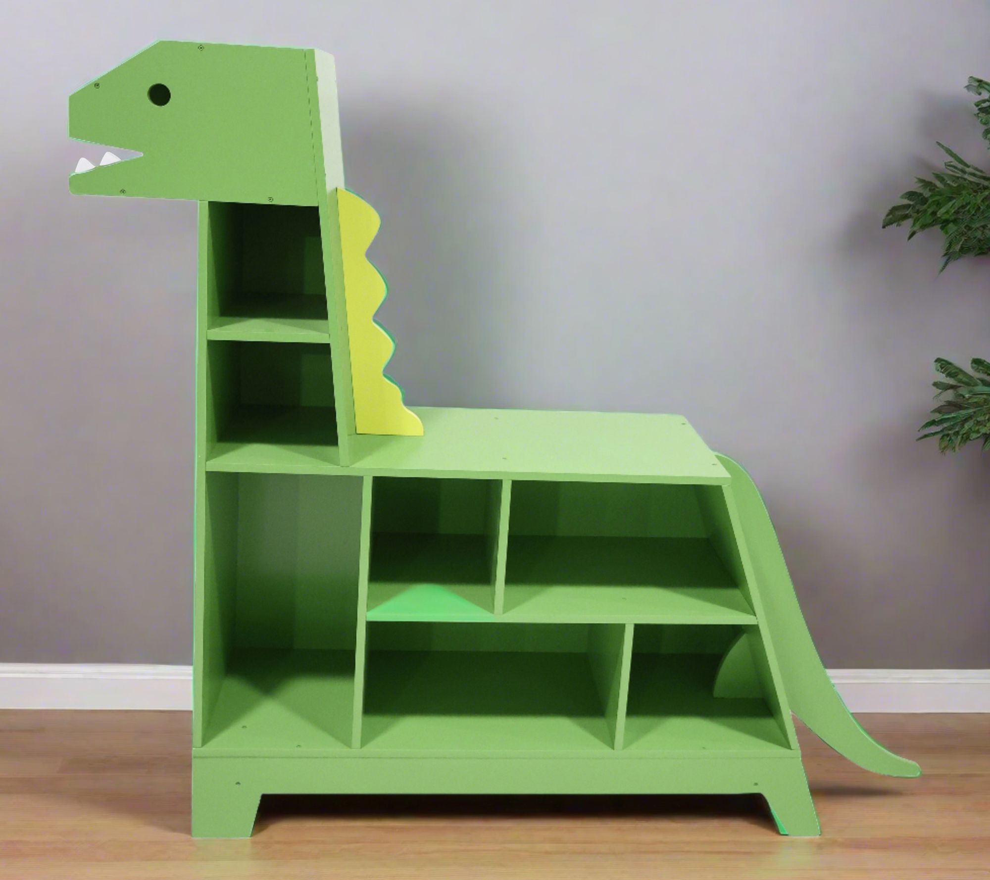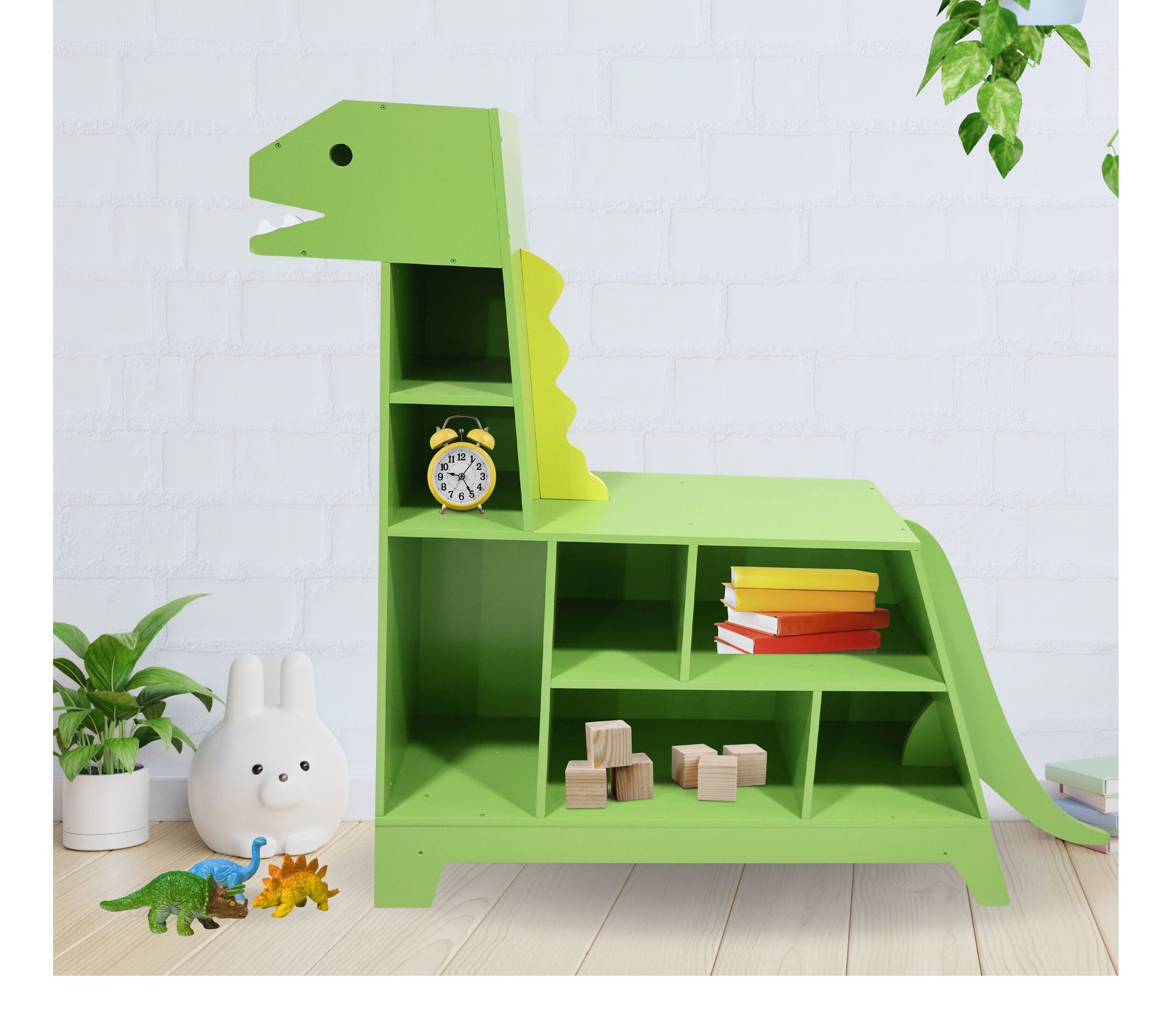 Turn your child's room into a prehistoric paradise with the Teamson Kids dinosaur-shaped bookcase. This playful green dinosaur not only adds a whimsical touch to any space but also doubles as a functional bookcase and toy organizer. With assorted compartments in its body and neck, it keeps toys tidy and is sturdy enough for toddlers to sit on its back for a comfy reading spot. From Teamson Kids.