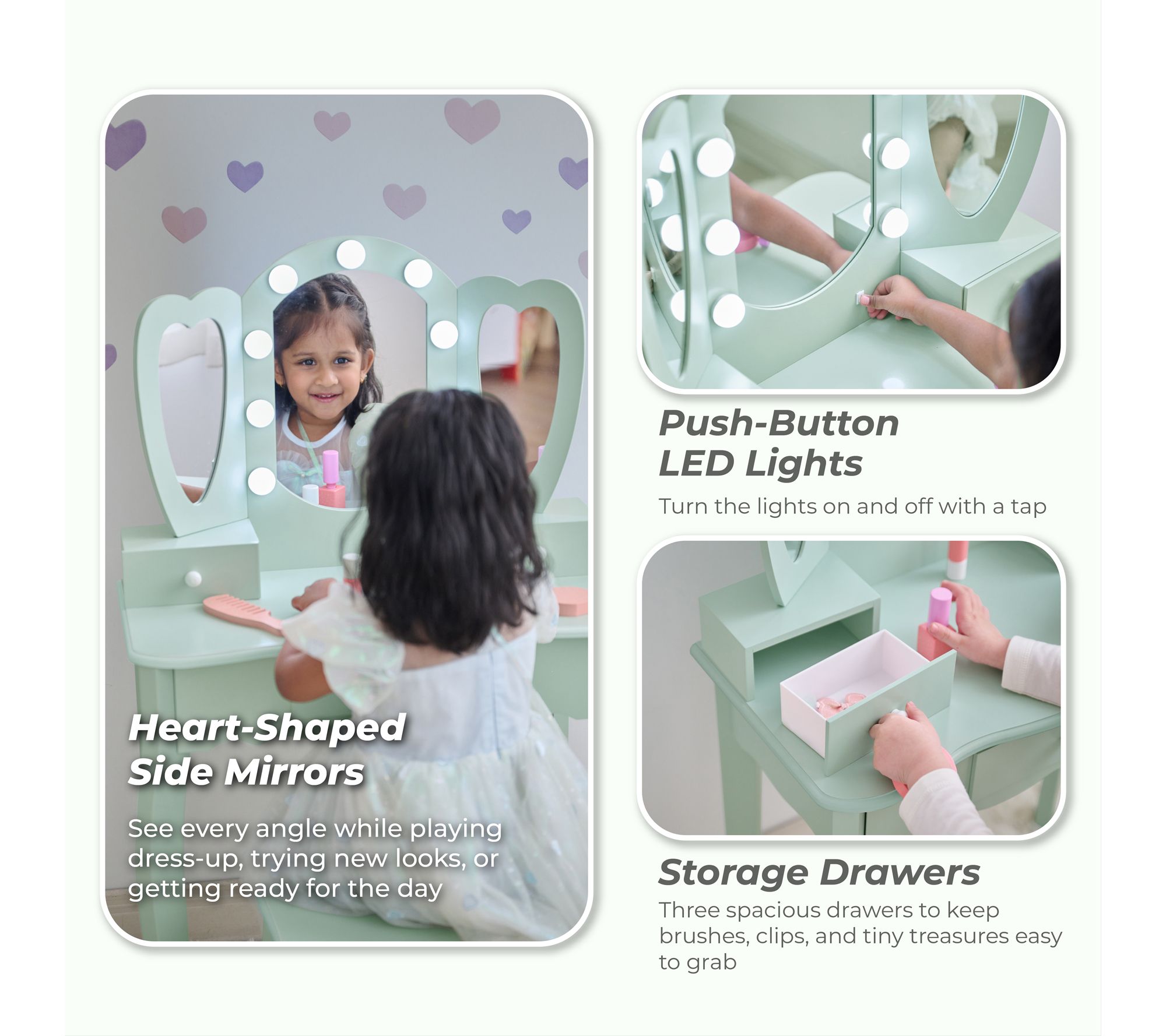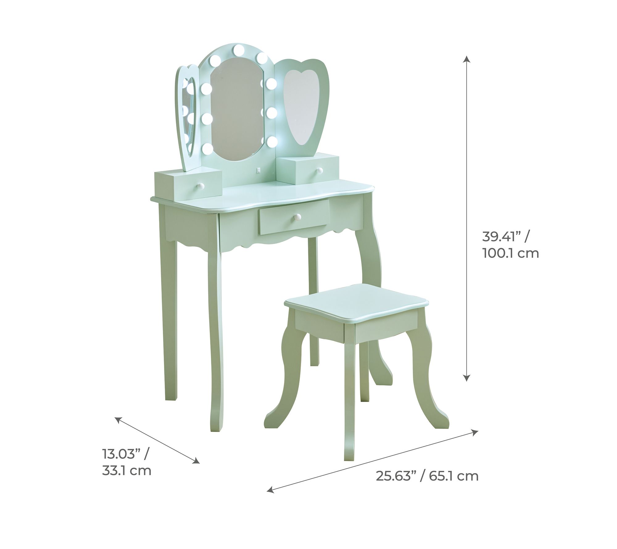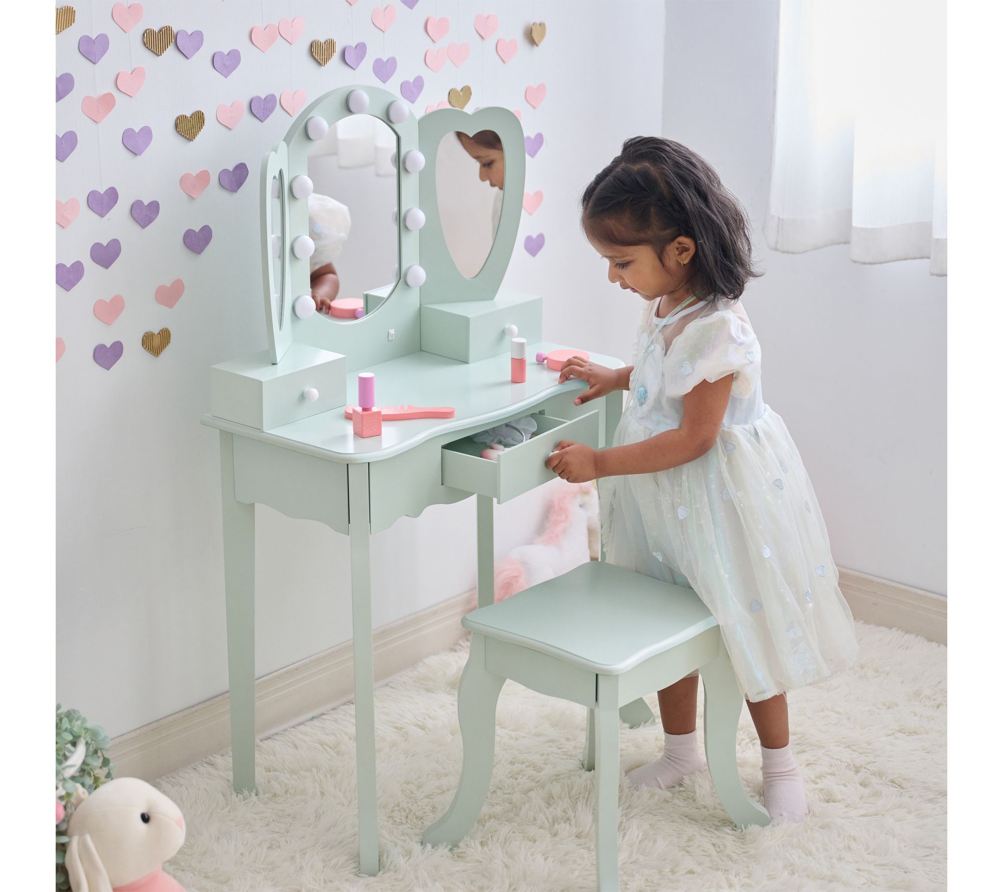 Teamson Kids Heart Glow Wooden Vanity Set with LED Lights