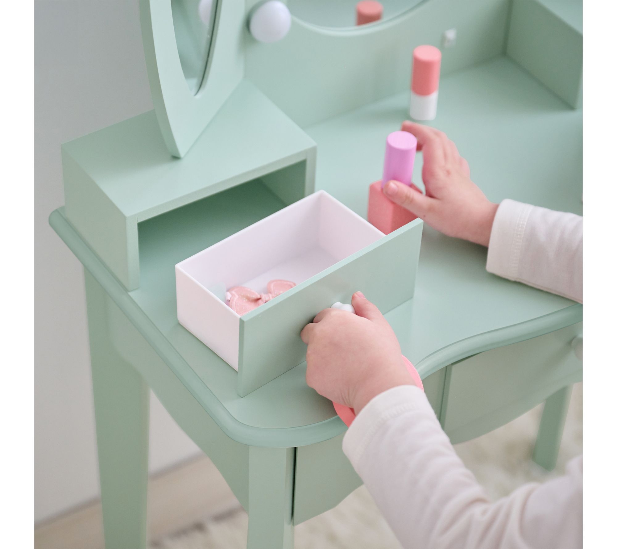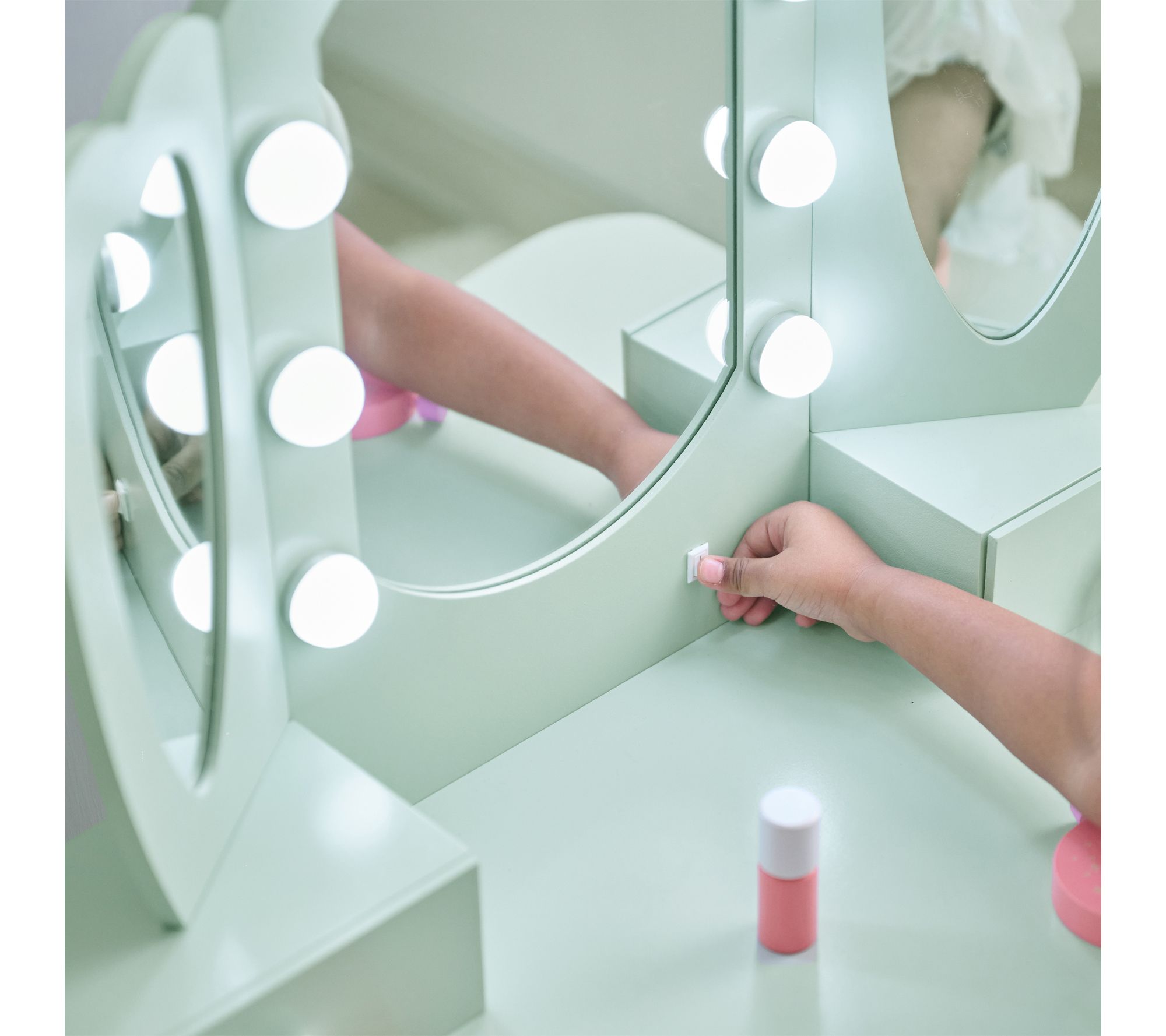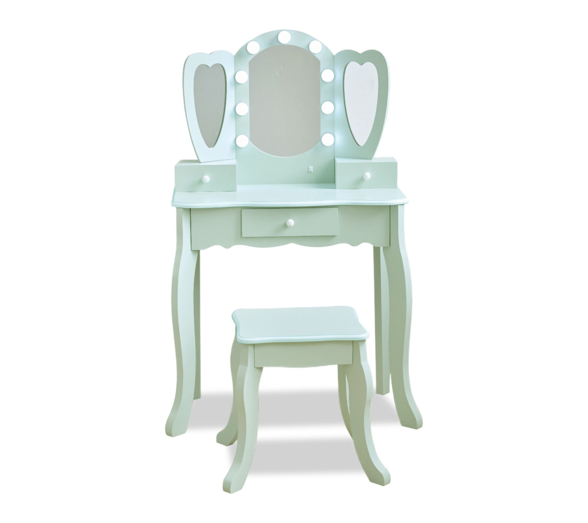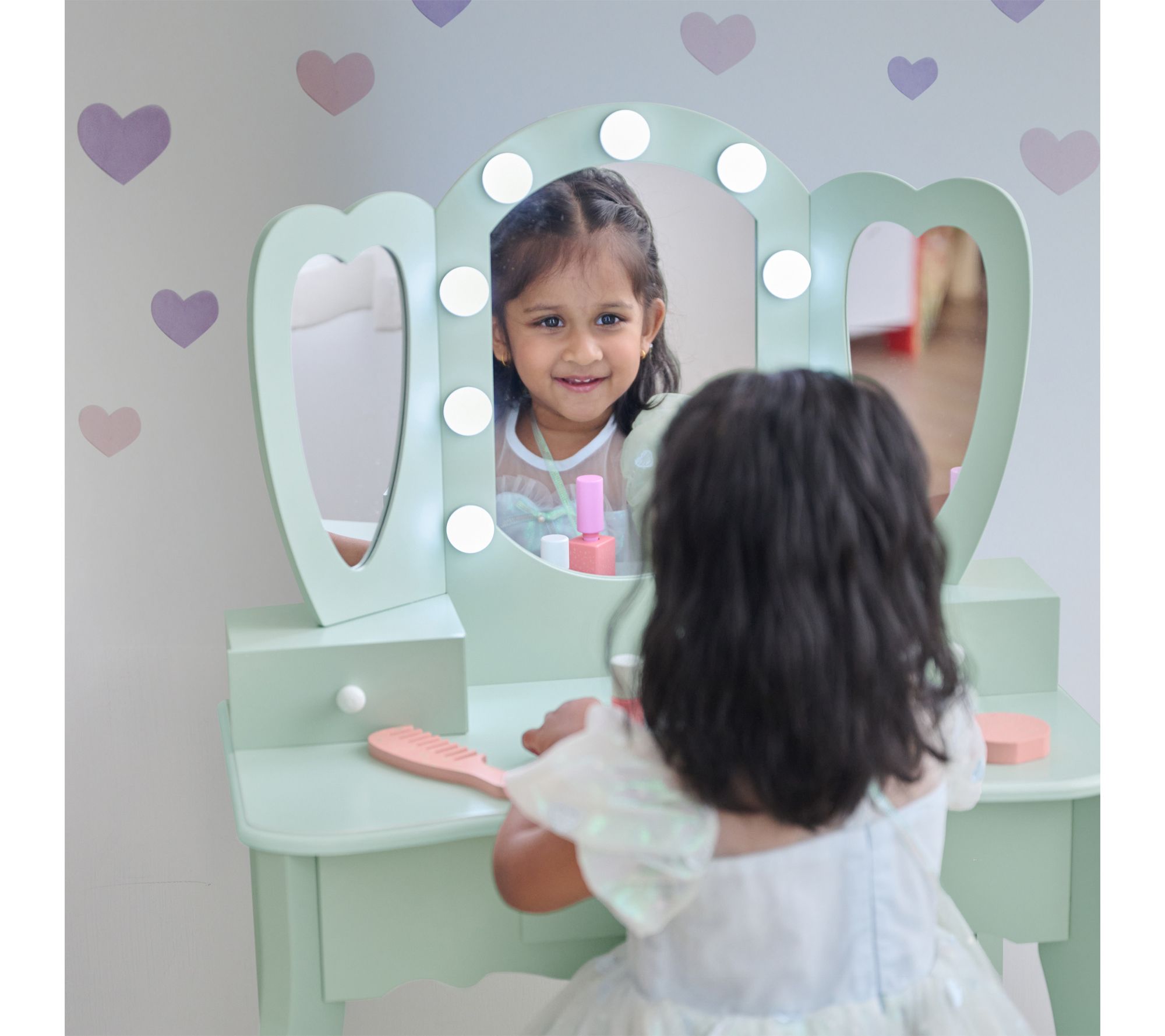 Little ones can get ready for the day or play dress-up in style with this wooden vanity set, complete with a heart-shaped mirror and glowing LED lights. The charming design creates a delightful spot for creative play, while the sturdy table and matching stool invite hours of imaginative fun. From Teamson Kids.