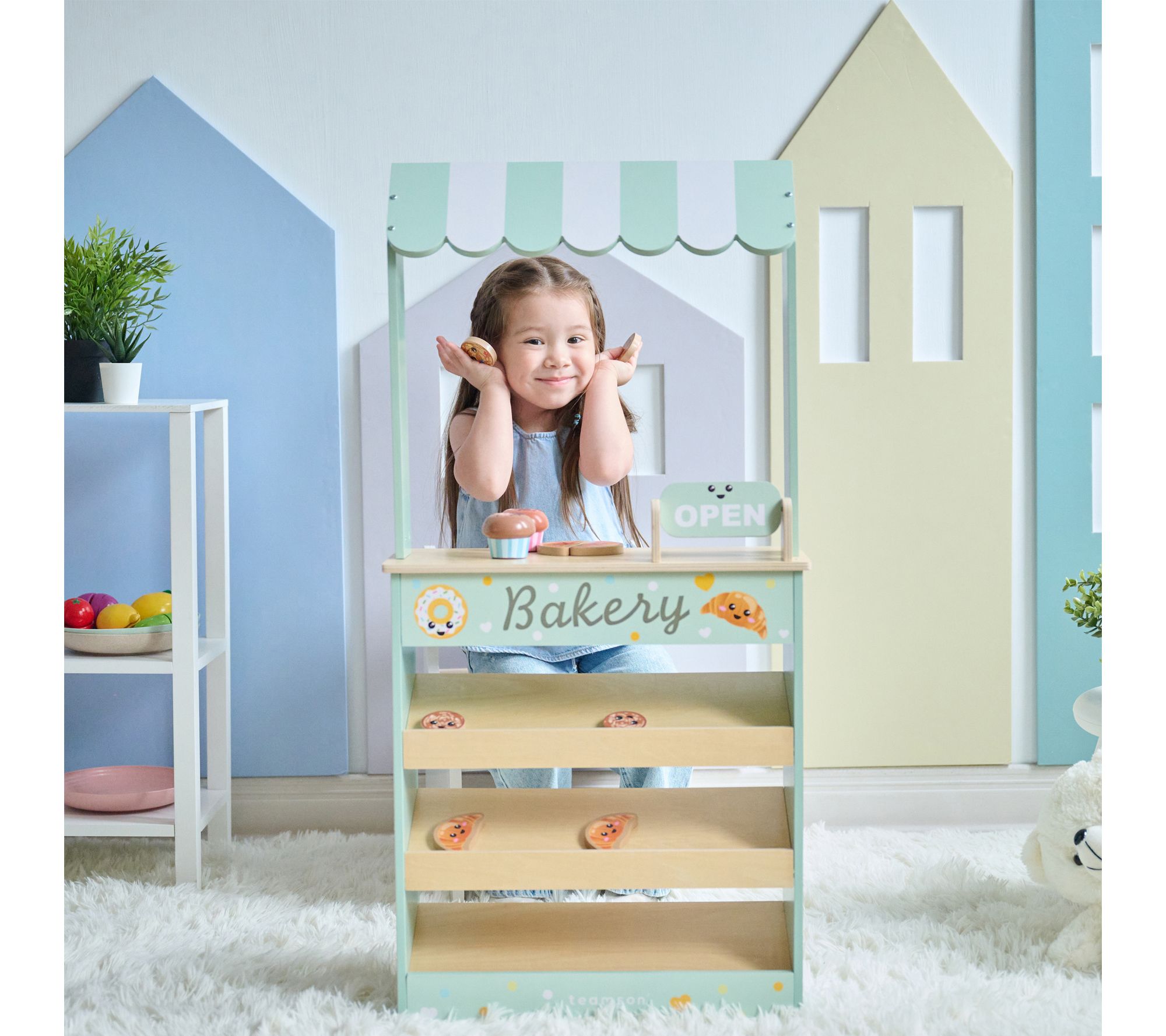 Teamson Kids Jolly Pals Wooden Bakery Stand with Pastries