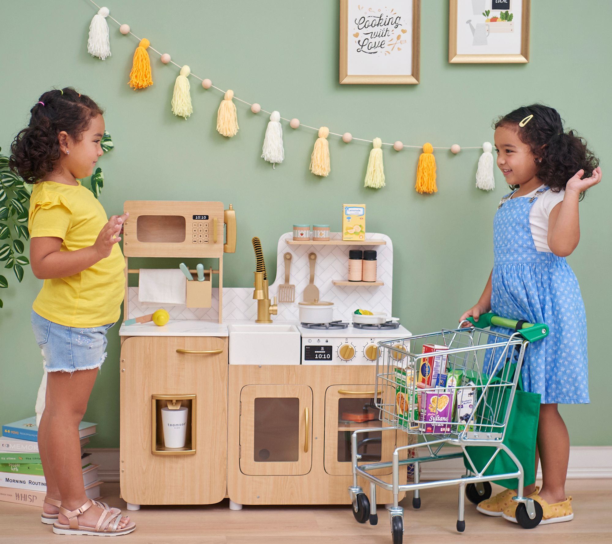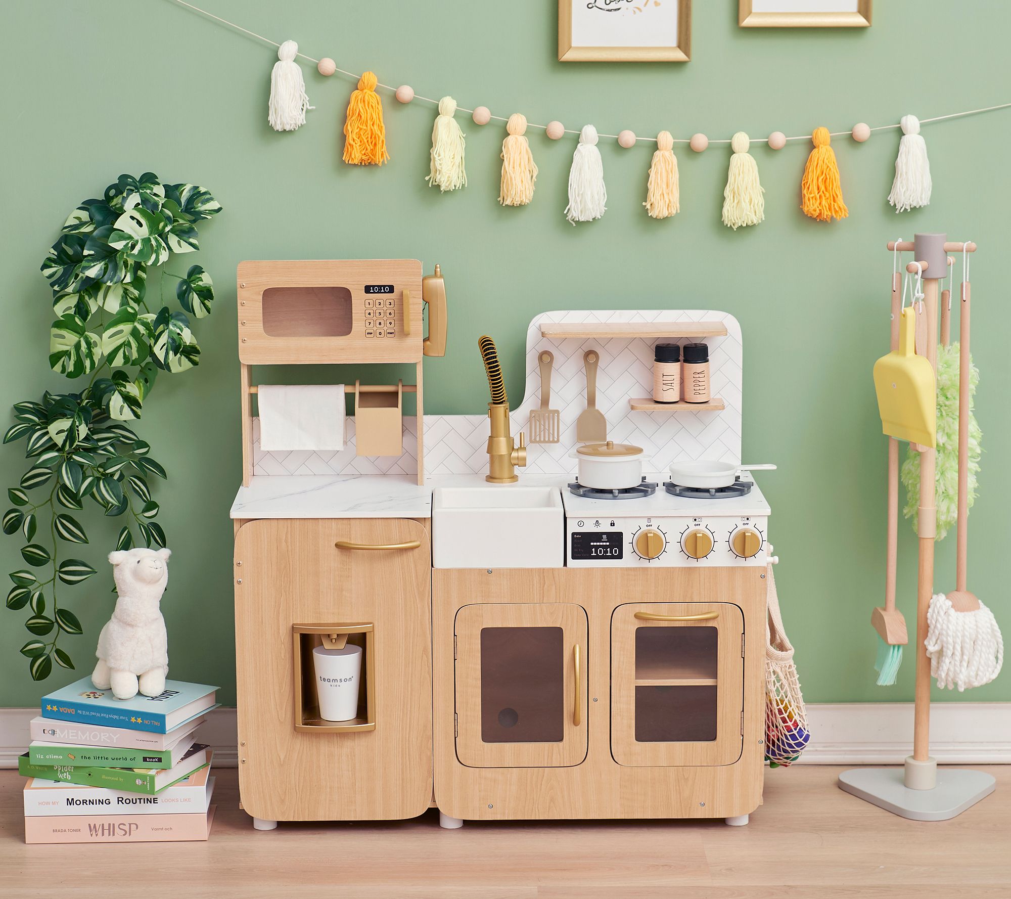 Perfect for little chefs, the Cyprus play kitchen features pretend appliances and tools that make it easy to whip up delicious make-believe masterpieces. From Teamson Kids.