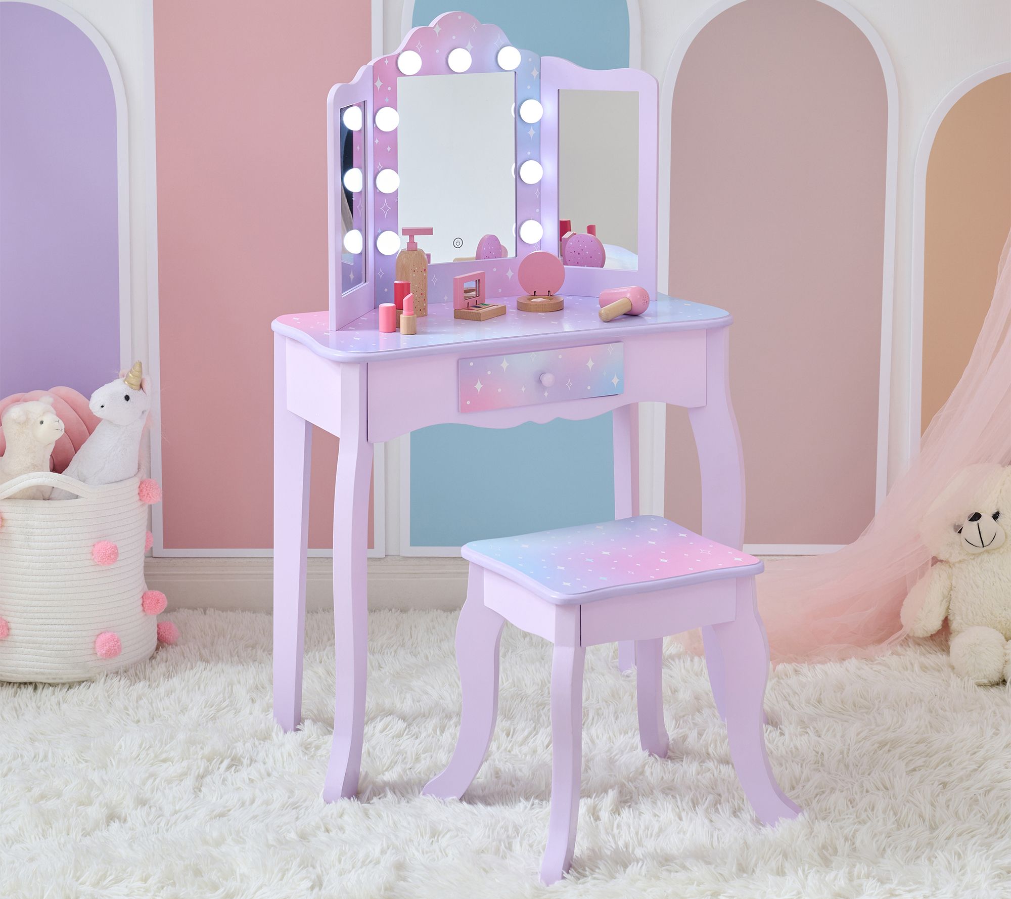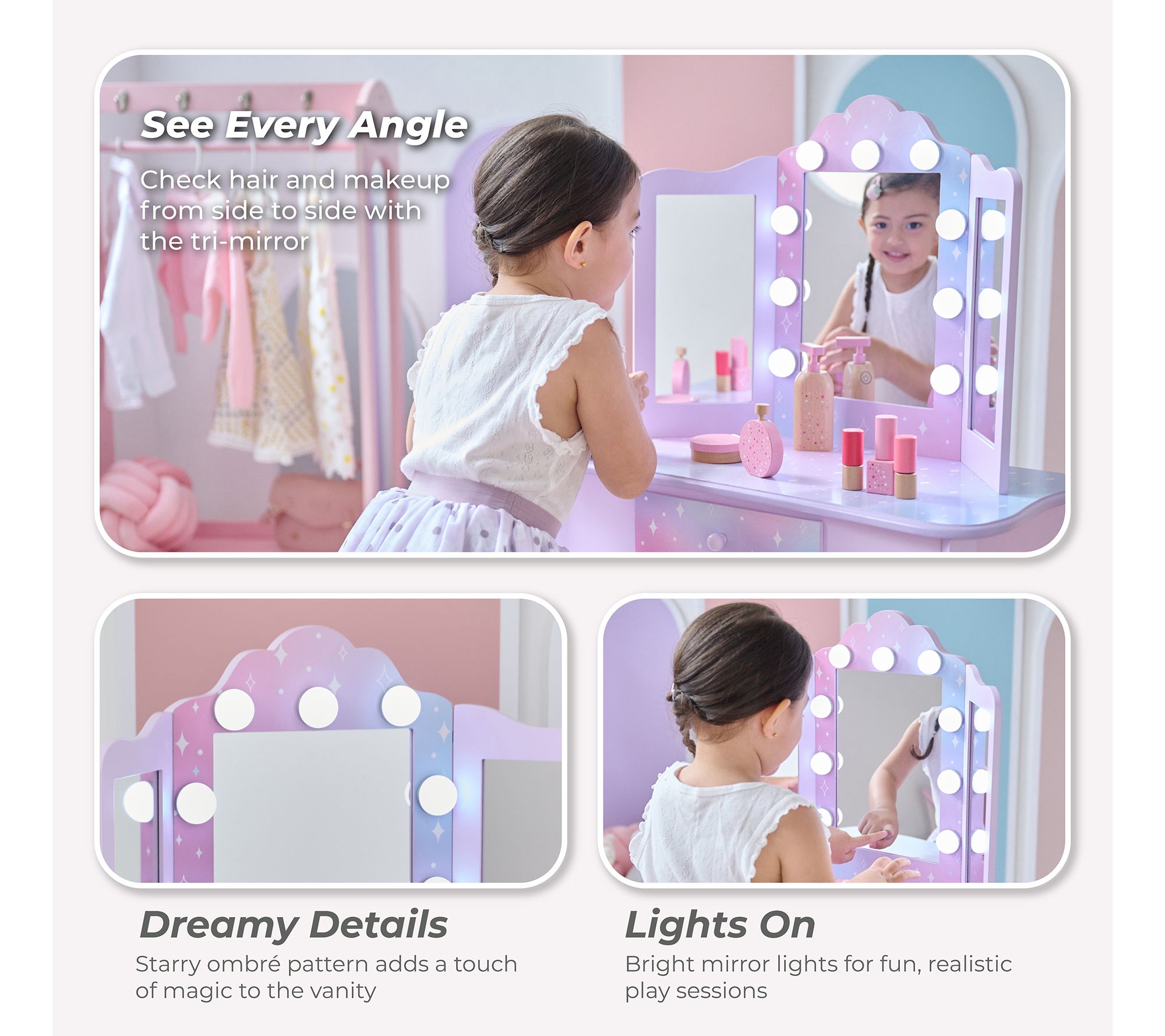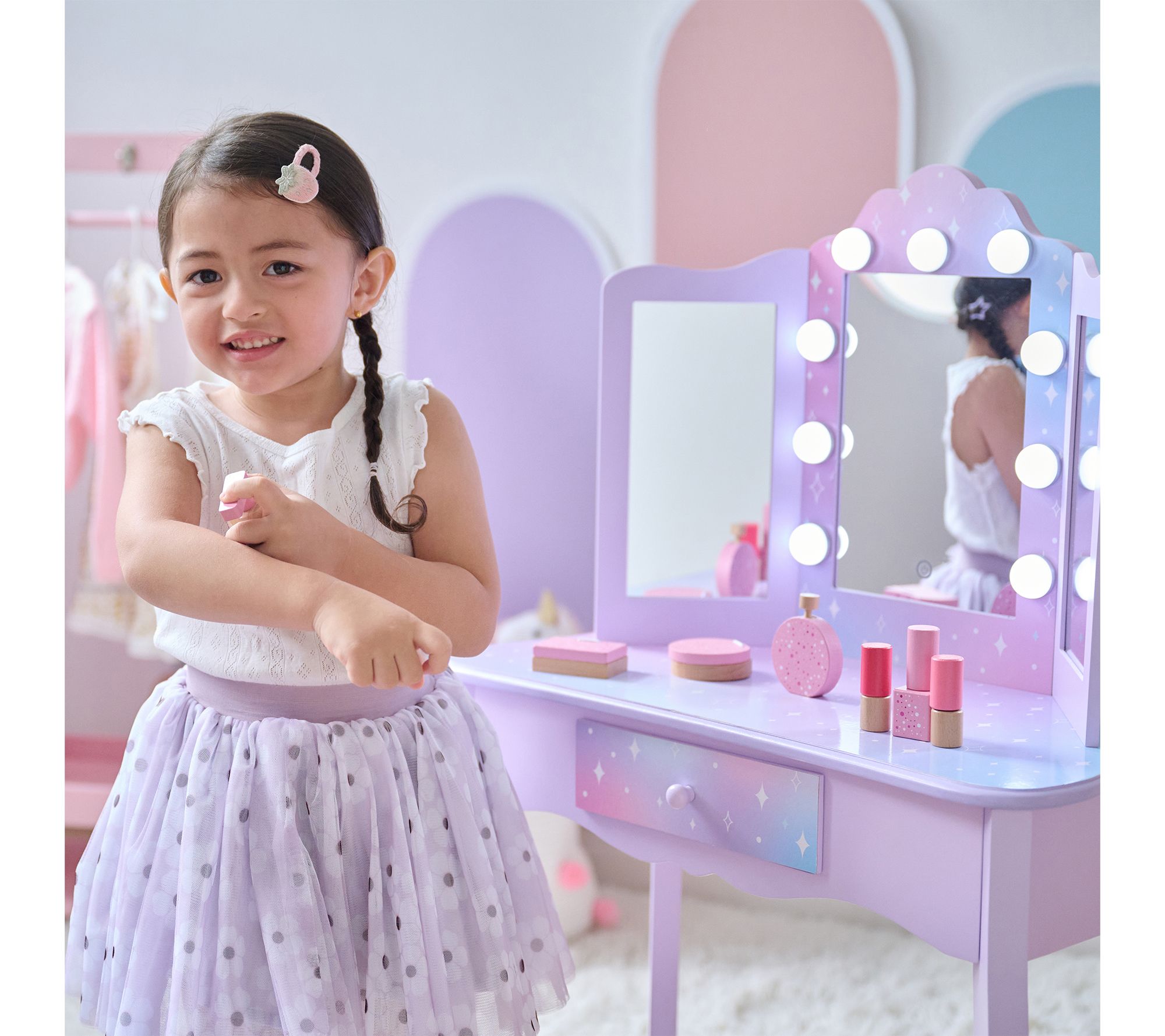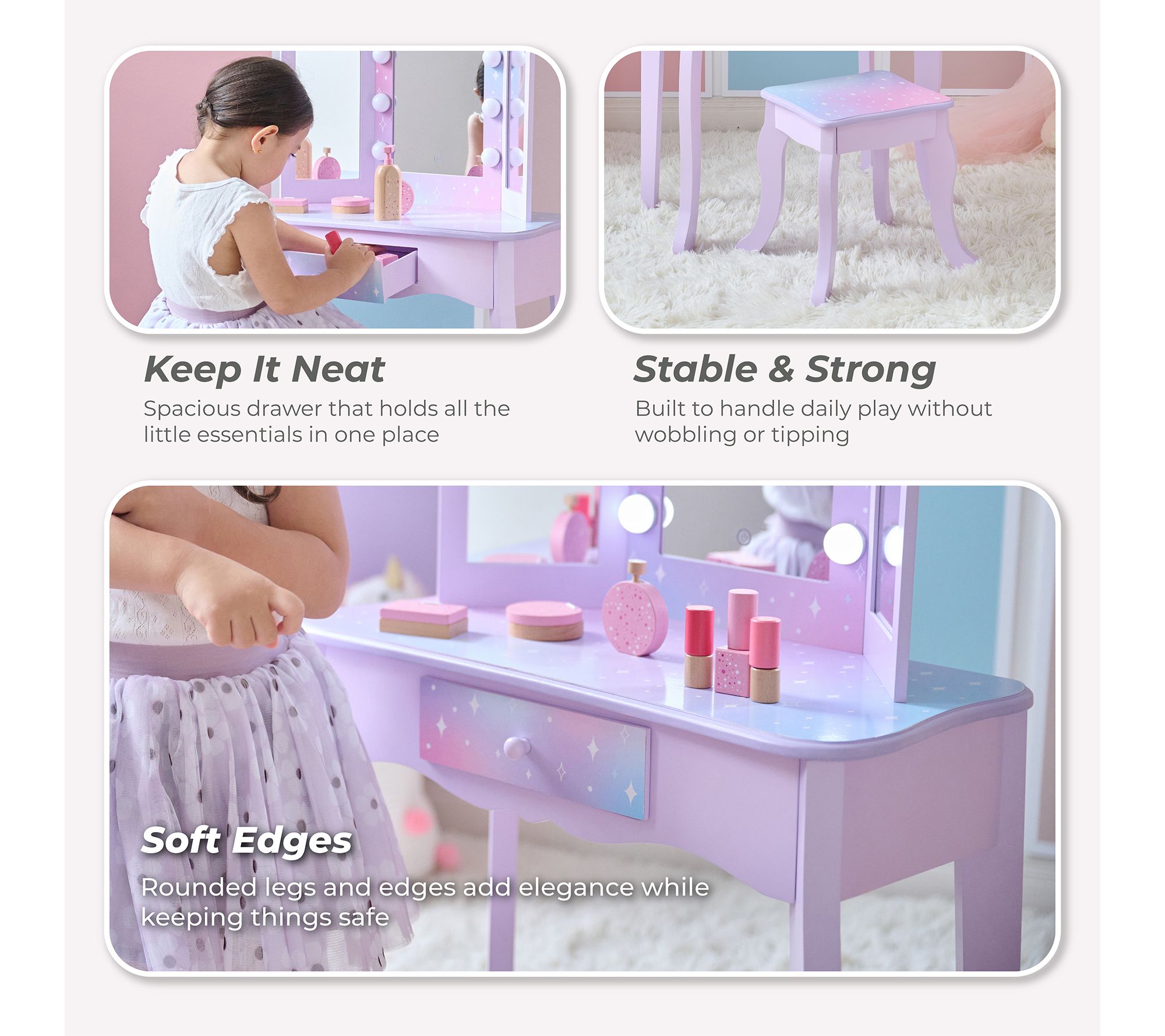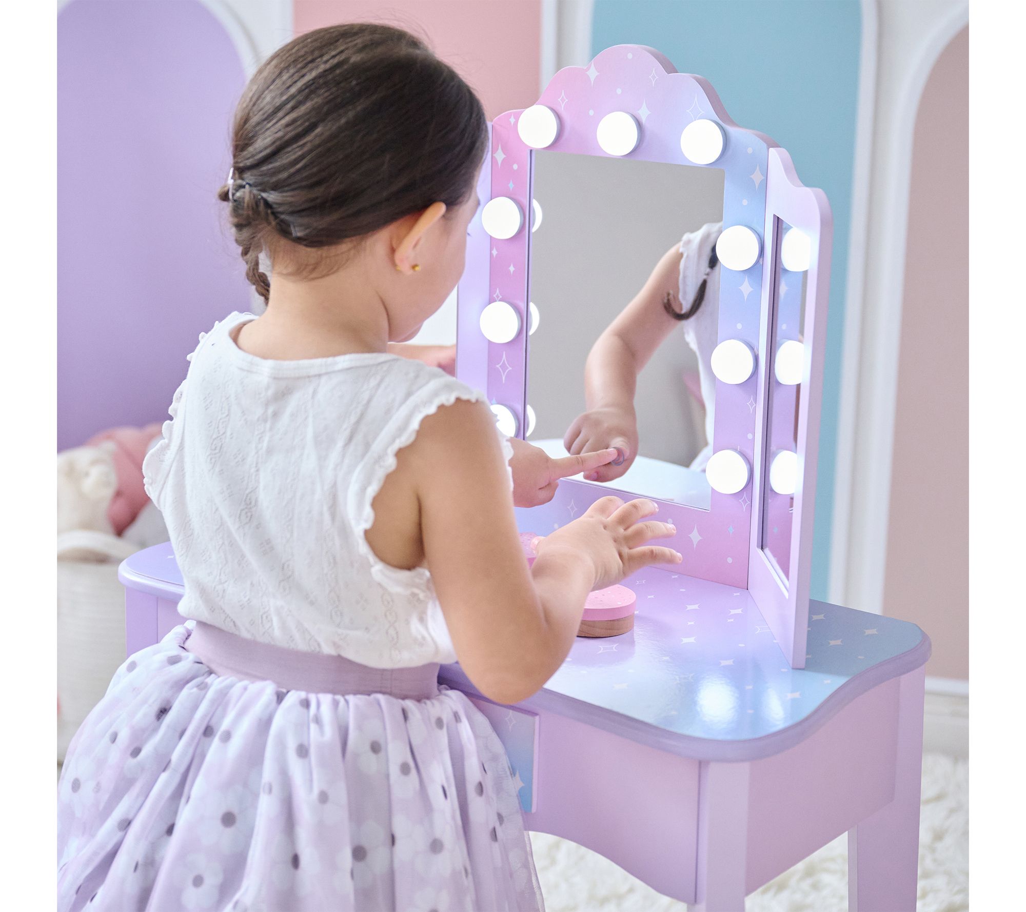 Teamson Kids Stardust Gisele Wood Vanity Tablewith LED Mirror