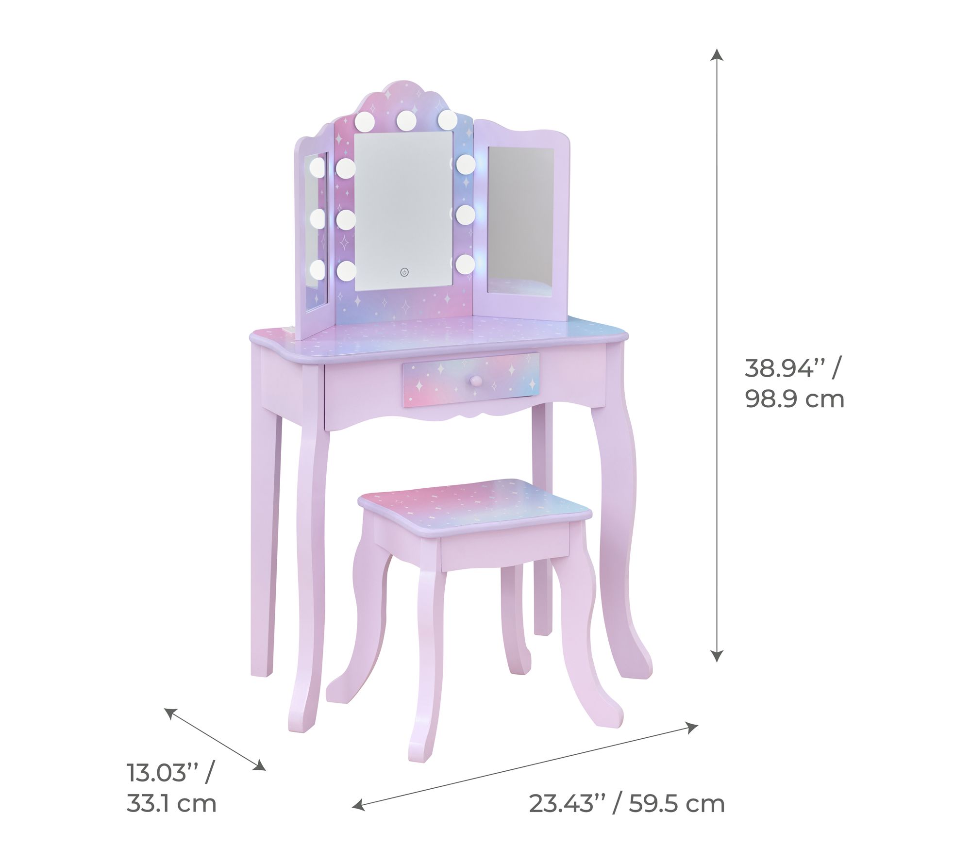 • Includes vanity table and stool