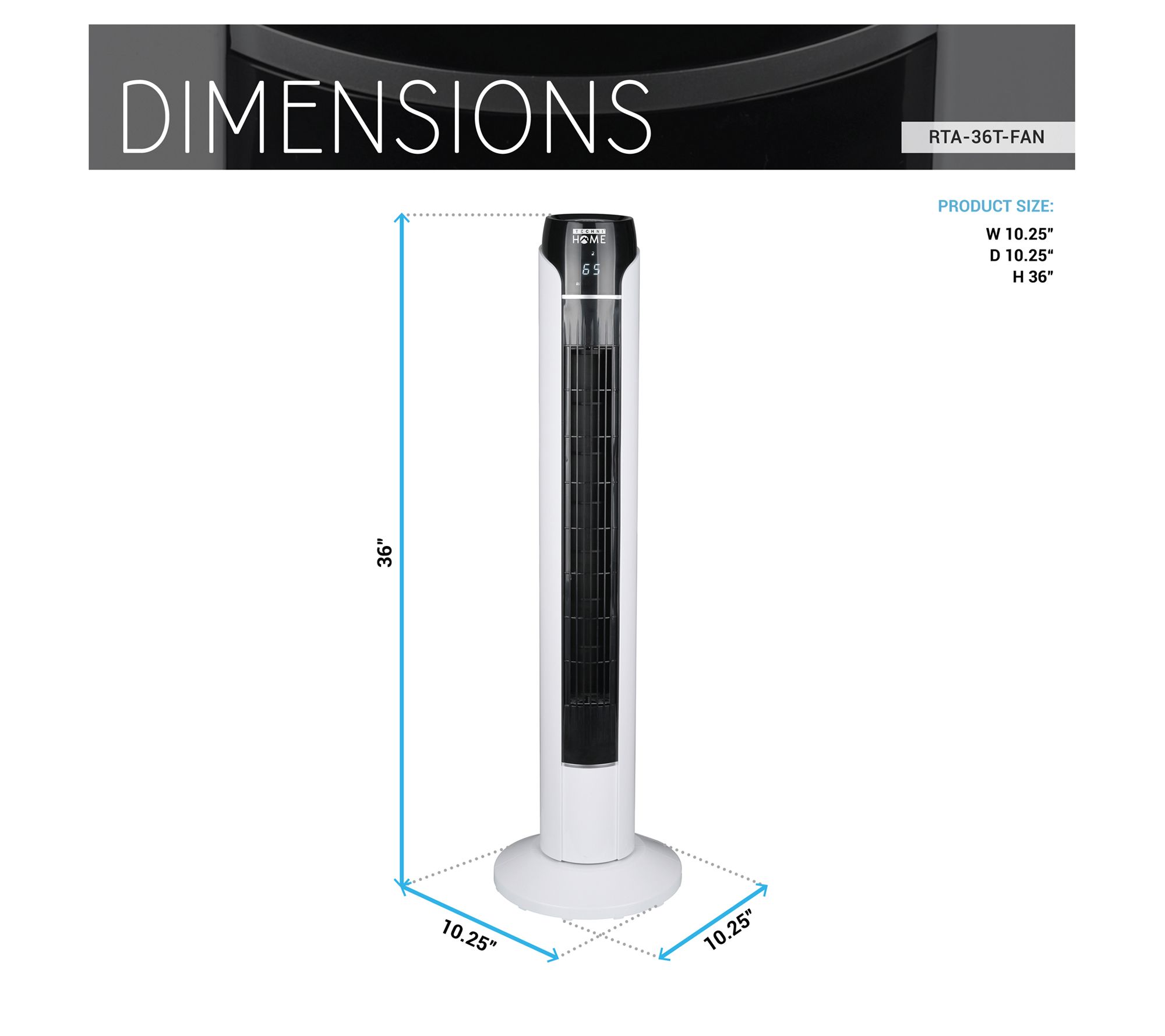 Techni Home 36" Tower Fan 3 Wind Speeds Modes WRemote Control