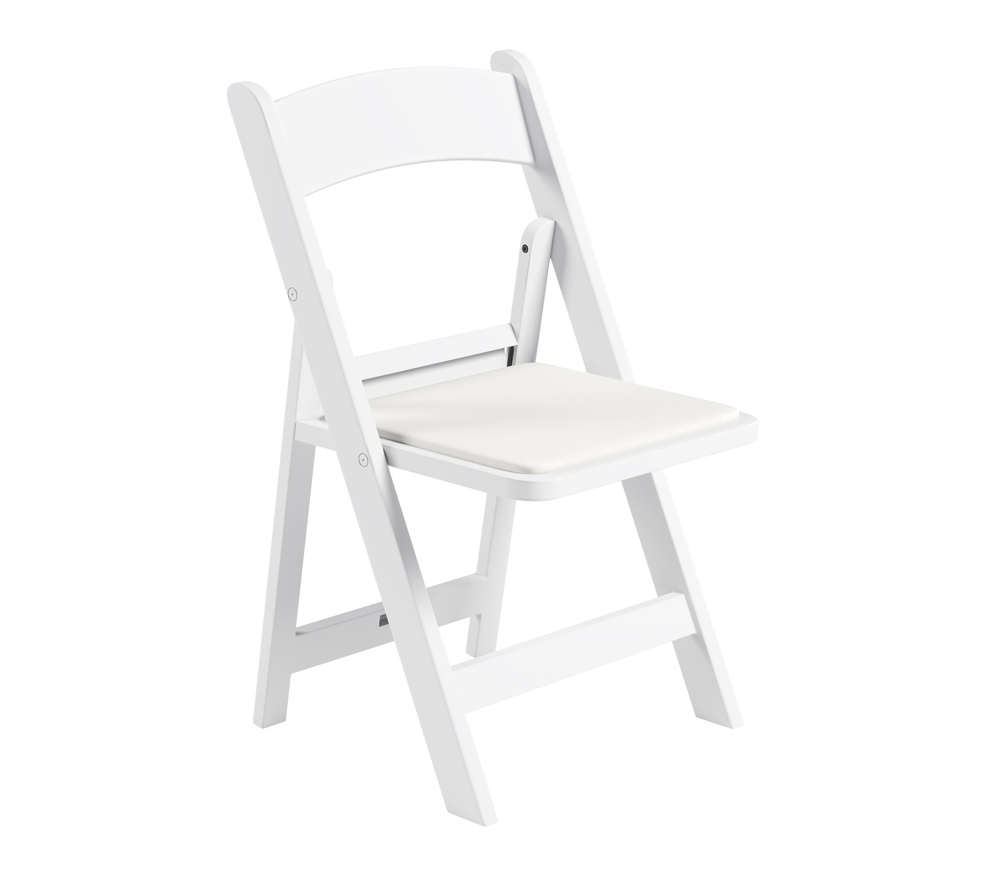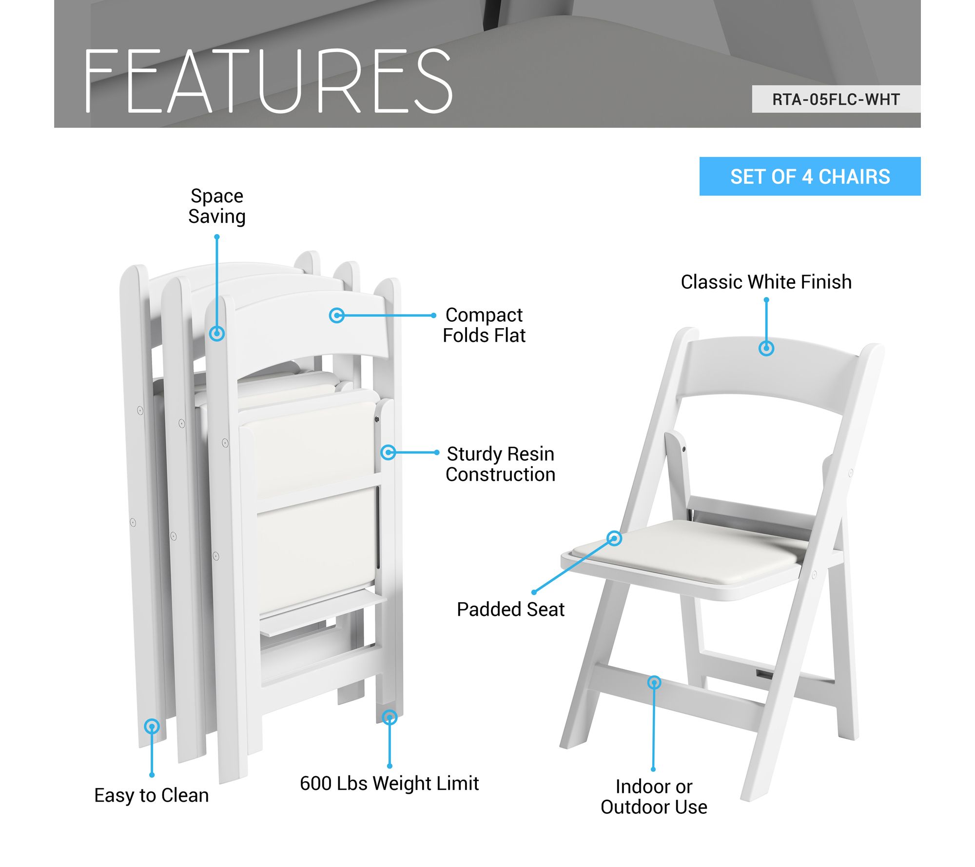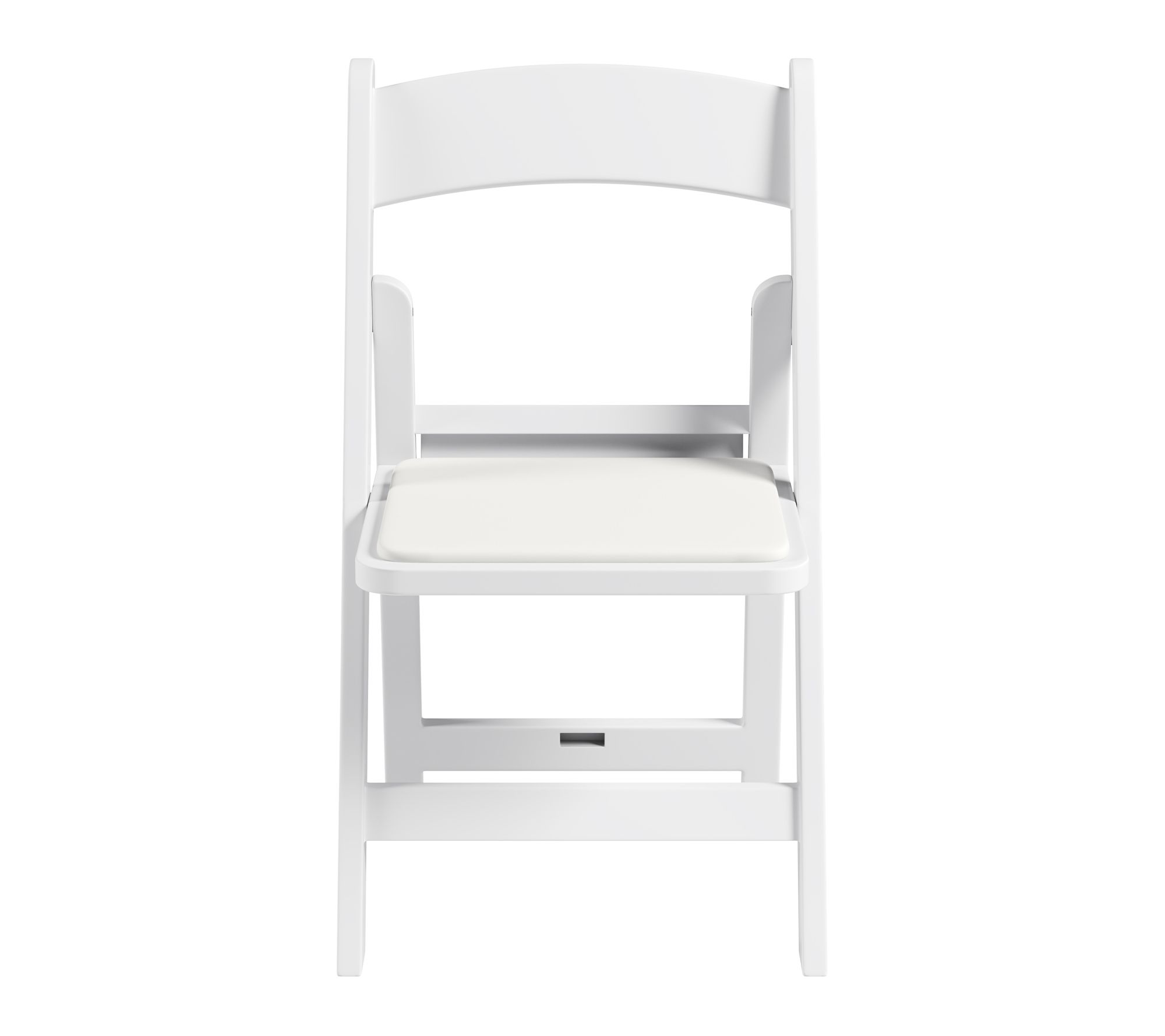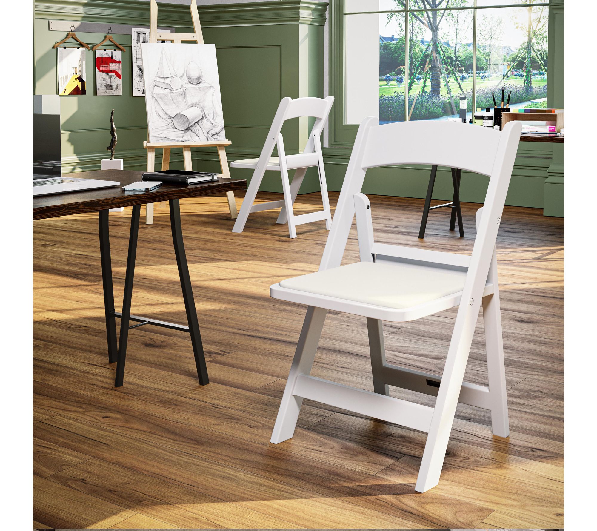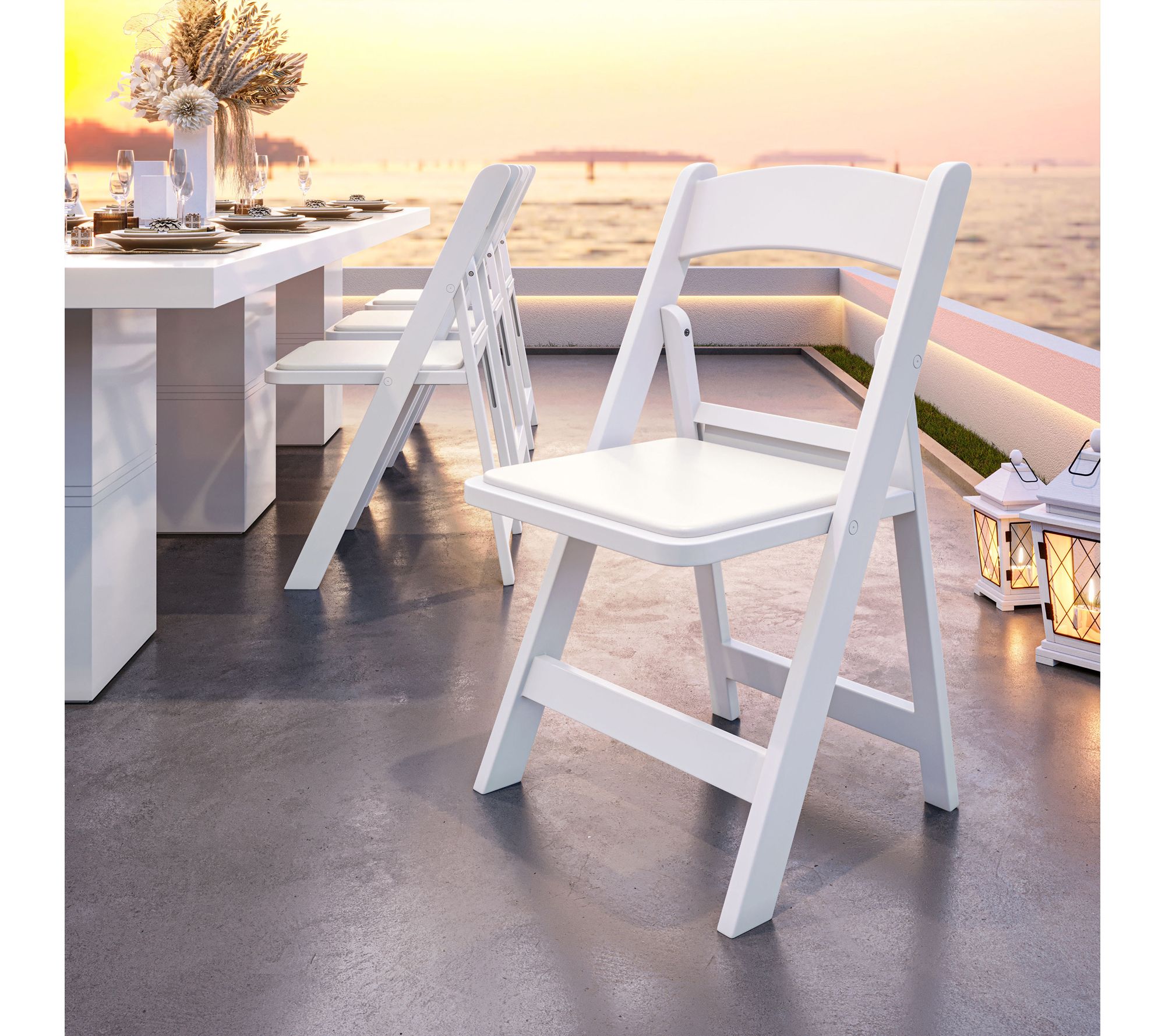 Bring comfort and style to your special gatherings with a set of folding chairs that combines a crisp white resin finish and padded seating designed for all-day enjoyment. Effortlessly transition from backyard barbecues to elegant receptions, thanks to durable construction and a fold-flat design that makes storing and transporting these seats incredibly simple. From Techni Home.