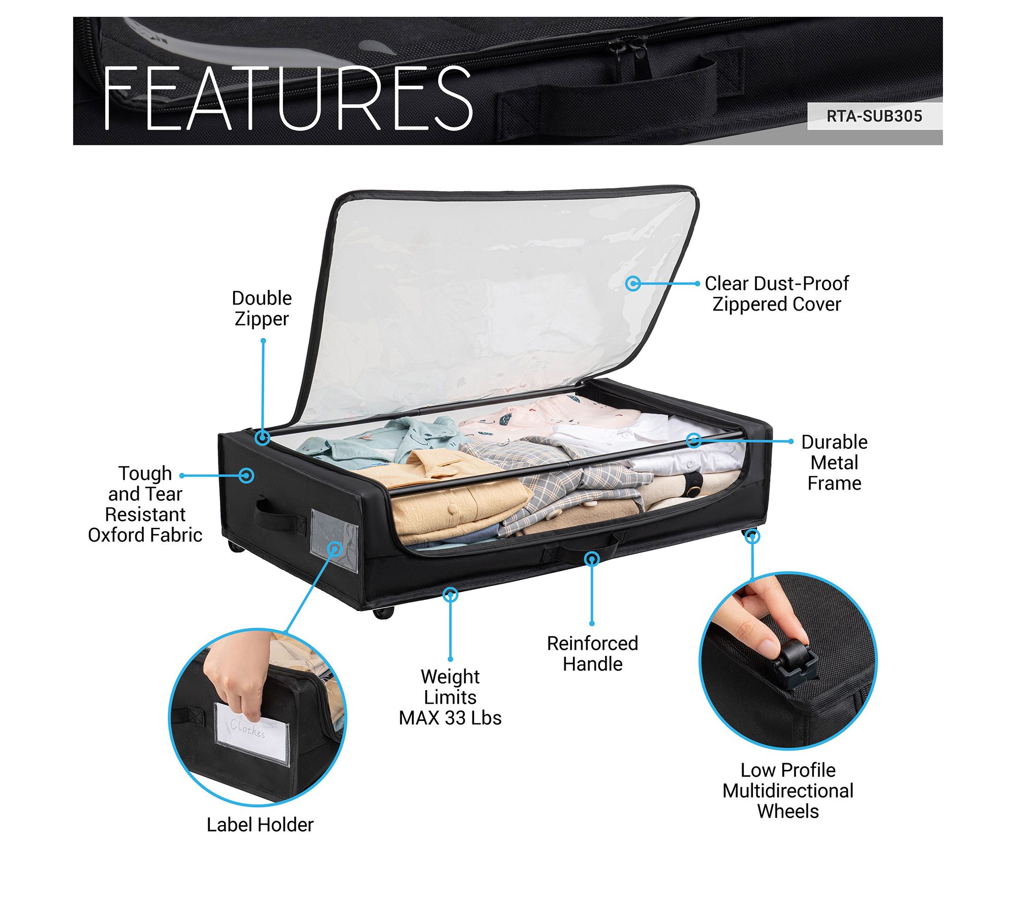 Keeping extra bedding, shoes, or seasonal clothes out of sight is simple when storage rolls freely beneath your bed. Thanks to the clear zippered lid, you can see exactly what's inside before you even open it -- no more searching for the right bin. The sturdy frame and reinforced handles make for easy assembly and access, helping you tidy up the mess and reclaim your space. From Techni Home.