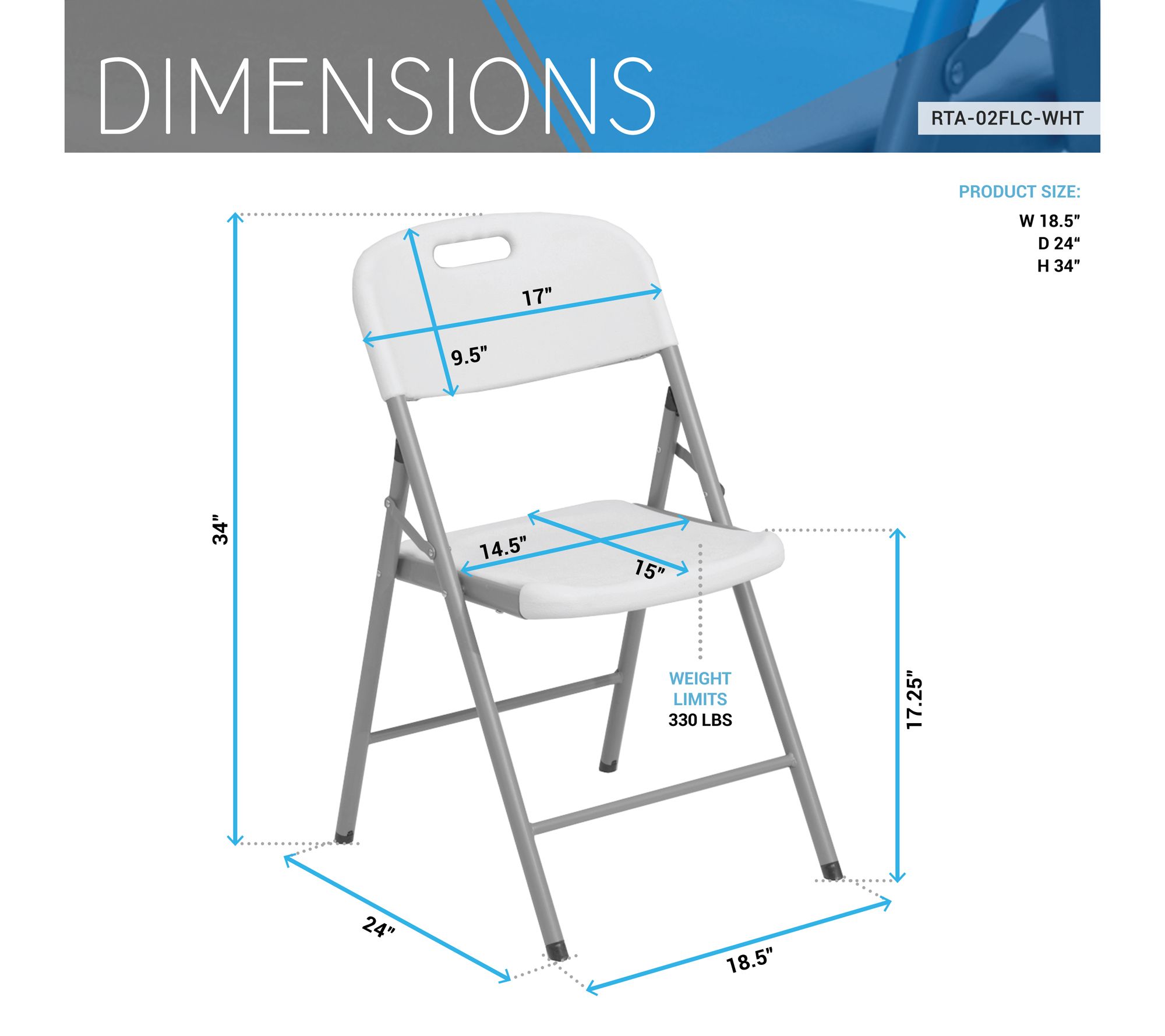 • Measures approximately 18.5"W x 24"D x 34"H; weight capacity 330 lbs