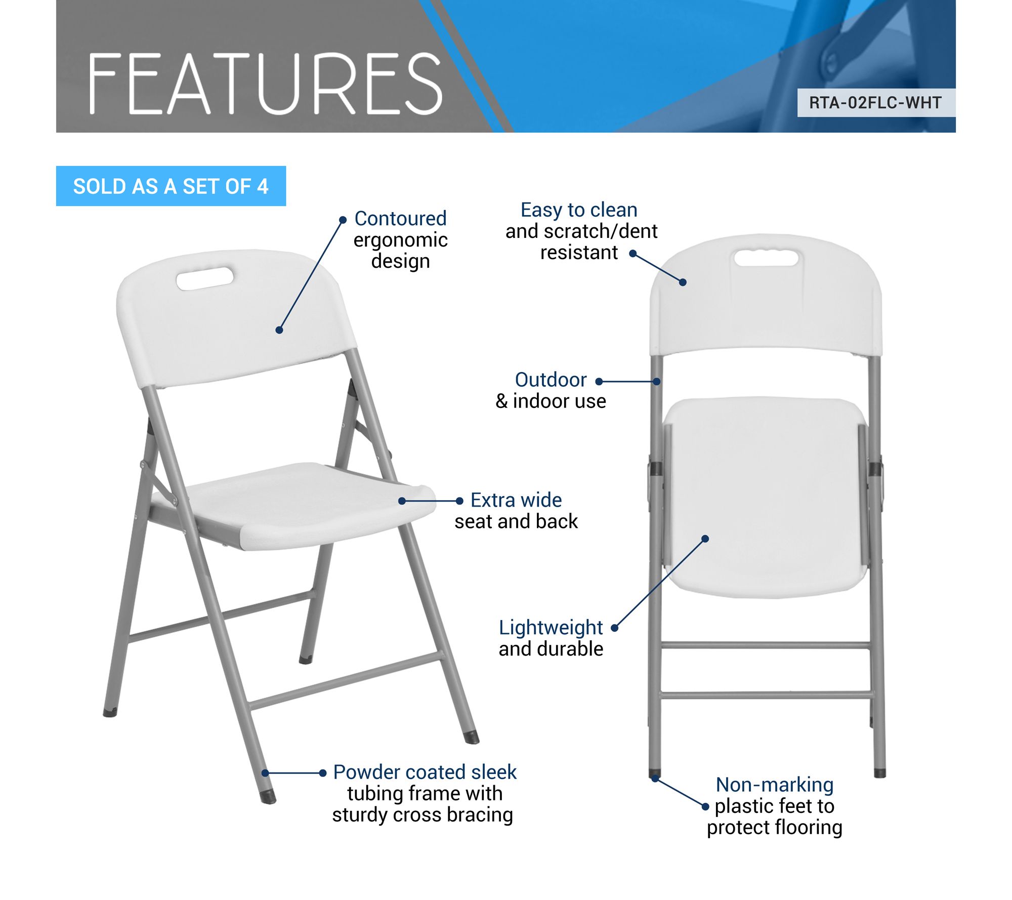 Elevate your seating solutions with the Techni Home set of four granite white folding chairs. Designed for ultimate comfort and durability, these chairs feature an extra-wide seat and back, crafted from lightweight yet sturdy high-density polyethylene. Perfect for various events, they offer long-lasting support and are easy to clean. From Techni Home.