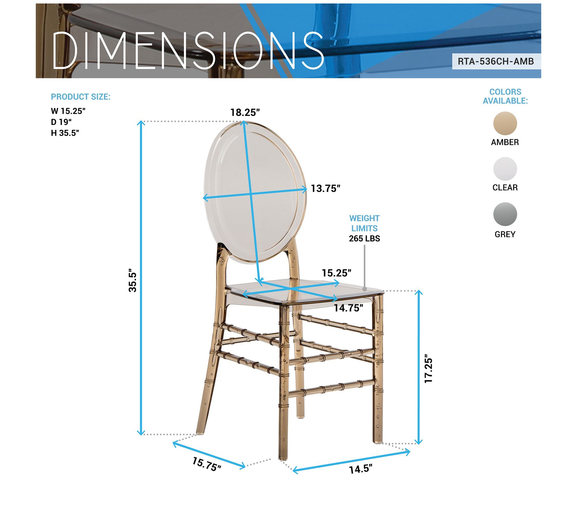 Elevate your events with the Techni Home set of four stackable ghost style acrylic chairs. Perfect for weddings, banquets, and business gatherings, these chairs offer timeless design with a contemporary twist, ensuring both functionality and style. Choose from clear, grey, or amber finishes to add a distinctive flair to your decor. From Techni Home