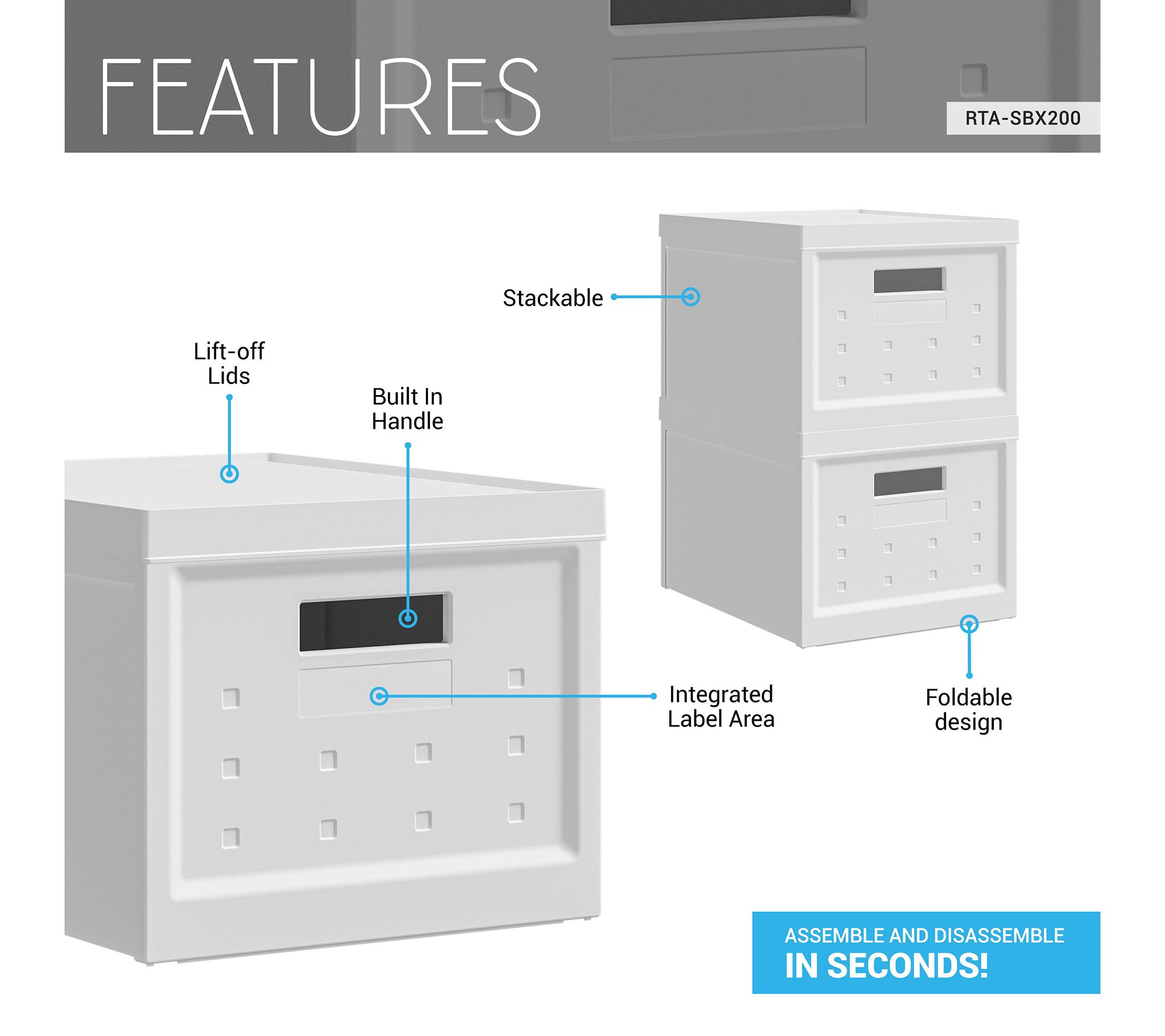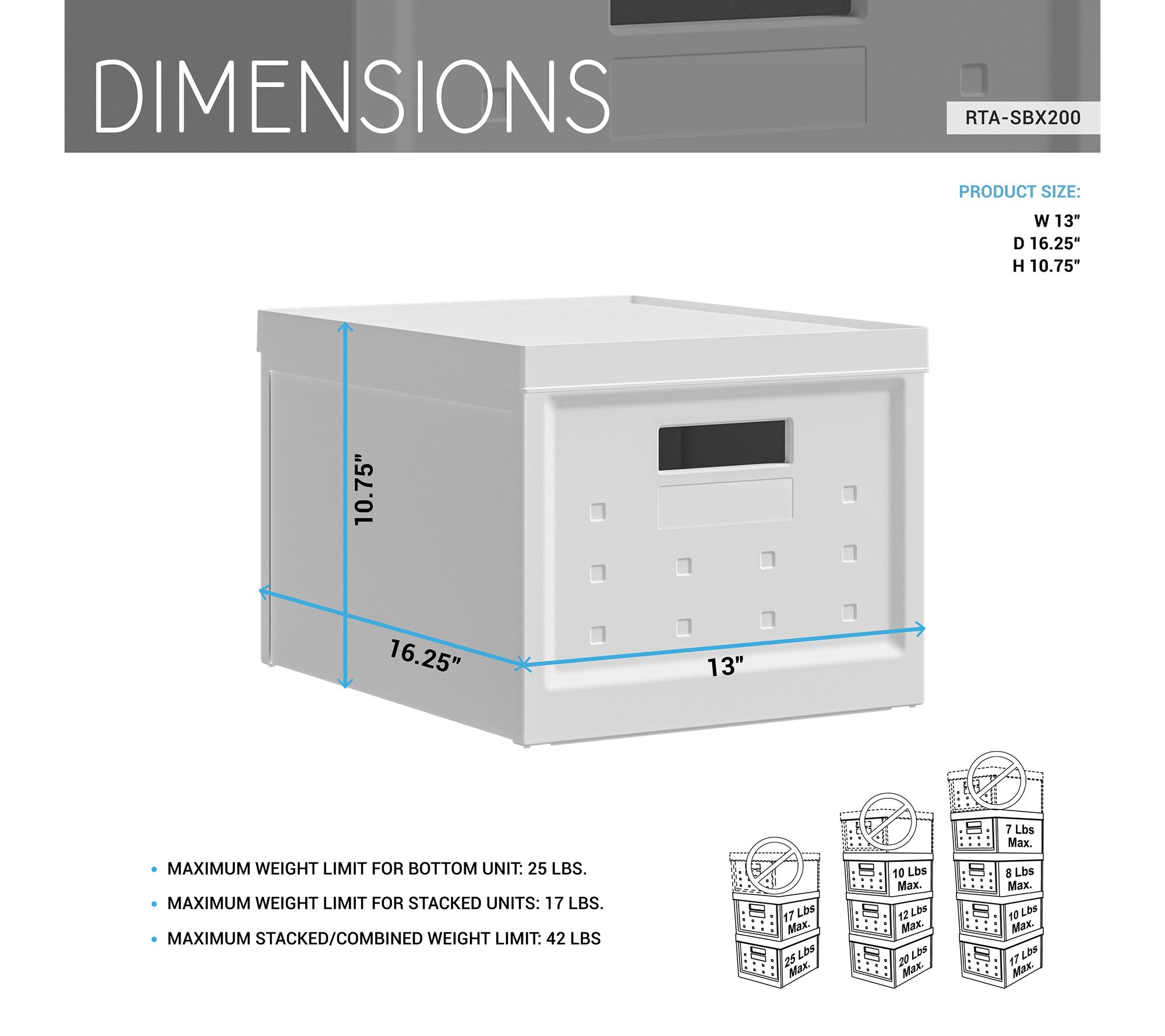 • Supports up to 25 lbs per box, 42 lbs stacked