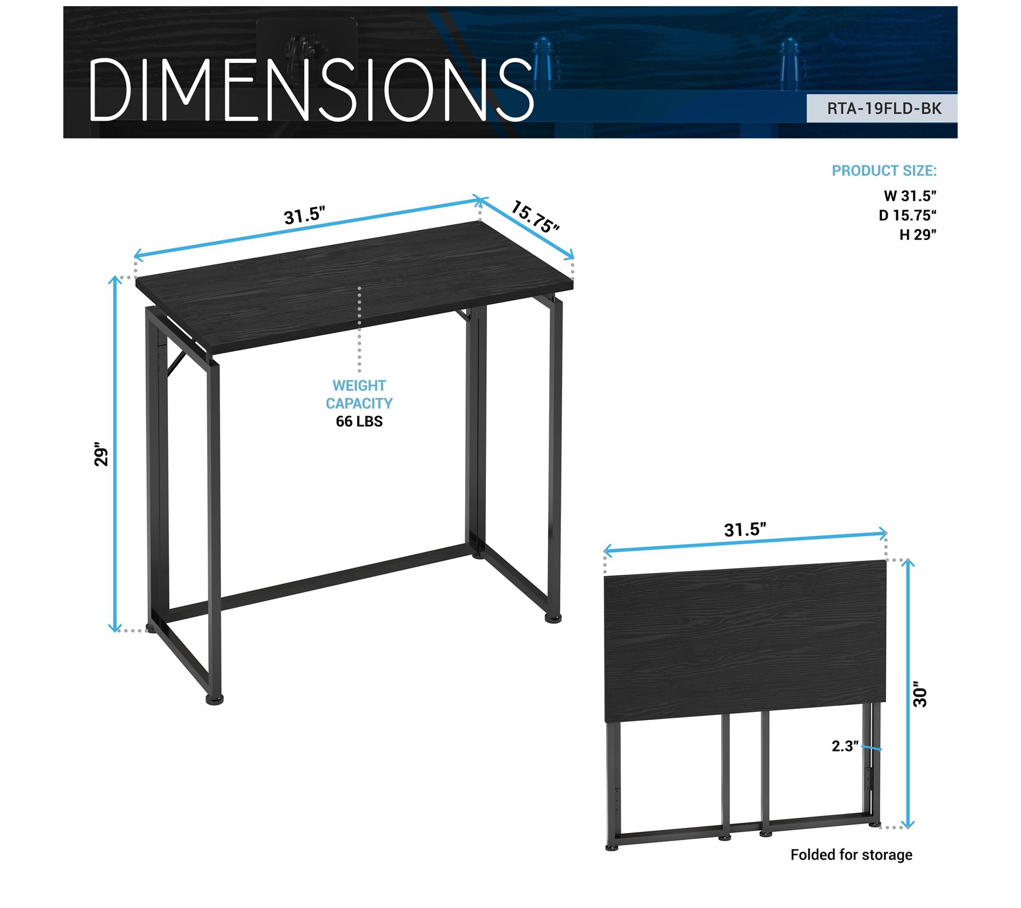 • Measures 31.5" W x 15.75" D x 29" H; supports up to 66 lbs