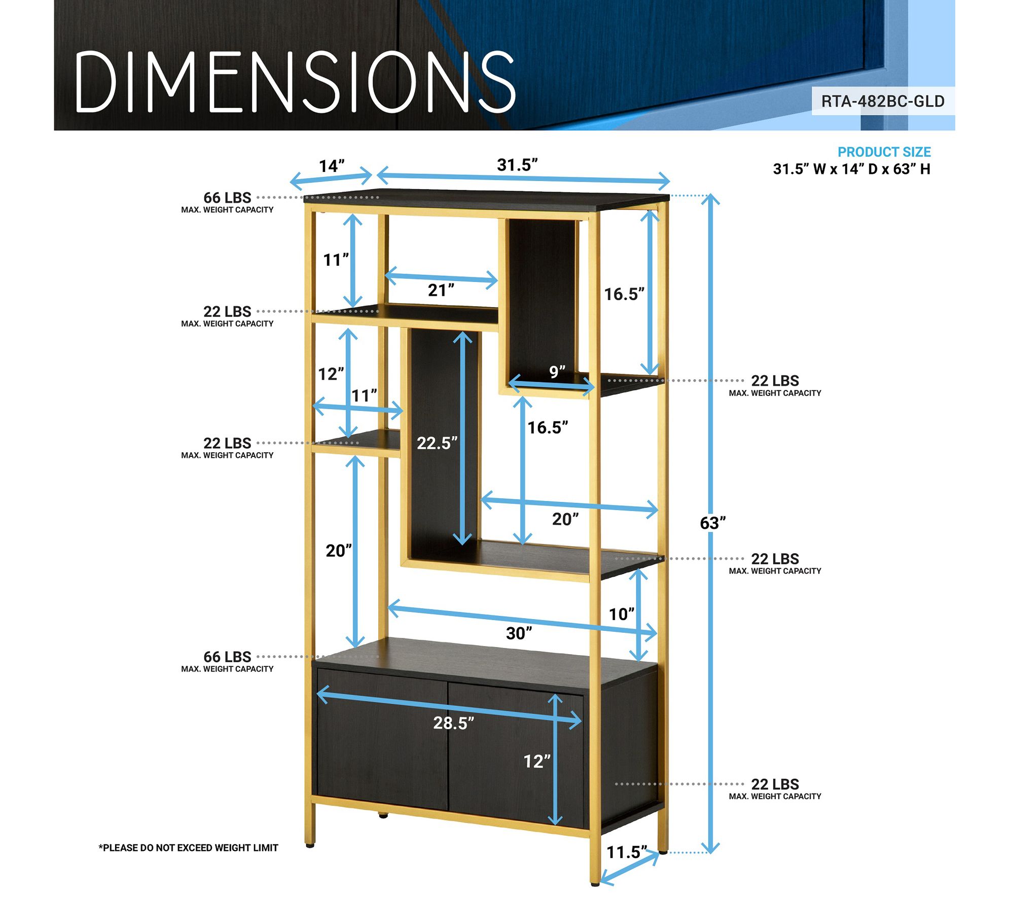 • Measures approximately 31.5"W x 13.78"D x 62.99"H; 66-lb weight capacity