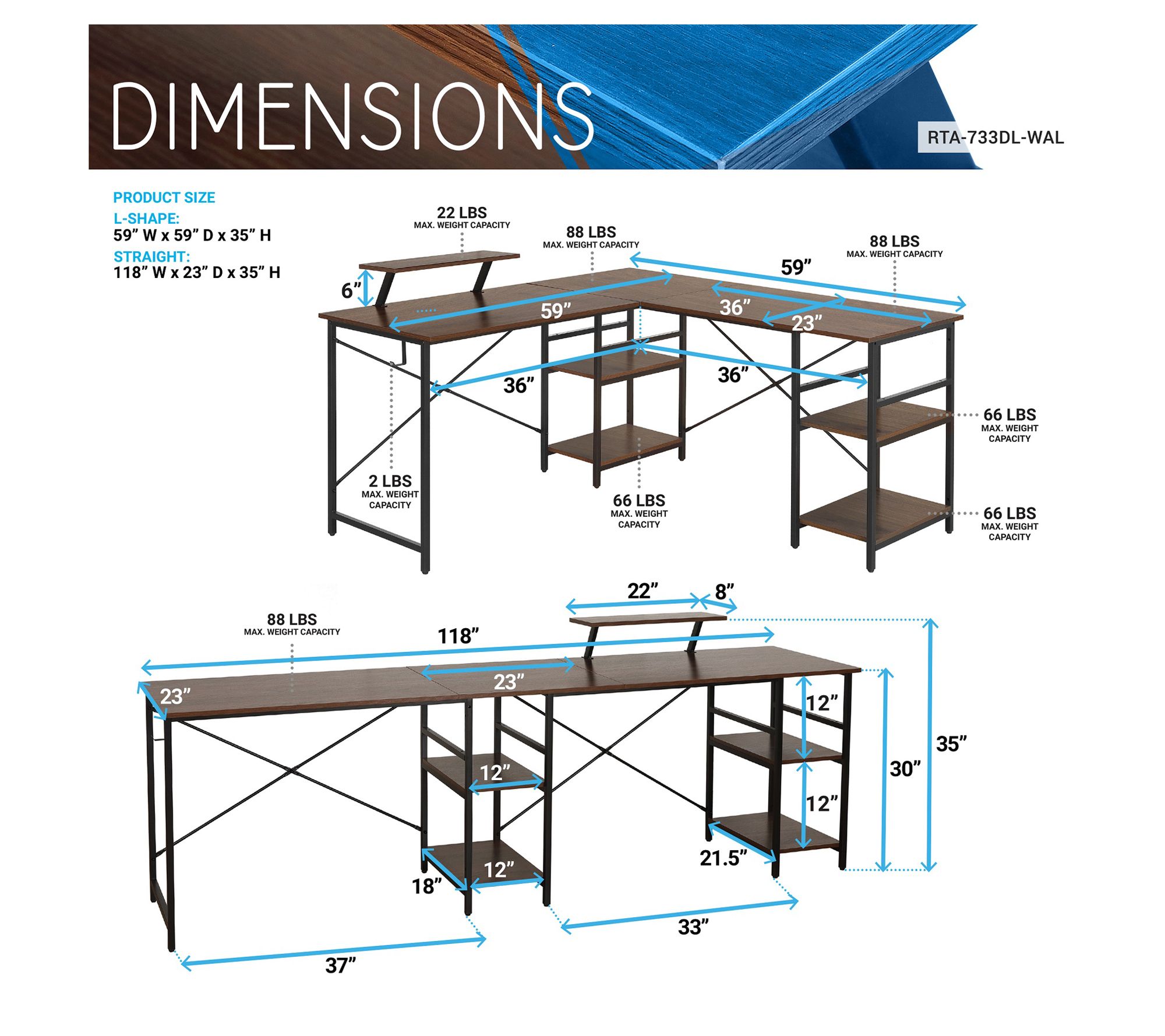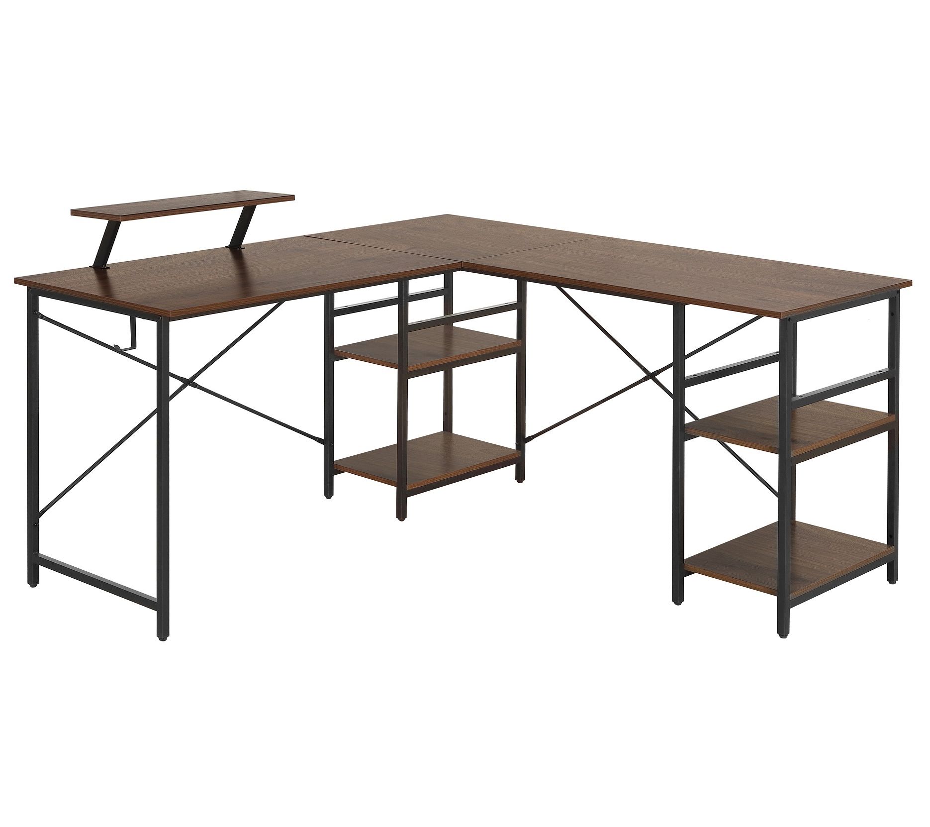 TECHNI MOBILI 59 " W L-Shape Walnut Industrial Desk W/Shelving