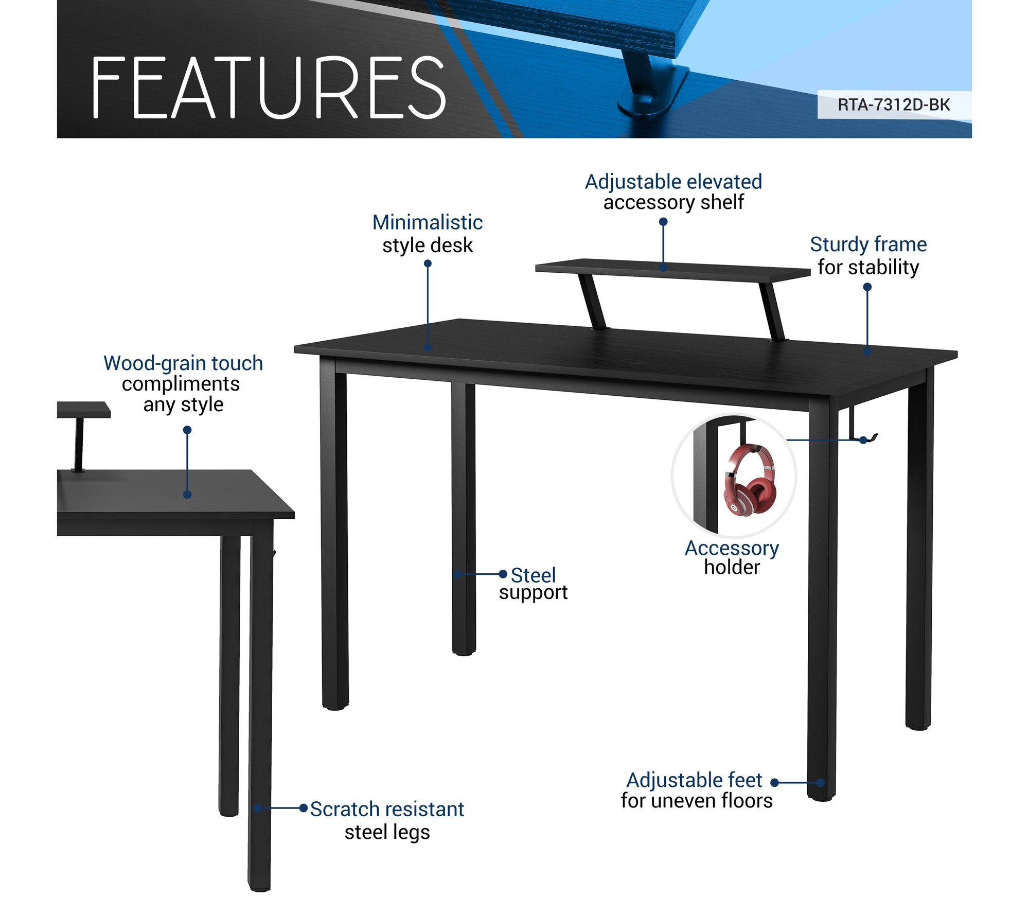Defined by its clean lines and streamlined structure, the Techni Mobili industrial writing desk brings a touch of modern minimalism to your office. Featuring a rich engineered wood tabletop and a powder-coated steel frame, this desk offers durability and stability while providing ample workspace. From Techni Mobili.
